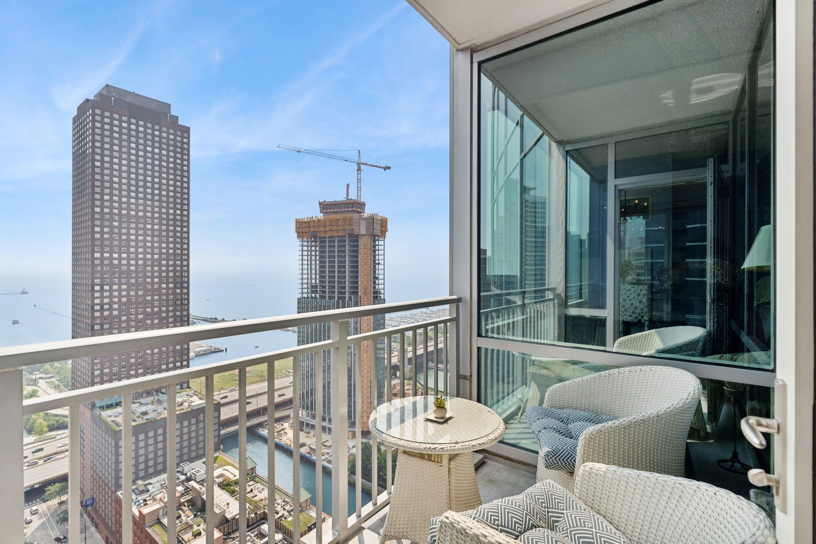 Don’t miss this high floor 2BR/2BA corner unit, the largest floorplan with a wall of floor to ceiling windows! The panoramic views of Lake Michigan, the Chicago River, Bennett Park and the city skyline, and abundant natural light pour in through expansive floor-to-ceiling windows. This thoughtfully designed split floor plan creates an ideal, open-concept living and entertaining space while also offering ultimate privacy for both bedrooms. The living/dining space is expansive by city standards, and can easily accommodate an 8-top dining table. Enjoy a morning cup of joe while watching the sun rise from the private, east-facing balcony with lake views. In the primary suite, luxury and comfort were at the forefront of design, which perfectly fits a king size bed. Retreat to the ensuite primary bathroom with dual vanities, walk-in shower and separate whirlpool tub. The hall bathroom is conveniently adjacent to the second bedroom, creating a private ensuite-like experience for guests or family members. Working from home and having a guest room is possible in this second bedroom. An in-unit laundry makes life easy, as do the storage locker included in the price. Gas cooking and 4 pipe heating system. Indulge in the ParkView’s full suite of amenities including a 24/7 door staff, outdoor pool & hot tub, fitness center, hospitality room and resident lounge. Deeded parking space #505 is available for 45,000 additional. This Streeterville location cannot be beat, as everything is right outside the door. Across the street from Target, several coffee shops like Cupitol, and plenty of restaurants like Robert’s Pizza, D4, Pinstripes, Molly’s Cupcakes, Carson’s and Yolk all within one block. AMC Movie Theatre, Lucky Strike Bowling, Navy Pier, Ohio Street Beach & Park, Michigan Avenue/Mag Mile, are all within 2-3 blocks. ParkView has a dog run via the adjacent Bennett Park dog park with separate spaces for both large and small dogs. A great condo in an excellent building and in the best neighborhood, Streeterville!