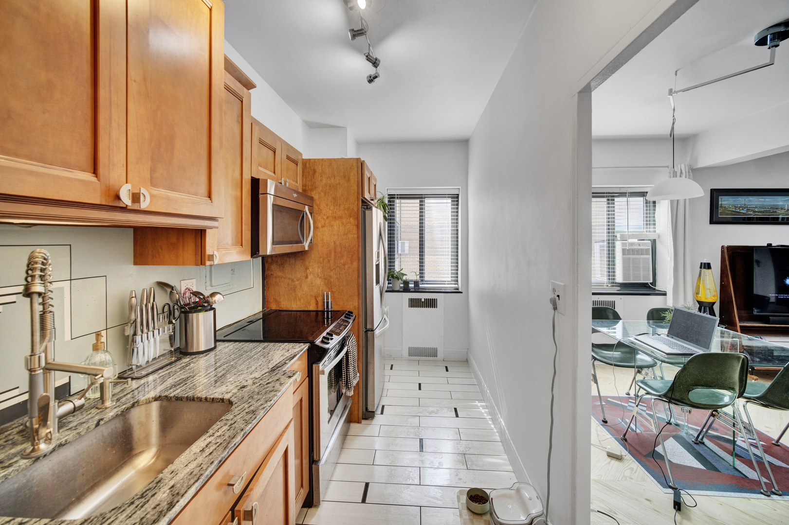 Perfect for the car-free Chicagoan! The MDA is one of Margate Park’s most desirable condo buildings, known for its Art Deco charm and beautifully landscaped courtyard with a striking fountain centerpiece. This renovated northwest corner unit is filled with natural light and features new LVP flooring throughout. The kitchen includes granite countertops and a convenient private entrance-perfect for unloading groceries. The bathroom was just updated at the beginning of August with white flooring tile, marble baseboard, a new sink, and a new toilet. Association has many community events throughout the year, such as courtyard yoga, morning coffee meetups, happy hours and more! Building amenities include a doorman with parcel pickup, fitness center, party room, on-site management, bike storage, full-time engineers, extra storage, and on-site parking ($175/month, waitlist). Prime location to express buses (136, 146, 147, 148), the brand-new Argyle and Bryn Mawr Red Line stops, Lake Shore Drive, beaches, 1 block to Mariano’s, and neighborhood shopping.