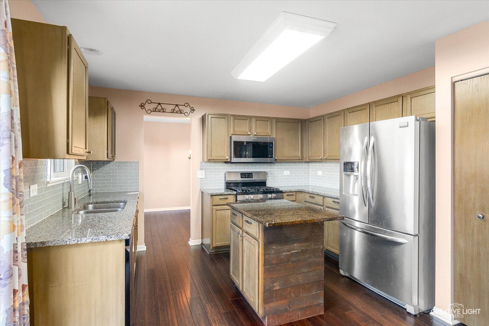 Welcome to this beautifully updated 3-bedroom, 2.5-bath home located in the desirable Lakewood Springs subdivision! Step inside to a stunning two-story living room with floor-to-ceiling windows that fill the space with natural light. The main level features newer bamboo flooring throughout and an updated kitchen with granite countertops, subway tile backsplash, and stainless steel appliances. The kitchen opens to a cozy family room highlighted by a stone gas log fireplace-perfect for relaxing or entertaining. Upstairs, you’ll find three spacious bedrooms, including a primary suite with a walk-in closet and private bath featuring a stand-up shower. The fully finished basement offers even more living space with a theater room, an additional room that can be used as a home office, gym, or easily converted to a fourth bedroom, plus a large storage area and utility room. Enjoy the outdoors in the fully fenced backyard complete with a Trex composite deck and a shed/playhouse. Home is within walking distance of Plano High School, and just minutes away from shopping and restaurants. Come see it today!