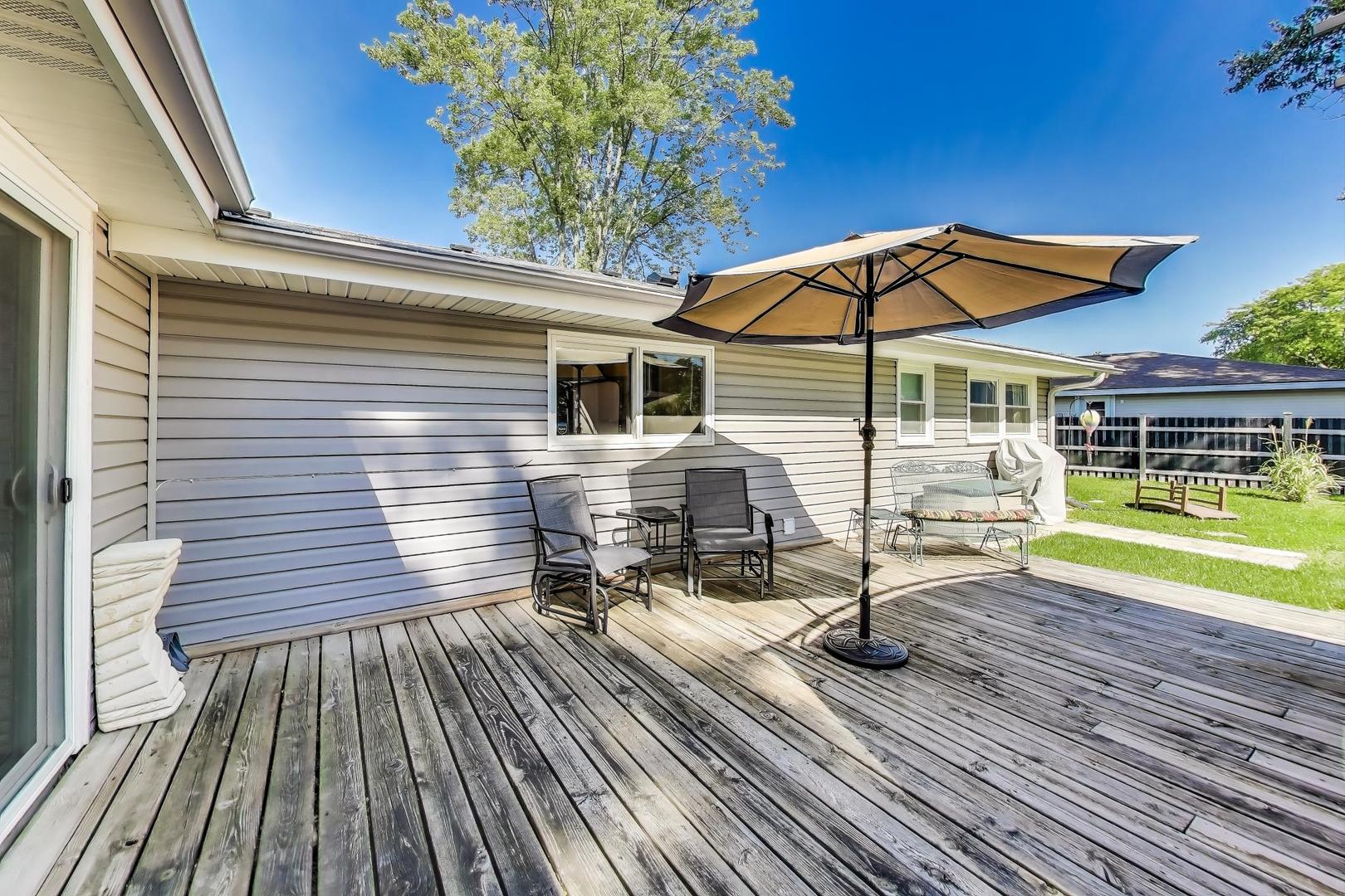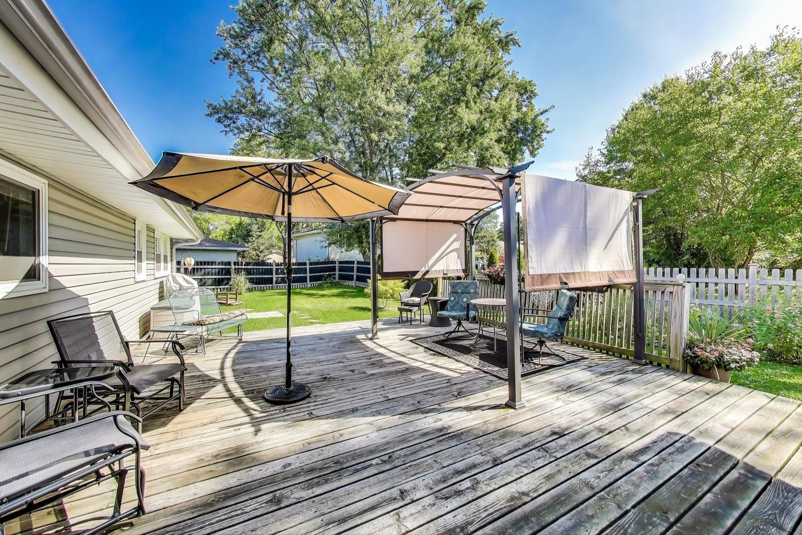 Welcome home to this inviting 3-bedroom, 1.1-bath ranch tucked away on a peaceful cul-de-sac. Set on a large, fenced-in lot, this home offers both privacy and space, with a beautiful yard, oversized deck, and outdoor shed for extra storage. Inside, the spacious kitchen is the heart of the home, featuring an island with seating, ample counter space, and generous storage. The kitchen flows seamlessly into the large dining room, perfect for entertaining or family meals. The light-filled living/family room boasts a cozy gas-burning fireplace and sliding glass doors that open directly to the patio, extending your living space outdoors. Thoughtful updates, like new A/C, water heater, fence, electric panel and new garage door opener, to name a few, complete the package. Additional features include a 1-car attached garage with new drywall and abundant storage opportunities. With its quiet setting, functional layout, and modern updates, this home is move-in ready and waiting for you!