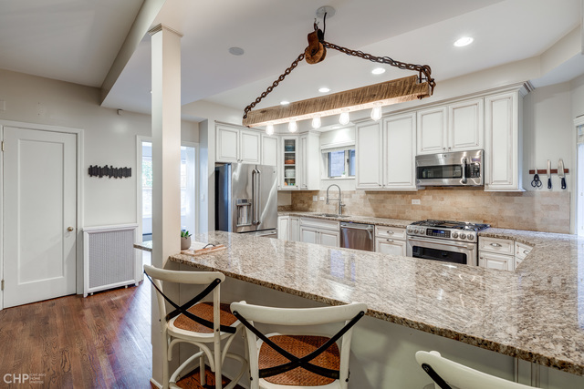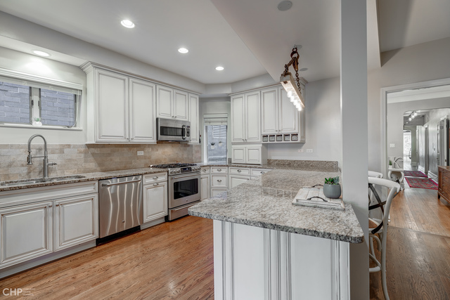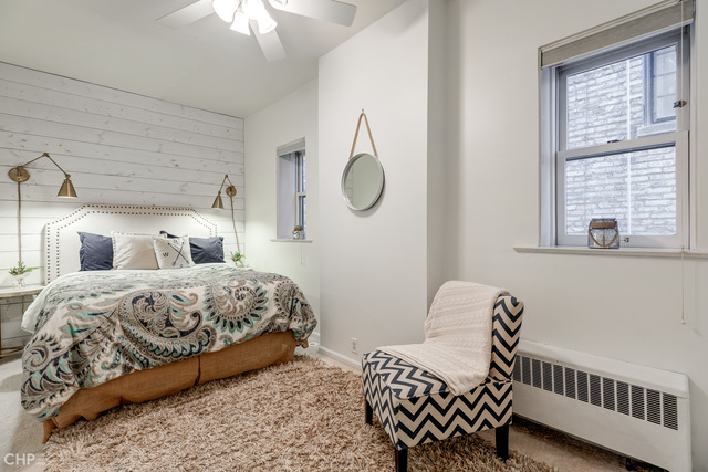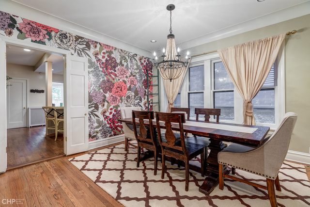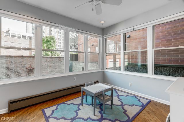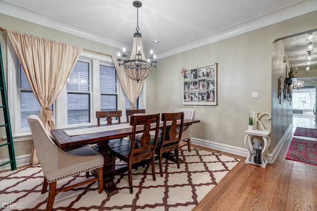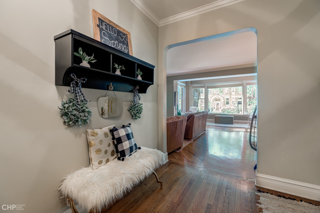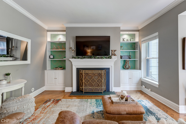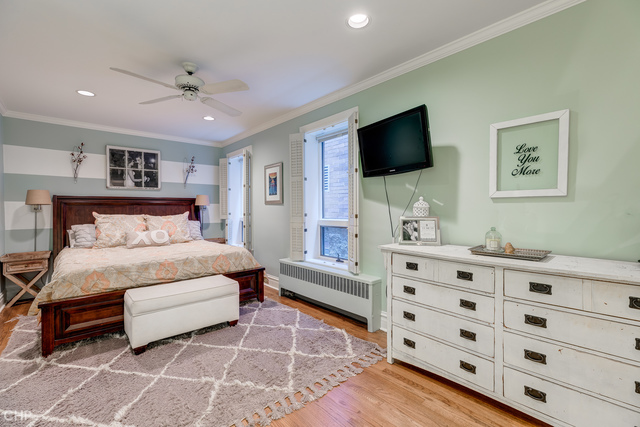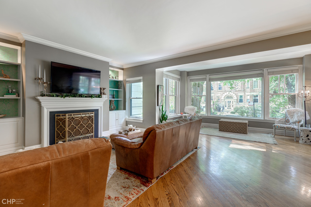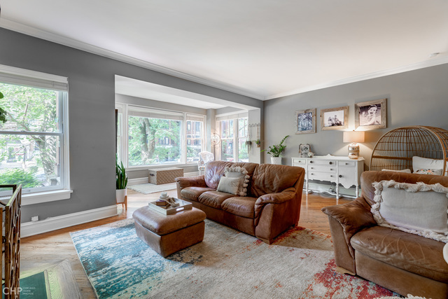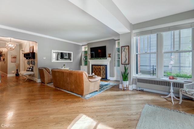 5 bedroom/3 bath duplex down (3000sf) that lives like a single family home in prime East Lakeview location. Enjoy the sun-light living room and adjacent sun room with oversized south facing windows overlooking tree lined Roscoe. 11 foot ceilings and hardwood floors through out the main floor. A spacious formal living room with built-in book cases and gas fireplace. Formal dining room ideal for entertaining. Large kitchen with stainless steel appliances, granite countertops and a built-in breakfast bar. The primary suite features a walk-in closet with built-ins, updated bath and steam shower. There are also, 3 additional bedrooms on the main floor. Full finished lower level with large family room and bedroom, perfect for an in-law or nanny suite with kitchenette, full bath and additional storage. 1/2 block east to the lakefront and 1/2 block west to everything Broadway has to offer. Private garage parking and shared common patio.