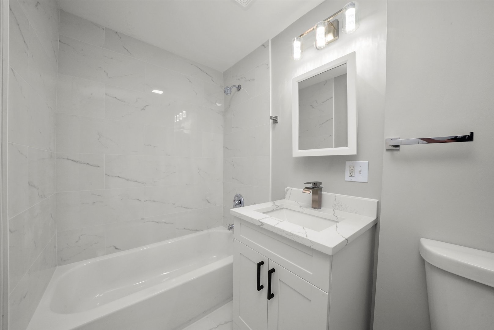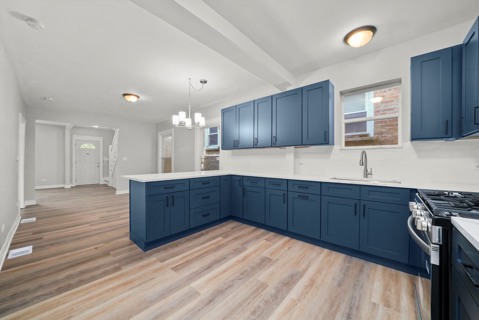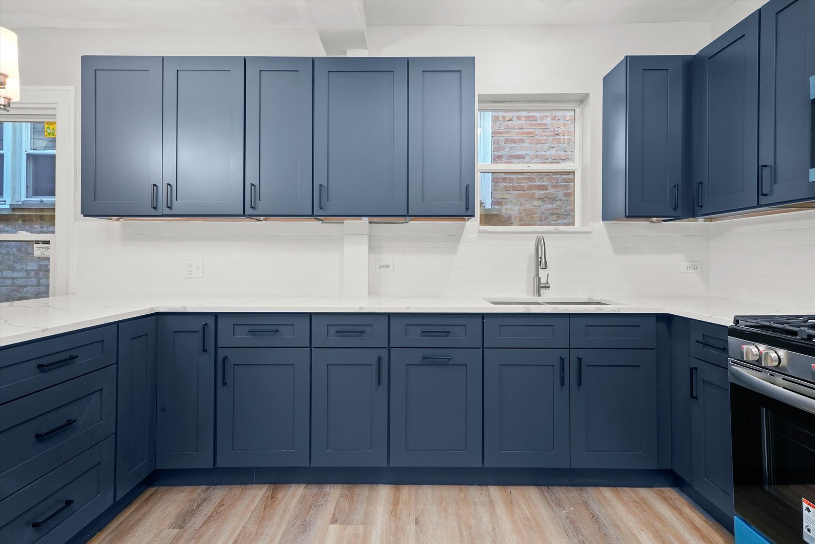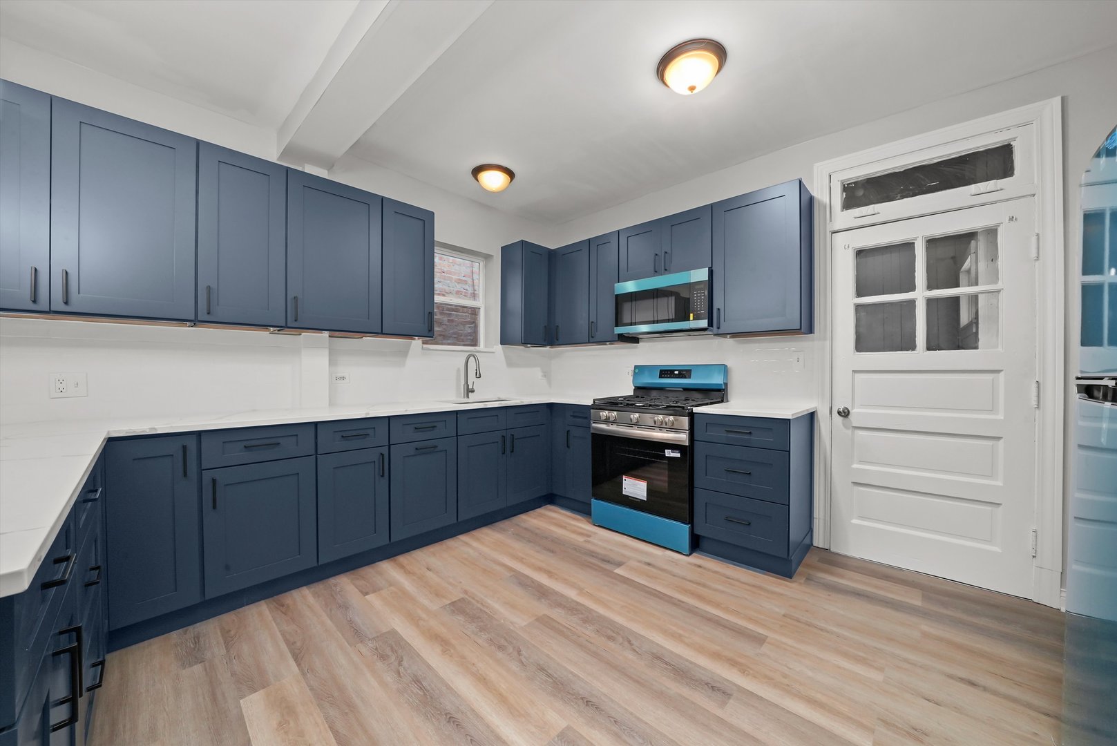 Beautiful, nicely rehabbed in a great location! First floor features an open-concept kitchen with navy blue cabinets, quartz countertop, stainless steel stove, microwave, and refrigerator, along with a dining room and glamorous living room with a 1 bedroom and a walk-in shower. Second floor features 1 bedroom and 1 master bedroom with its own bathroom! Additionally, the attic offers storage space and the back porch provides easy access to the crawl space. NEW upgrades include NEW water main, NEW Plumbing, NEW roof & siding, NEW Windows, NEW AC unit, NEW support beams, and much more! Schedule a tour before it’s GONE! Broker Owned