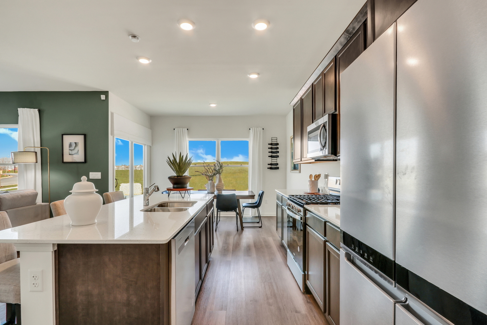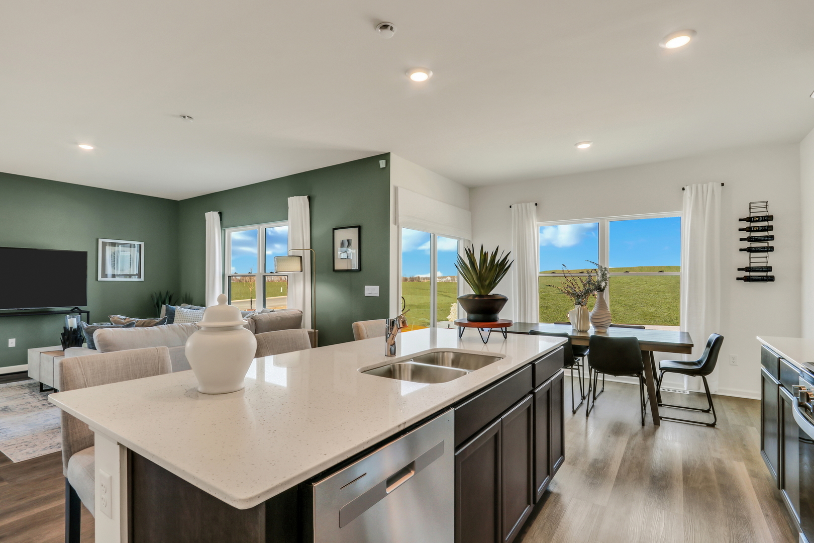 Imagine our self at 511 Adirondack Court in Joliet, Illinois, in a beautiful new home in our Cedar Creek community. This home is ready for a Spring move-in! Homesite includes a fully sodded yard. The Sloan plan offers over 1,900 square feet of living space with 4 bedrooms and 2.5 baths. Enjoy this open concept home with natural light throughout your main level. Coming through your front door you’ll find your powder room and coat closet in your foyer. The great room, dining room, and kitchen flow effortlessly together, making it your home the perfect entertainment space. Your kitchen features designer cabinetry with quartz countertops, and a pantry. Walking upstairs you find your private oasis with your primary bedroom on its own side of the top floor complete with an en suite bathroom complete with a raised dual quartz vanity and walk in closet, and linen closet. Enjoy the convenience of a top floor walk in laundry room and all secondary bedrooms upstairs with a full second bathroom with a dual vanity and linen closet. All D.R. Horton Chicago homes include our America’s Smart Home Technology, featuring a smart video doorbell, smart Honeywell thermostat, smart door lock, Deako smart light switches and more. Photos are of similar home and model home. Actual home built may vary.