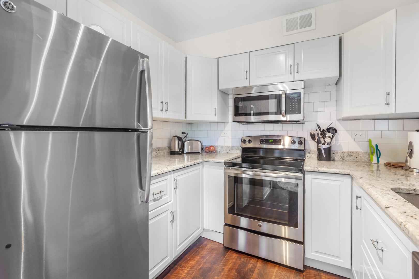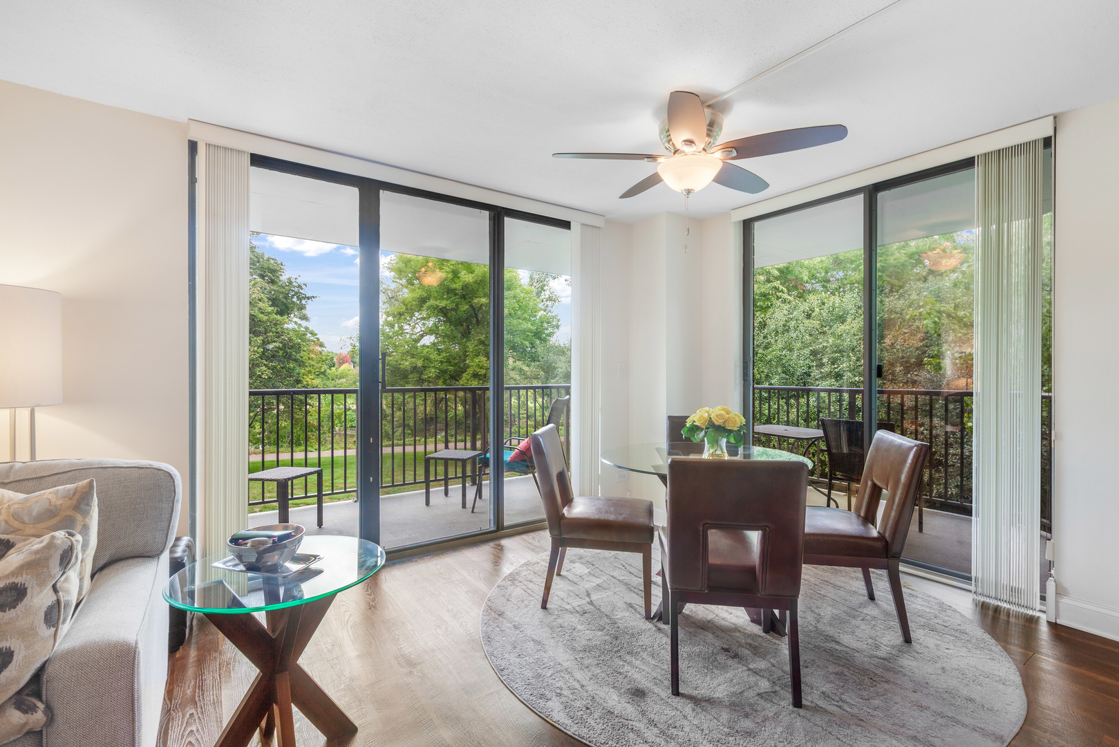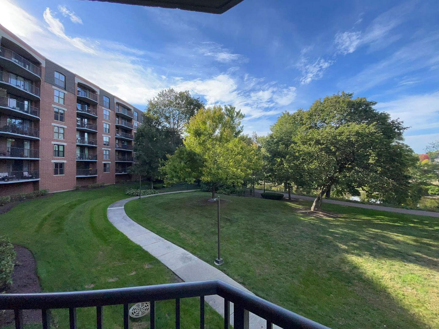 Unparalleled River Walk living! This stunning corner unit showcases unobstructed views of Naperville’s picturesque River Walk from the 140 sq. ft. elevated balcony and from inside the home too. The kitchen is designed for both style and function with a pass-through to the living room, classic white cabinetry, granite countertops, tile backsplash, and stainless steel appliances. The primary suite includes a spacious bedroom and a beautifully updated bathroom with a custom tile shower and glass surround. A second bedroom offers versatility as a guest room, office, or den. Both bathrooms feature thoughtful updates. Everyday convenience with an in-unit laundry room complete with full-sized washer and dryer. Two exterior parking spaces and storage (#104) are included. The HOA fee covers nearly everything: gas, electric, water, internet, basic cable, garbage, continental breakfast, snow removal, landscaping, and building/common area maintenance. Additional amenities include a fitness center and a Pavilion-Party Room with deck overlooking the River Walk and Carillon-perfect for private events or community gatherings. Just steps from vibrant downtown Naperville, this home offers unmatched access to shops, restaurants, festivals, schools, and Edward Hospital. Live the lifestyle you deserve on the River Walk!