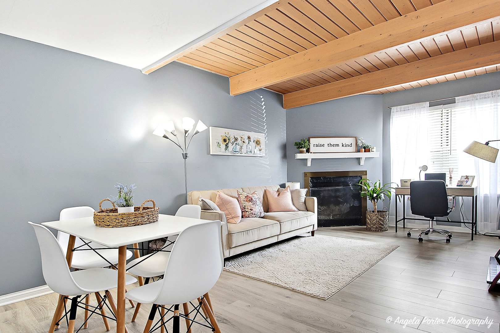 Charming and Well-Maintained Two-Story Townhome! This inviting home features a spacious living room with a wood-lined ceiling and a cozy wood-burning fireplace, perfect for relaxing or entertaining. The kitchen offers ample cabinet and counter space, room for a dining table, and sliding doors leading to a large deck-ideal for outdoor gatherings. The main floor also includes a laundry closet and a convenient half bath. Upstairs, you’ll find an oversized master suite, two additional bedrooms, and a full bath. An attached one-car garage provides convenience and extra storage. Updated flooring in the bedrooms, living room, and bathrooms, plus a prime location close to shopping, restaurants, Metra station, schools, and more!