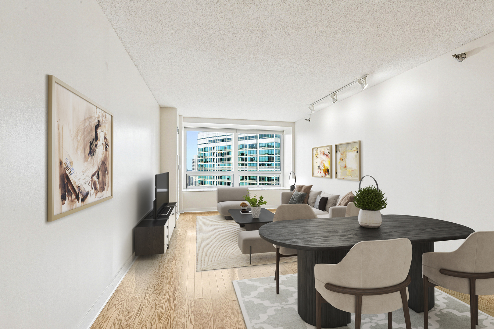 Live in the heart of Streeterville in this spacious 920 sq. ft. one-bedroom condo with hardwood floors throughout and a large open living/dining room-perfect for hosting or relaxing. Oversized picture windows bring in great natural light and feature stone ledges ideal for extra seating, display space, or indoor plants. The open kitchen offers great flow with a breakfast bar, white cabinetry, and stainless-steel appliances. The large primary bedroom is a true retreat with soffit lighting, a big picture window, and a walk-in closet. The bath includes a soaking tub/shower combo, extended vanity, and extra medicine cabinet storage. Enjoy everyday convenience with full-size in-unit laundry, abundant storage, and an included storage cage. Some of the neighborhoods lowest HOA Fees. This well-managed full-amenity building offers 24-hour door staff, fitness center, conference room, hospitality suite, and a sundeck with grilling stations. Prime location-steps to Northwestern Hospital & University Campus, Lurie Children’s, the lakefront, Ohio Street Beach, Whole Foods, Target, Walgreens, dining, and Michigan Avenue shopping. Comfort, convenience, and city living at its best! Rental Parking options available.