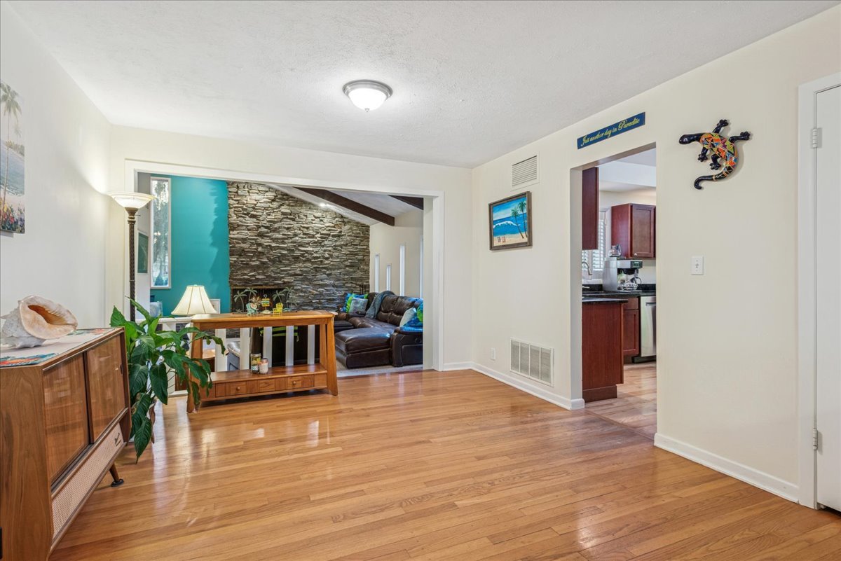 Welcome to this one-of-a-kind residence located in the charming curbless neighborhood of Mt. Prospect overlooking the Golf Course. Sitting on an oversized lot with a direct view of the golf course from the dining room windows, this home blends timeless character with thoughtful modern upgrades. Step inside to find solid hardwood floors throughout, soaring 14-foot ceilings with exposed beams in the family room, and a striking floor-to-ceiling natural green limestone fireplace with black slate hearth-complete with a stainless steel liner, high-efficiency damper, and a custom-built firewood storage system with chute access. The updated chef’s kitchen boasts hardwood cabinets, granite countertops, all stainless appliances, including a 2020 convection oven/range and 2024 Bosch dishwasher, plus newly installed skylights in the 14-foot ceiling for an abundance of natural light. Retreat to the oversized primary suite with a spa-like ensuite featuring a jetted tub and newly tiled floors and walls. A secondary bathroom has also been beautifully updated with new tile. This home is designed for comfort and efficiency, featuring a whole house fan, high-efficiency furnace, whole house vacuum system, newer custom 2″ wood blinds with valances throughout, new kitchen plantation-style blinds, and 2023 dual Zohler sump pumps. The lower level offers a full basement plus a 5 ft crawl space ready for your finishing touches and has a newer Maytag high-capacity washer and dryer in the laundry area. There are commercial roof fans to regulate heat in the attic which can be accessed by a pull down ladder. The attached garage is equipped with a quiet Chamberlain belt-drive opener. Outdoor living is equally inviting with a paver front walkway (ADA compliant at 48″ wide), a mid-century style paneled patio with exposed aggregate concrete, and a beautifully landscaped backyard featuring a weeping willow, fruit-bearing sour cherry tree, Japanese dwarf maple, and perennial beds of day lilies, daffodils, and decorative grasses. Additional upgrades include: 2016 tear-off roof with 40-year architectural shingles, ridge vent, and ice damming protection (shed roof replaced at same time) 2016 new sewer clean out. New exterior rear door with internal blinds; front entry with leaded glass. All newer ceiling fixtures. This rare home combines quality craftsmanship, energy-efficient updates, and natural beauty-all in a desirable Mt. Prospect location. Buyer got cold feet – no fault of seller