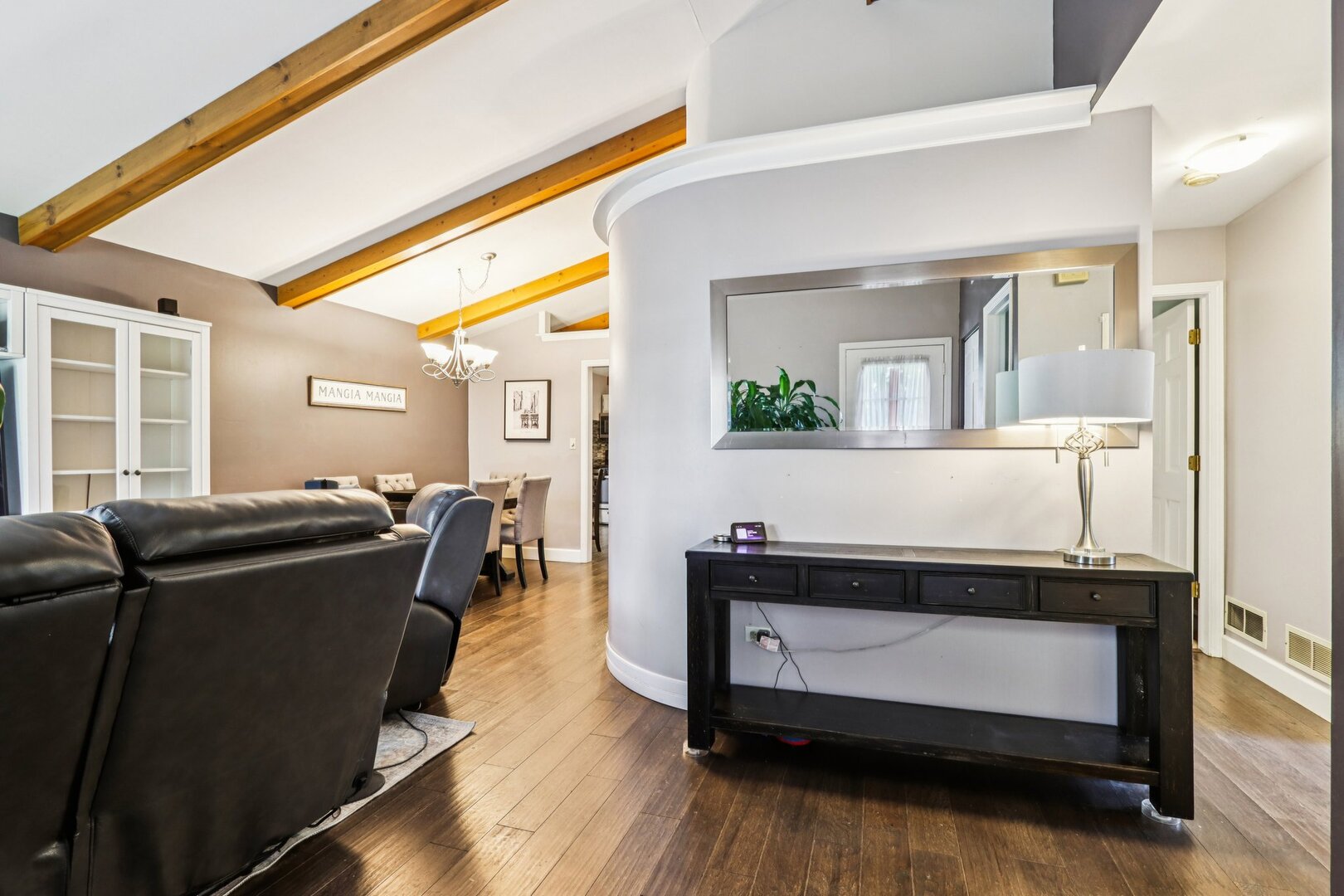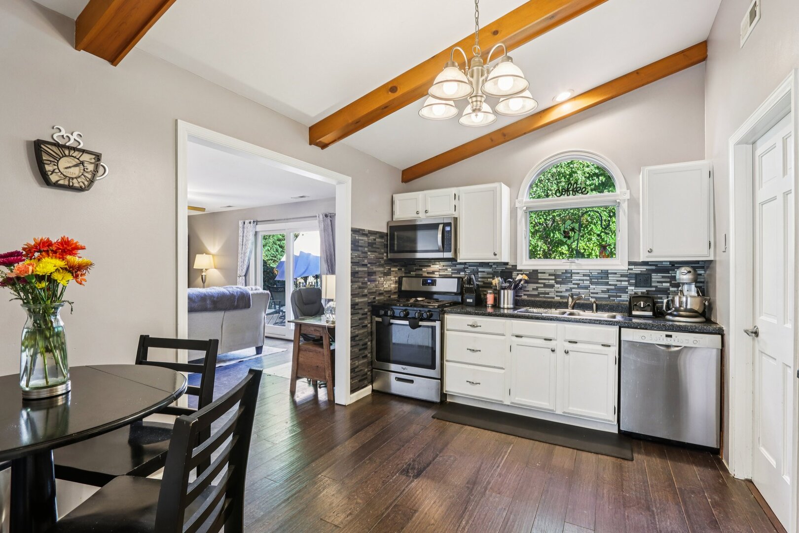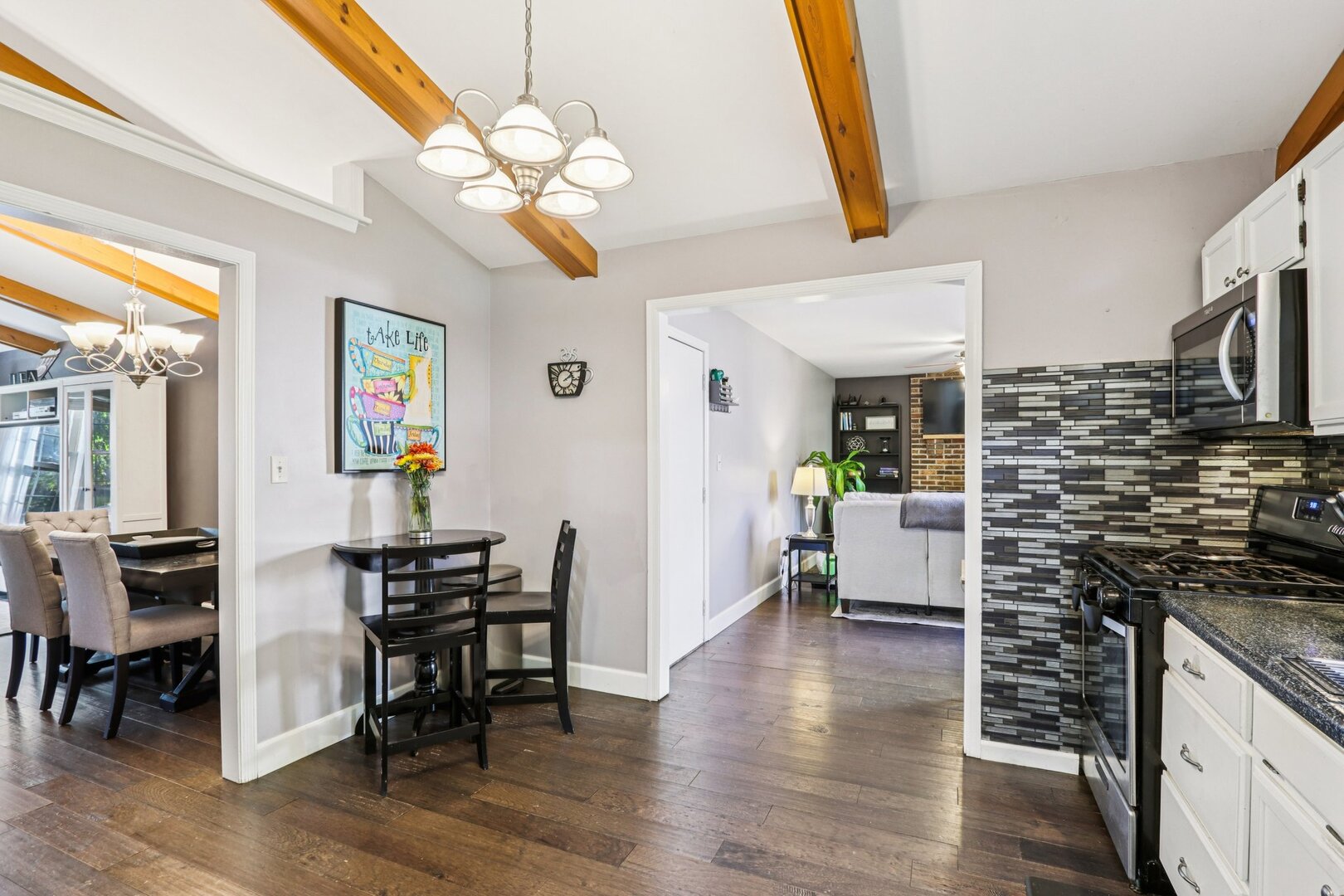 Don’t miss this charming 3 bed, move-in ready ranch on a quiet, tree-lined street! This beautifully maintained maintenance-free home features vaulted ceilings and an open floor plan with spacious living and dining areas-all on one level with no stairs. Enjoy new flooring in the common areas and carpet in the bedrooms this home is complete with a gas brick fireplace and patio doors leading to the deck and a fully fenced 65×120 ft yard-perfect for entertaining or relaxing outdoors. The primary bedroom offers vaulted ceilings and a walk-in closet, while the updated full bath includes a new tub and surround, plus new kitchen and bath faucets. The sunny eat-in kitchen boasts newer stainless-steel appliances (2020 French-door refrigerator, stove, microwave, and dishwasher) and newer windows throughout. Additional highlights include a laundry room with full-size washer and dryer, and a spacious 2-car attached garage with pull-down stairs leading to abundant attic storage. Conveniently located near Gurnee Mills, major tollways, parks, and top-rated schools. A wonderful opportunity to own a move-in ready home in a fantastic location!
