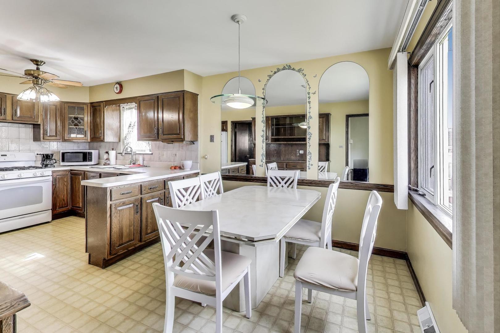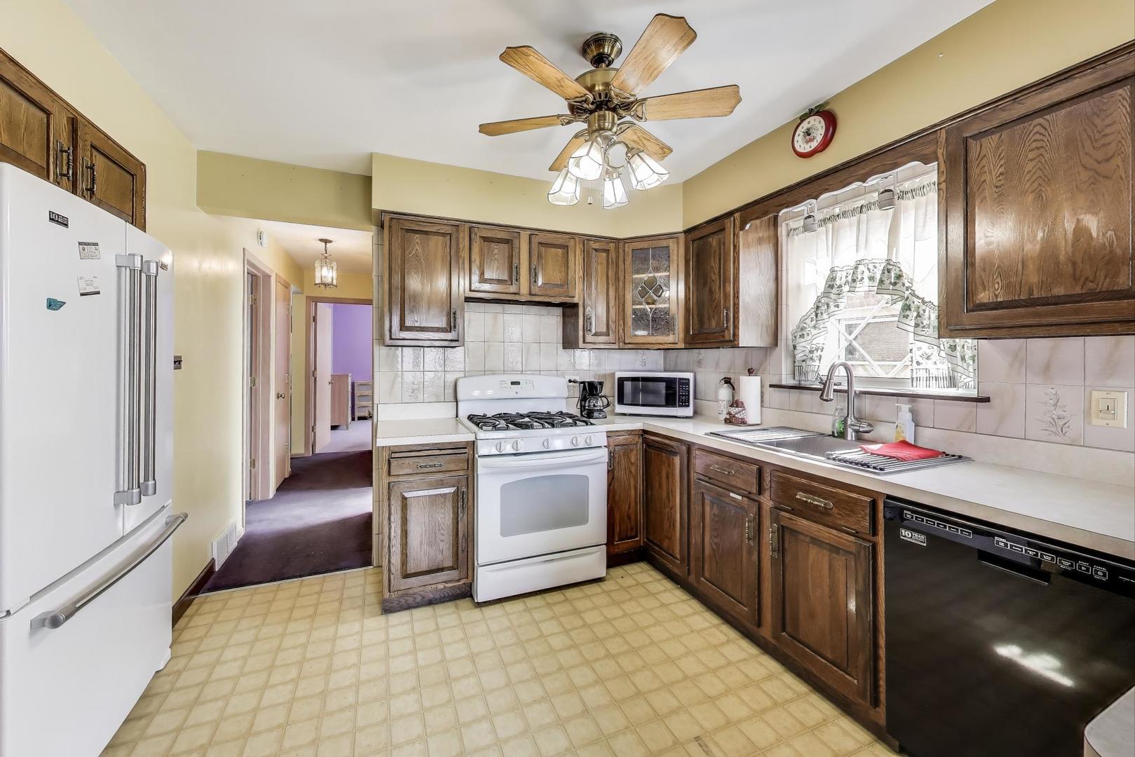 Charming & Spacious Brick Raised Ranch in Desirable Garfield Ridge! Welcome to this beautifully maintained raised ranch offering the perfect blend of space, comfort, and style. This all-brick home features hardwood floors under the carpet, a sun-drenched living room, and four generously sized bedrooms with closets-ideal for families or those needing extra space to work from home. Large kitchen/dining area with built-in cabinet/buffet offers the perfect spot to enjoy your morning coffee while overlooking the professionally landscaped backyard – an ideal setting for summer entertaining or peaceful relaxation. Perfect kitchen configuration with counter space galore and an abundance of cabinets. Multiple linen closets. The fully finished basement is a standout, featuring a large family/rec area with a wet bar, a second full bathroom with a walk-in shower, a spacious bedroom, a dedicated laundry room, and an ample storage room for all your organizational needs. The basement’s dry, finished condition offers additional living space and flexible use. Sump pump and ejector pump keep the basement dry. The understairs storage and back yard shed keep your home well organized. This home has been lovingly cared for and is move-in ready-just minutes from local parks, schools, and convenient transportation. 2015-new furnace/AC, windows and roof. 2018-water heater. 2022 ejector pump. Don’t miss your chance to own a gem in one of Chicago’s most sought-after neighborhoods!
