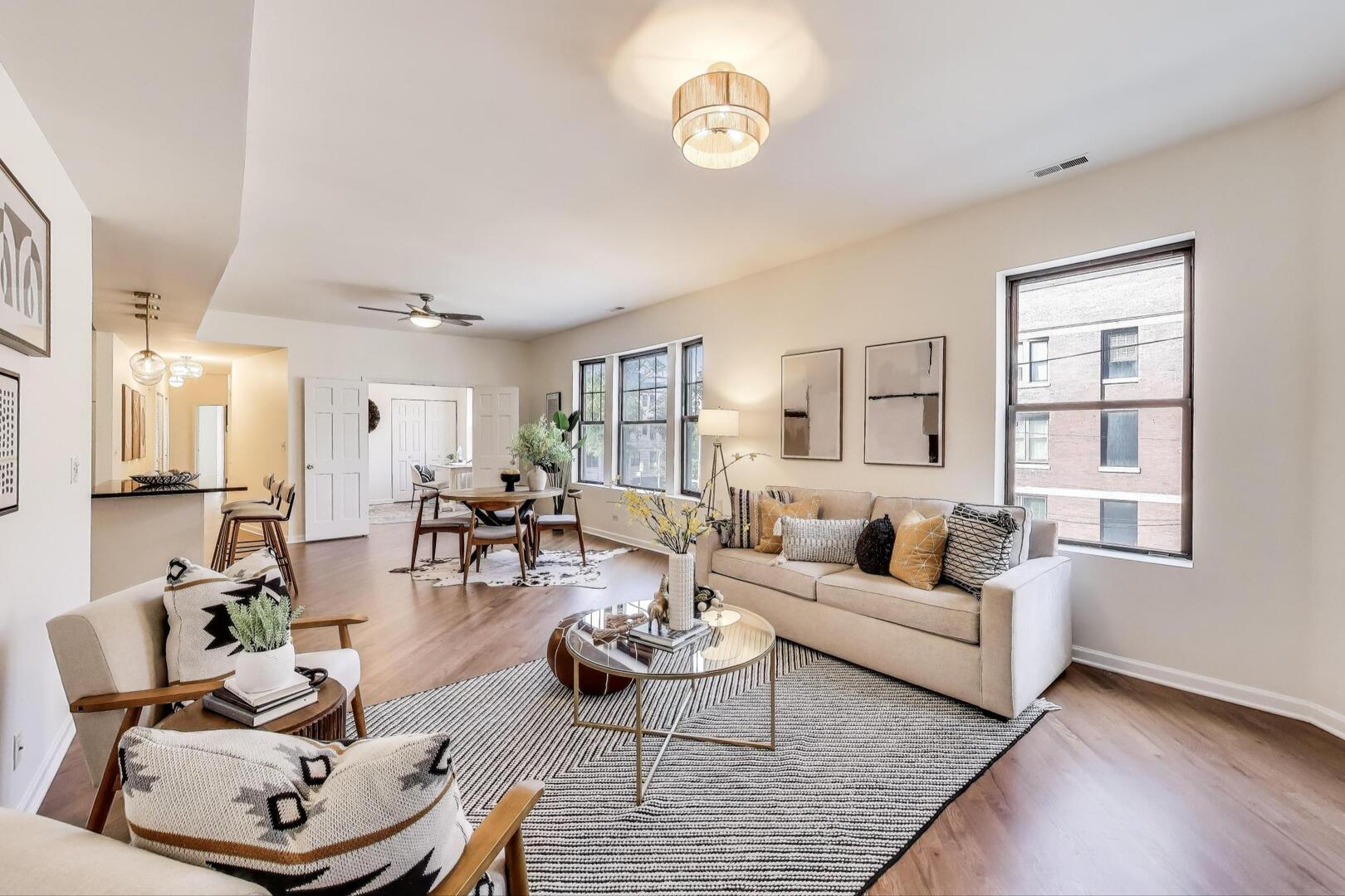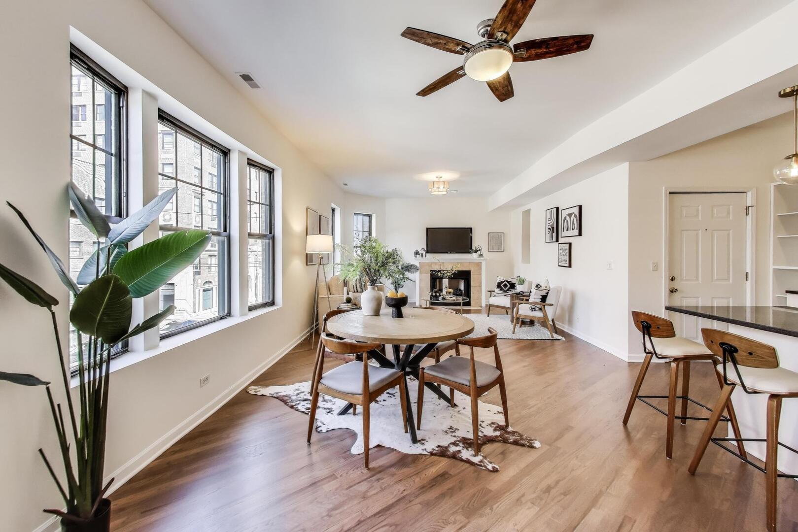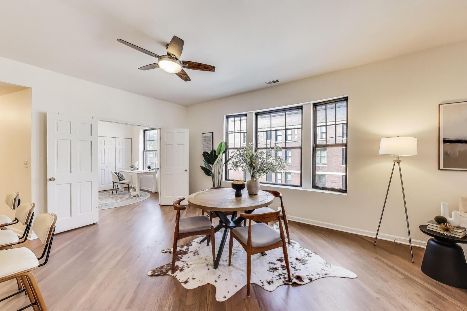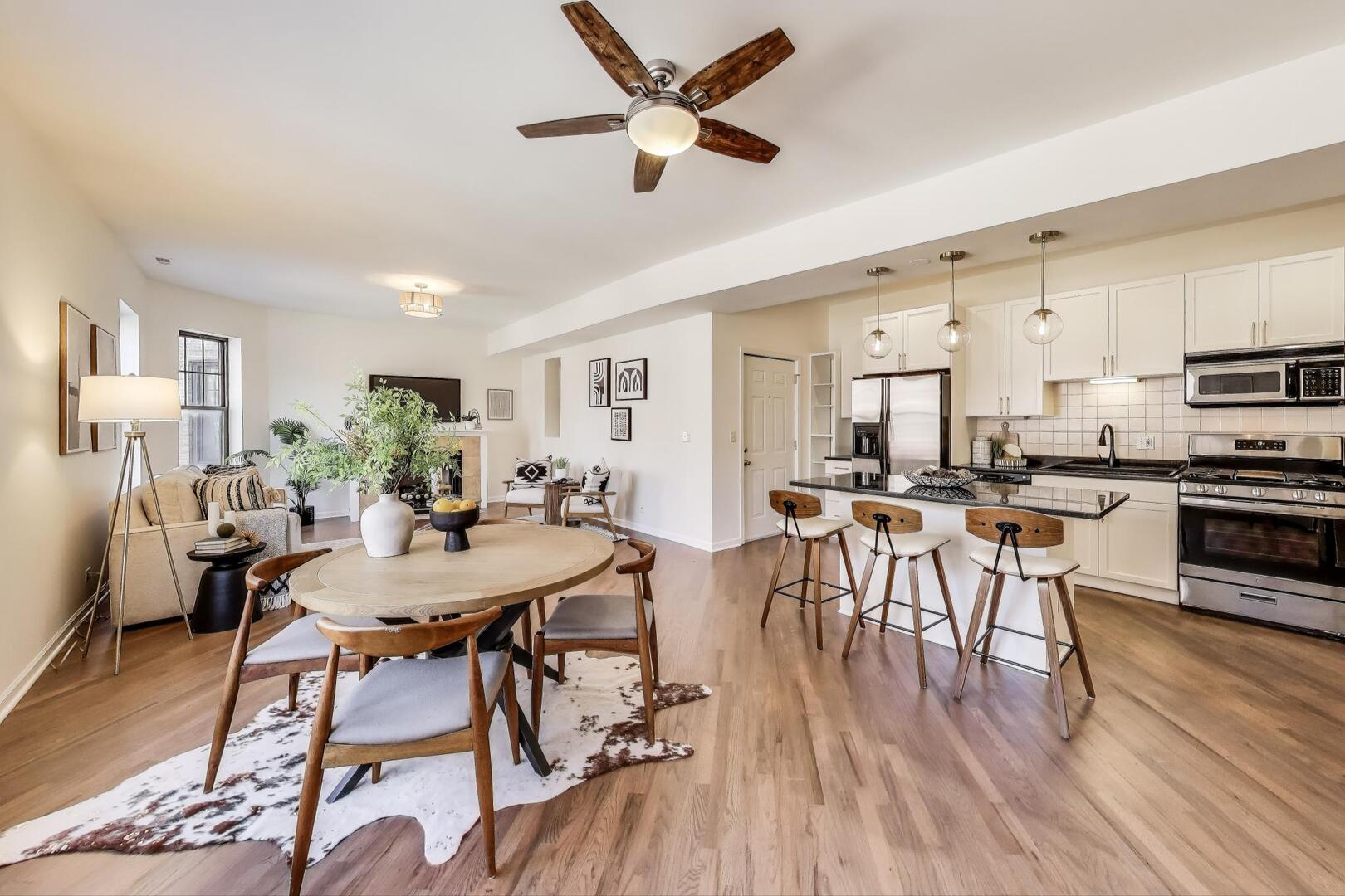 Welcome to 5133 N Kenmore Ave Unit 2N-an updated vintage condo that blends character with modern comfort just steps from the lakefront and vibrant Andersonville. The spacious, light-filled floor plan offers an open kitchen with granite countertops, stainless appliances, and a breakfast-bar island with direct access to the back deck-perfect for dining outside. A generous dining area flows into the living room with a cozy gas fireplace. The expansive primary suite features a walk-in closet, spa-like bath with Jacuzzi tub and separate shower, a charming office nook, and access to the front porch. A second bedroom sits off the hallway, while the third flex bedroom works well as a guest room, den, office or TV room with an included built-in murphy bed. In 2025, the home underwent a thoughtful renovation: the entire condo was painted, hardwood floors were refinished, kitchen cabinets were painted white, and the primary bathroom received a new vanity, new vanity mirrors, and new bathroom fans. The ceiling lighting was also fully updated throughout the home. Major systems and appliances were refreshed as well, including a new furnace and air conditioner (2025), oven, dryer and garbage disposal (2025), and a new washing machine (2023). Additional highlights include in-unit laundry, central air, hardwood floors, front and back outdoor spaces, excellent closet storage and a storage locker in the building’s lower level. Mariano’s is down the block; beaches, shops, and the CTA Red Line, express buses, and Lake Shore Drive are all nearby. Rental parking options are available. Schedule a showing today!