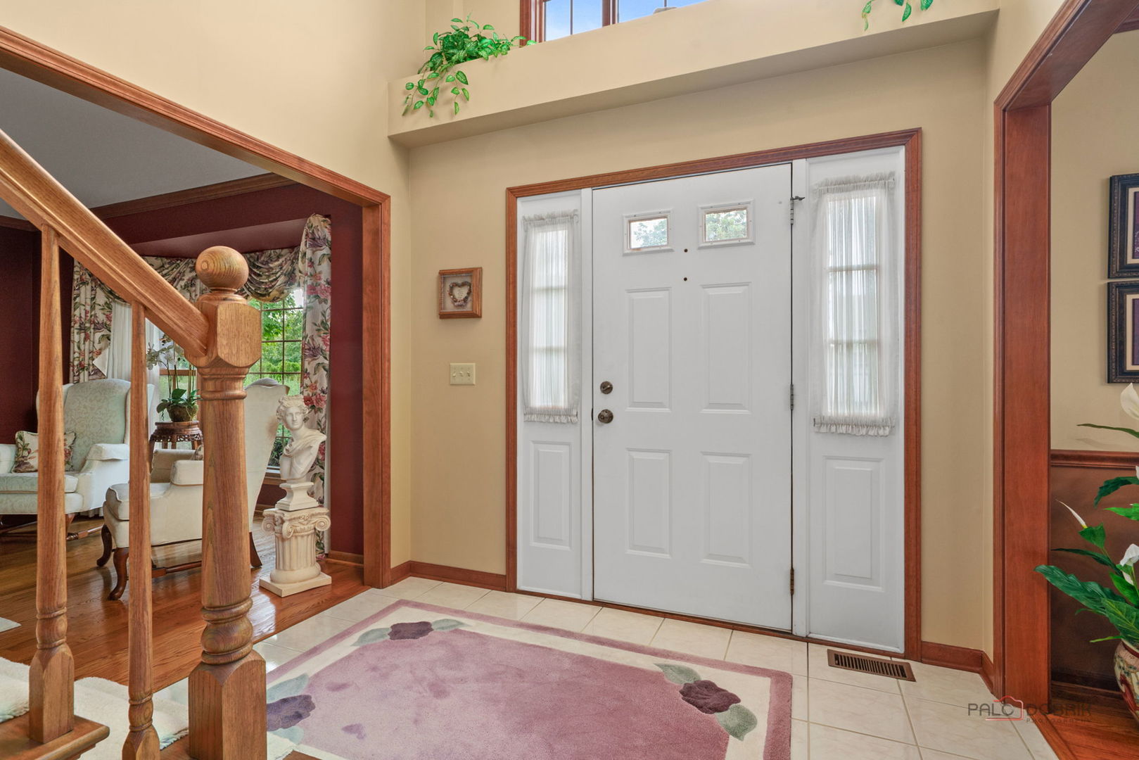 Barrington School District 220! Move-in ready 4 bedroom, 2.1 bath home with a 2-car garage, featuring the sought-after St. James model layout. Step inside to a dramatic 2-story foyer and elegant hardwood floors in the living room, dining room, and family room. The living room with French doors opens to the cozy family room with a fireplace, creating an ideal space for entertaining or relaxing. The spacious kitchen features abundant counter space, updated stainless steel appliances, and a butler’s pantry area-perfect for both everyday cooking and special occasions. Enjoy extra living space in the finished basement. Step outside to a private yard with a huge deck and new rear privacy fence, perfect for outdoor entertaining or quiet evenings at home. A long list of recent updates which include: HVAC 2024, driveway 2023, dishwasher & microwave 2022, W&D 2022, siding/gutters 2020, garage door 2016, roof 2015, stainless steel kitchen appliances-providing peace of mind and modern efficiency. Close to I-90, Target, The Arboretum.