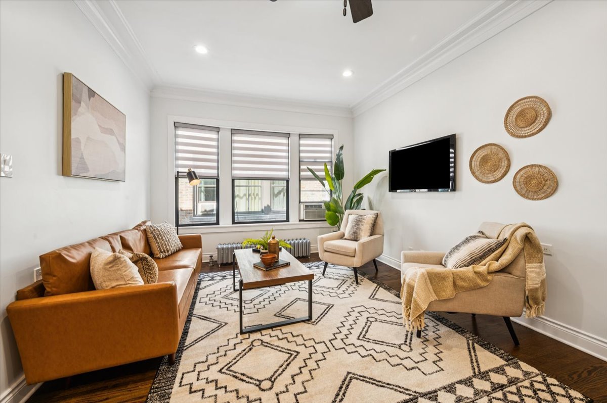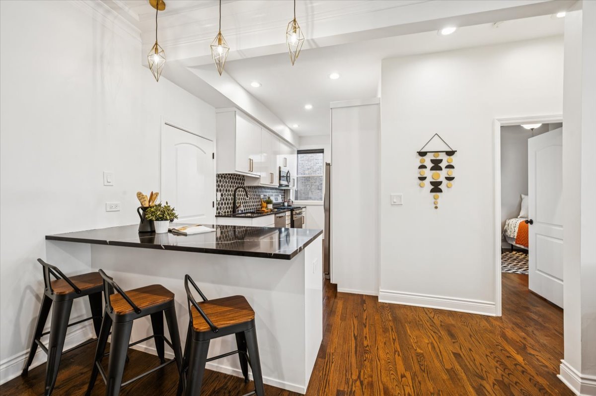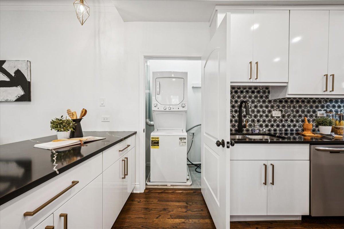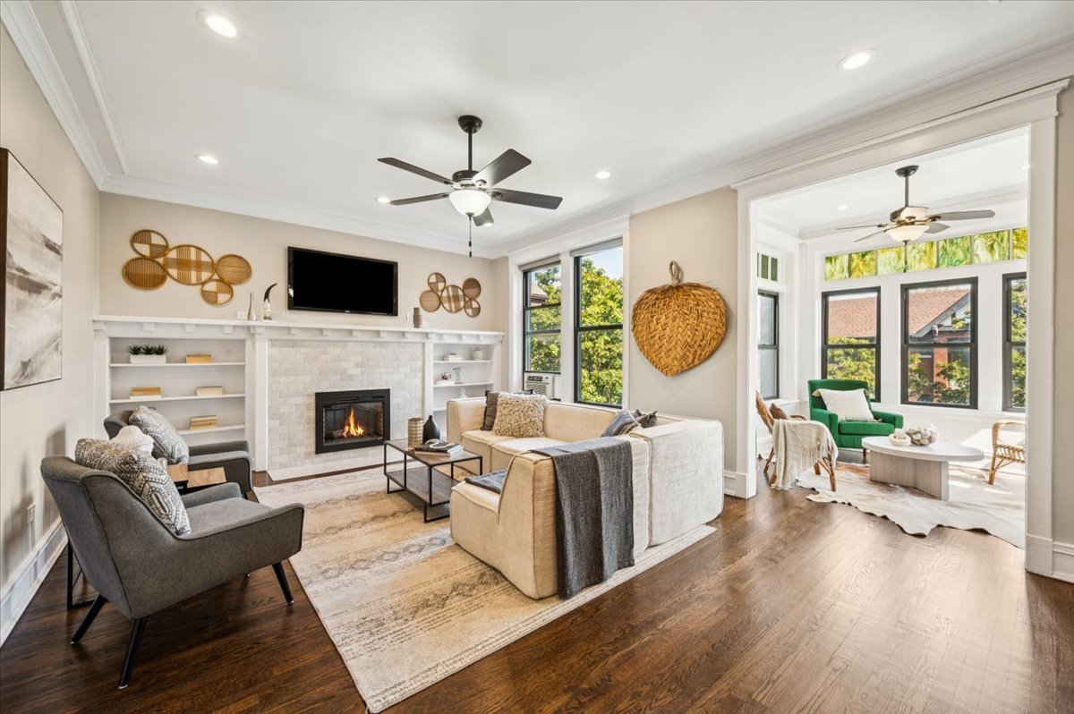 Perched on the top floor of a classic vintage building on a tree-lined, one-way street in the heart of historic Hyde Park-just one block from Obama’s home-this fully renovated 3-bedroom + den, 2-bath condo blends timeless character with modern luxury. As you step inside, you’ll instantly feel welcomed by a flood of natural light, gleaming hardwood floors, and a thoughtful layout, designed to include every living space on your wishlist. Begin your mornings in the charming sunroom, framed by stained-glass accents and treetop views of a leafy, historic boulevard- a serene retreat for quiet reflection. Entertain with ease in the inviting living room, anchored by refinished bookcases and a beautifully tiled decorative fireplace. Gather in the spacious family room and adjacent dining space, offering flexibility for both intimate evenings and lively get-togethers. The designer kitchen will inspire you to try your hand at new recipes, featuring Eclipse cabinetry, premium quartz countertops, a sophisticated backsplash, stainless steel appliances, and a large island with bar seating-perfect for morning coffee and casual conversations. Your tranquil primary suite boasts multiple closets and a private, spa-like bath. Two additional bedrooms and a stylishly remodeled second bath provide versatile spaces to suit every lifestyle need. A dedicated den makes working from home effortless, and the in-unit washer/dryer brings everyday convenience. Your cozy back deck offers the perfect setting for an evening nightcap, while your shared backyard provides an inviting setting to soak in sunny afternoons. Thoughtfully reimagined in 2019, this residence has been completely updated. Highlights include refinished hardwood floors, custom built-out closets, designer lighting, upgraded plumbing and electrical, and new vintage-inspired windows that preserve its architectural soul while adding modern efficiency. Beyond the unit, enjoy a large private storage space, dedicated bike storage, and the ease of ample street parking. Your well maintained condo association just completed roof resurfacing and tuck pointing, while still maintaining healthy reserves- you can also enjoy the flexibility in ownership, with no rental cap. Located in one of Chicago’s most storied neighborhoods, you’ll be surrounded by historic mansions, cultural landmarks, mature trees, and vibrant community events like the Hyde Park Jazz Festival. Just moments from the University of Chicago, Washington Park, the lakefront, and 53rd Street’s shops and dining, this residence offers the perfect balance of history, culture, and convenience. A rare opportunity to own a fully updated Hyde Park penthouse-this timeless classic is not to be missed!
