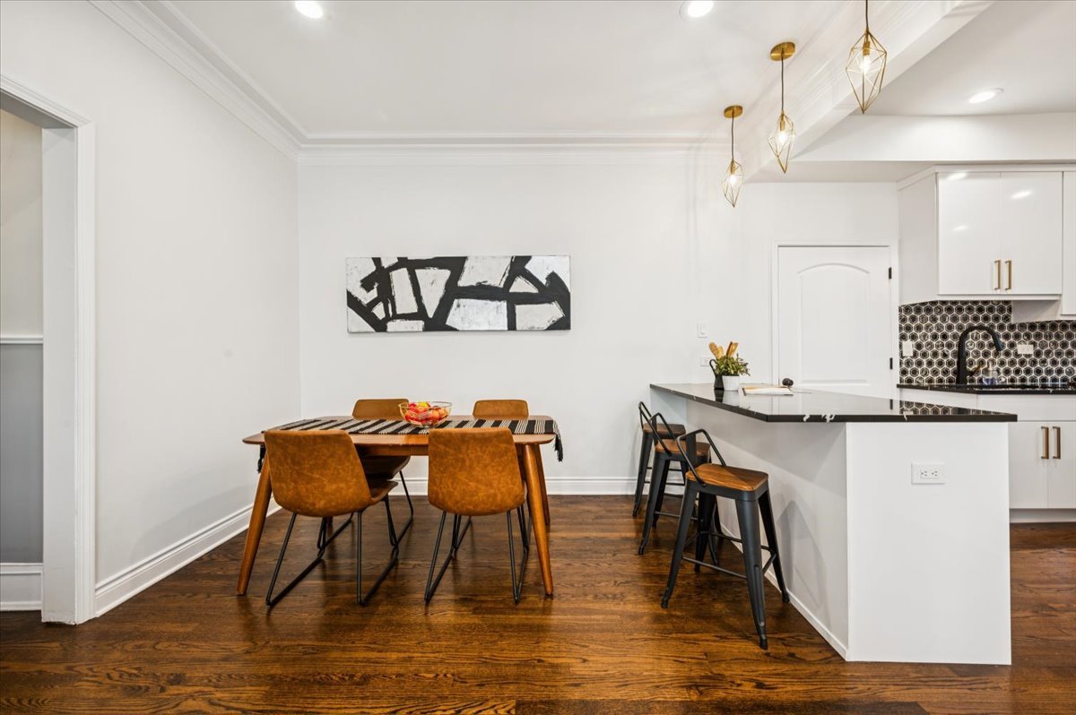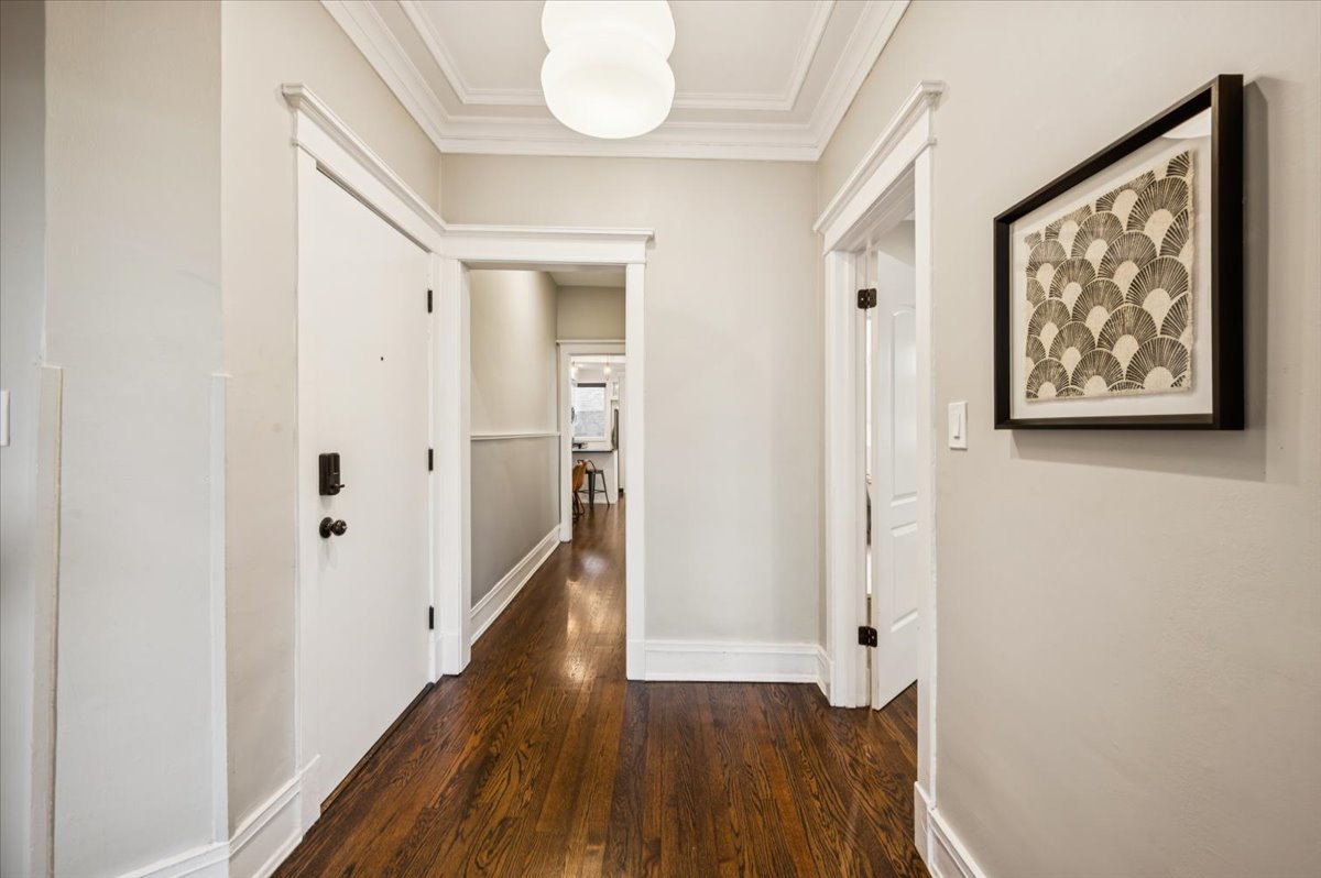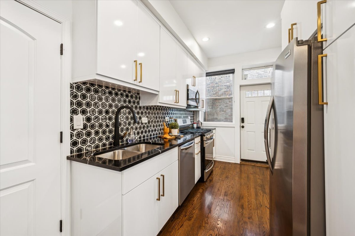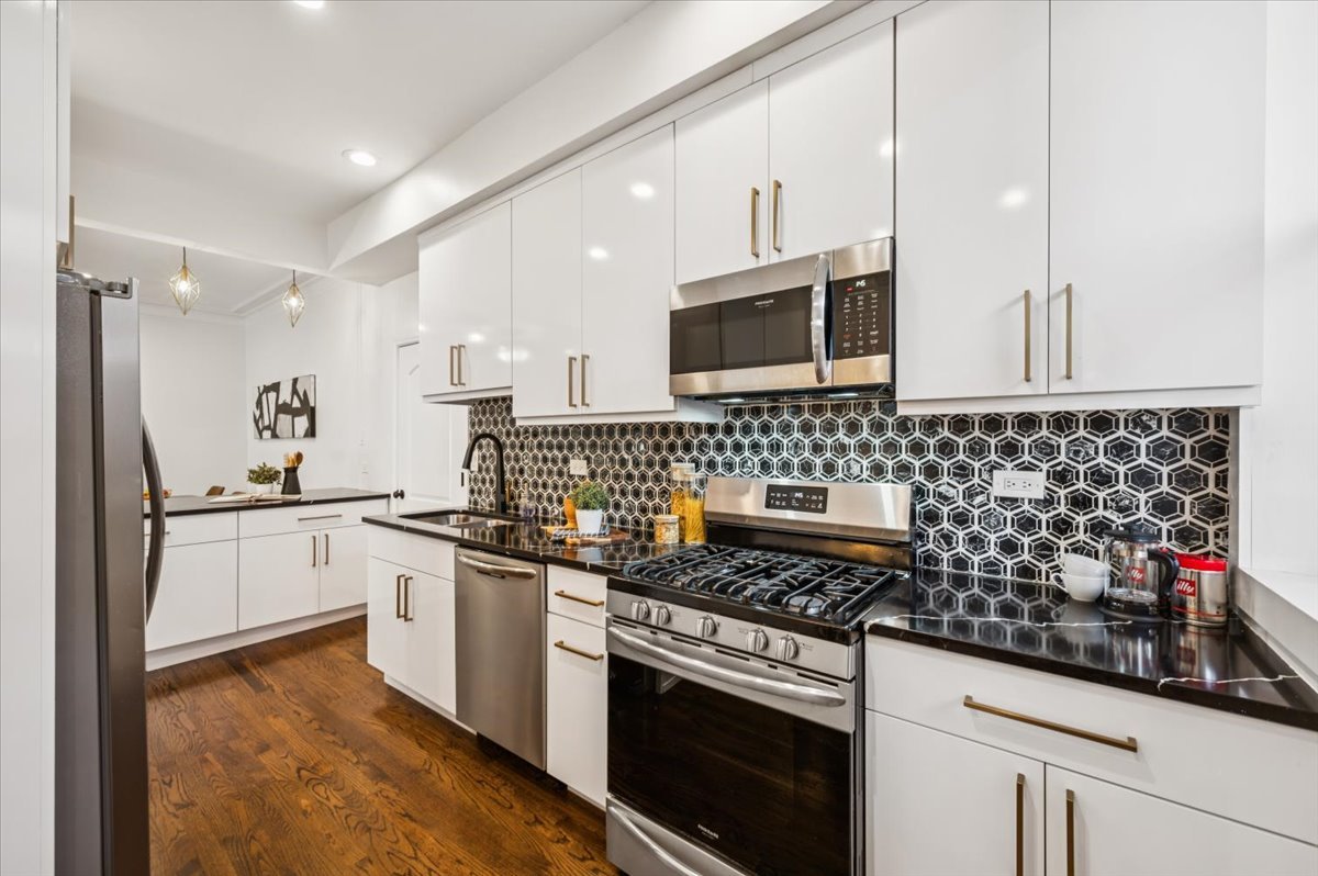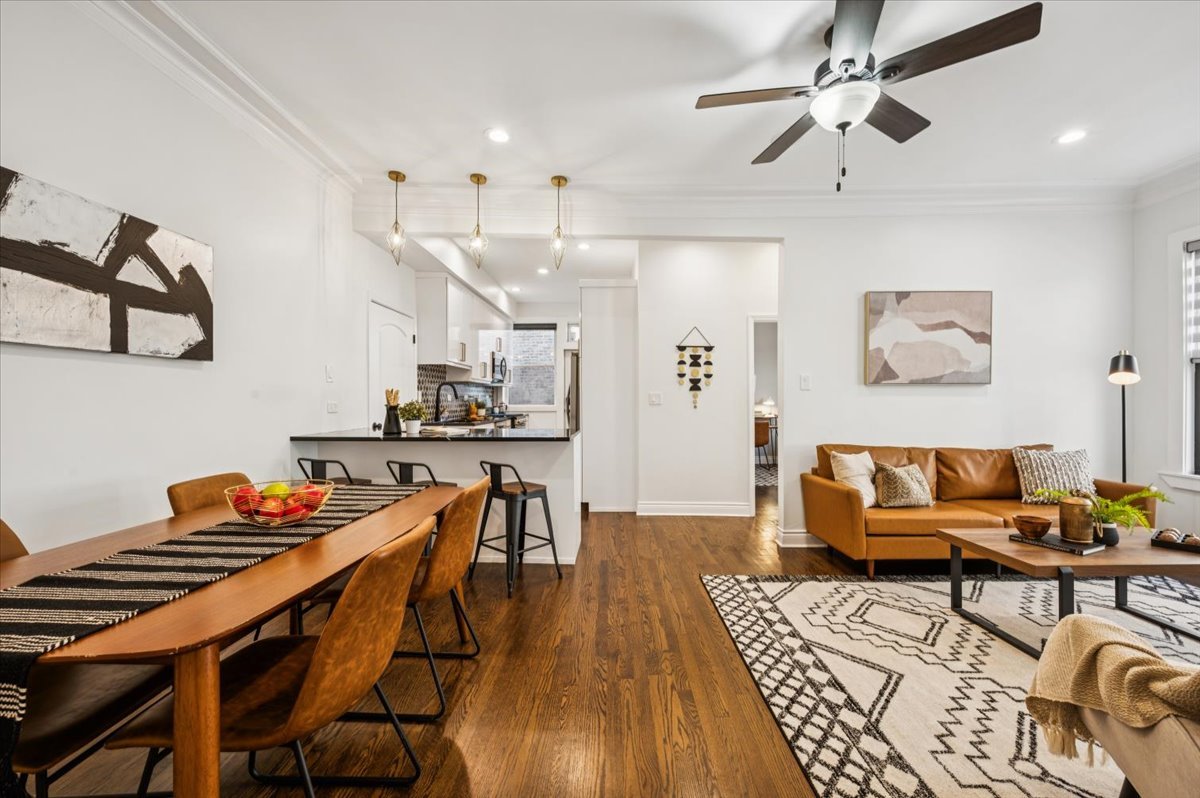 Perched on the top floor of a classic vintage building on a tree-lined, one-way street in the heart of historic Hyde Park-just one block from Obama’s home-this fully renovated 3-bedroom + den, 2-bath condo blends timeless character with modern luxury. As you step inside, you’ll instantly feel welcomed by a flood of natural light, gleaming hardwood floors, and a thoughtful layout, designed to include every living space on your wishlist. Begin your mornings in the charming sunroom, framed by stained-glass accents and treetop views of a leafy, historic boulevard- a serene retreat for quiet reflection. Entertain with ease in the inviting living room, anchored by refinished bookcases and a beautifully tiled decorative fireplace. Gather in the spacious family room and adjacent dining space, offering flexibility for both intimate evenings and lively get-togethers. The designer kitchen will inspire you to try your hand at new recipes, featuring Eclipse cabinetry, premium quartz countertops, a sophisticated backsplash, stainless steel appliances, and a large island with bar seating-perfect for morning coffee and casual conversations. Your tranquil primary suite boasts multiple closets and a private, spa-like bath. Two additional bedrooms and a stylishly remodeled second bath provide versatile spaces to suit every lifestyle need. A dedicated den makes working from home effortless, and the in-unit washer/dryer brings everyday convenience. Your cozy back deck offers the perfect setting for an evening nightcap, while your shared backyard provides an inviting setting to soak in sunny afternoons. Thoughtfully reimagined in 2019, this residence has been completely updated. Highlights include refinished hardwood floors, custom built-out closets, designer lighting, upgraded plumbing and electrical, and new vintage-inspired windows that preserve its architectural soul while adding modern efficiency. Beyond the unit, enjoy a large private storage space, dedicated bike storage, and the ease of ample street parking. Your well maintained condo association just completed roof resurfacing and tuck pointing, while still maintaining healthy reserves- you can also enjoy the flexibility in ownership, with no rental cap. Located in one of Chicago’s most storied neighborhoods, you’ll be surrounded by historic mansions, cultural landmarks, mature trees, and vibrant community events like the Hyde Park Jazz Festival. Just moments from the University of Chicago, Washington Park, the lakefront, and 53rd Street’s shops and dining, this residence offers the perfect balance of history, culture, and convenience. A rare opportunity to own a fully updated Hyde Park penthouse-this timeless classic is not to be missed!
