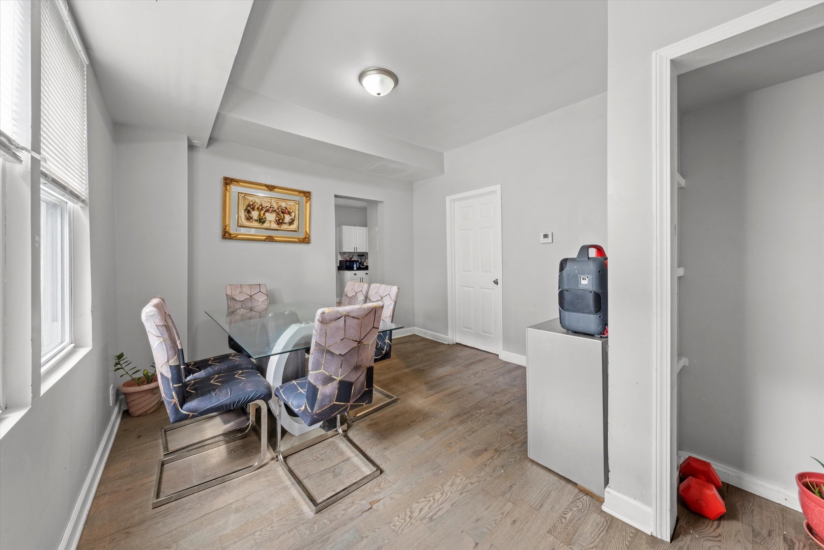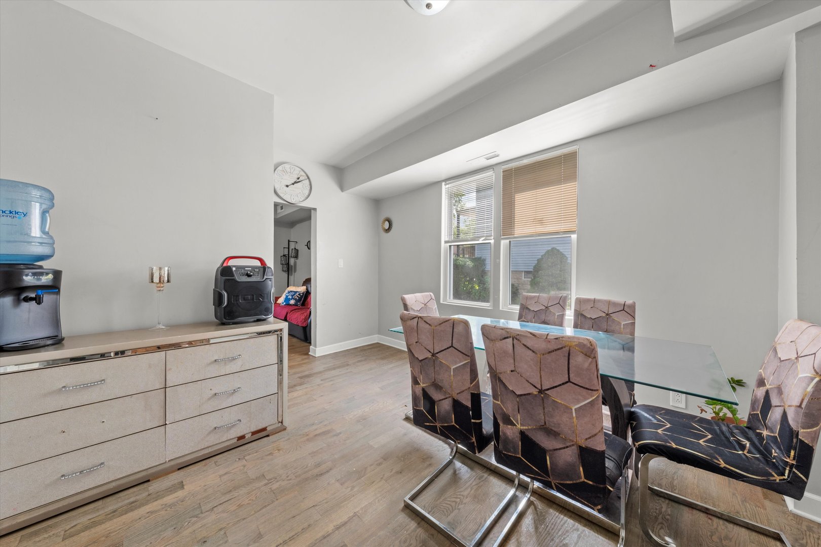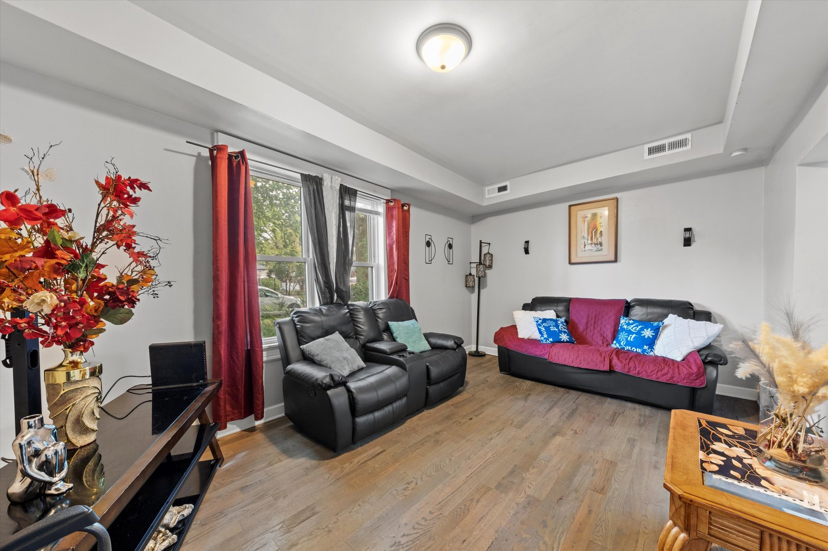 Move-in ready two-story home! The property offers 4 bedrooms, 2 full baths, and a convenient laundry area. Enjoy gleaming hardwood floors throughout and a bright, spacious living room that flows into the central dining area and modern kitchen featuring black quartz countertops, subway tile backsplash, and stainless steel appliances. Both bathrooms showcase sleek, contemporary finishes with large black marble-style tiles and stylish vanities. The fenced backyard provides ample space for outdoor entertaining and includes two parking spots. Conveniently located near Midway Airport, Soto Acero Schools, and just minutes from I-55.