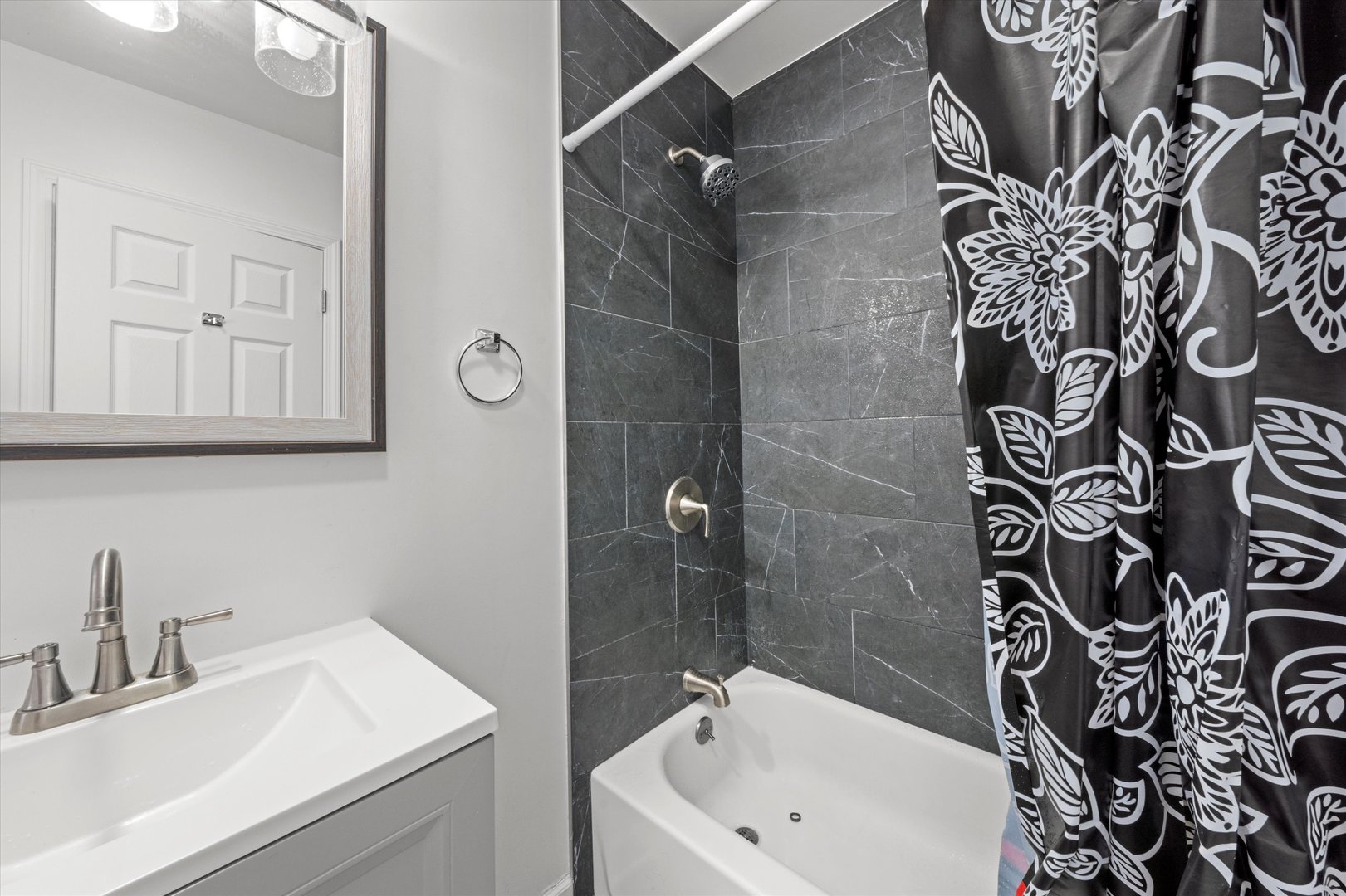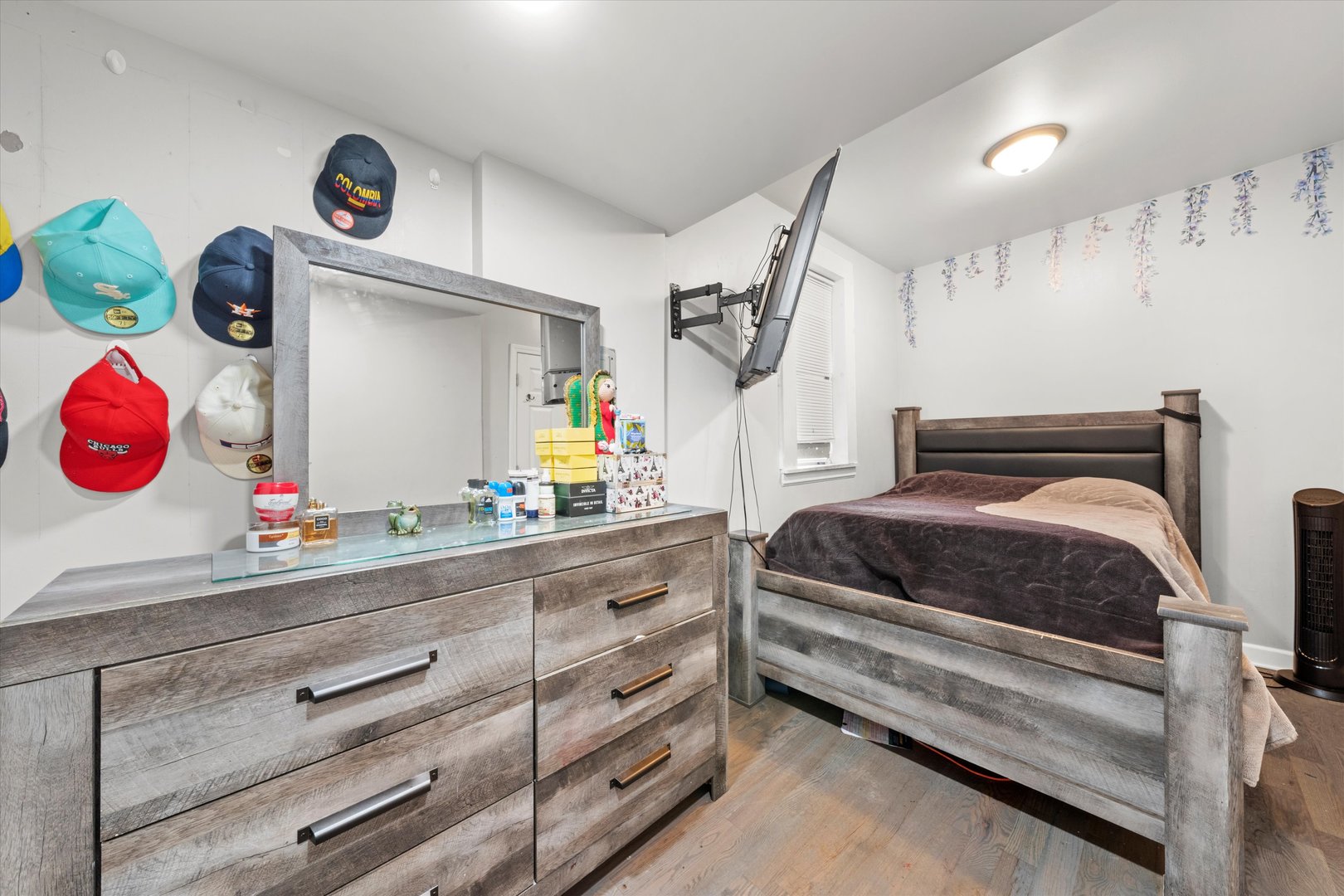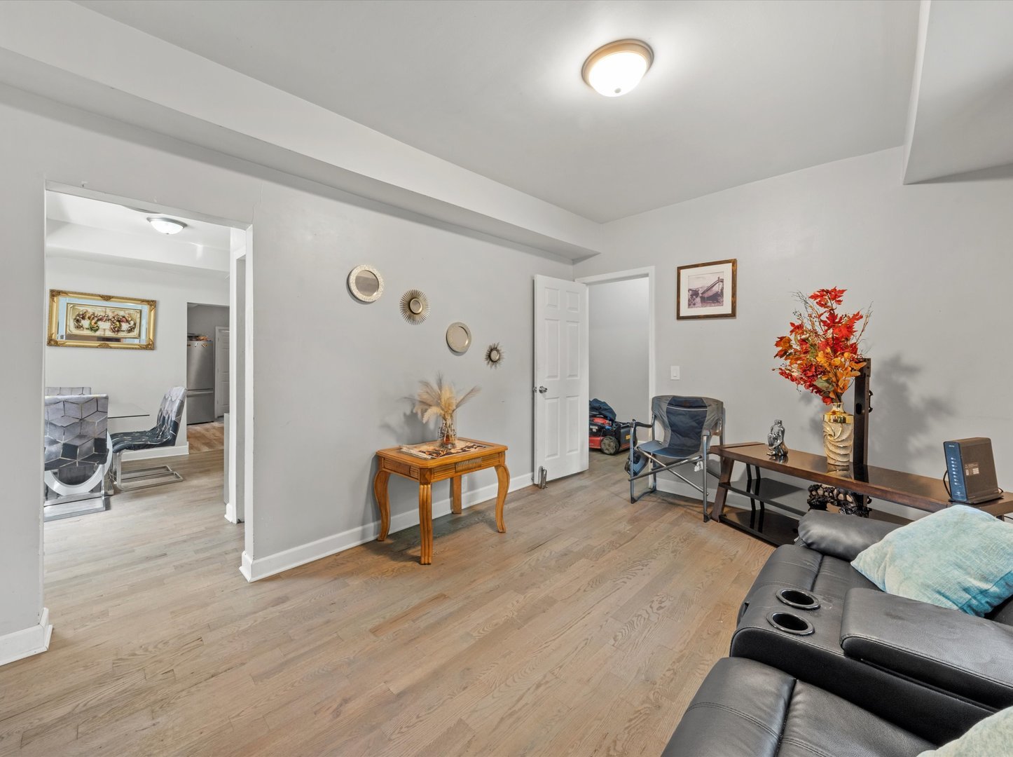 Move-in ready two-story home! The property offers 4 bedrooms, 2 full baths, and a convenient laundry area. Enjoy gleaming hardwood floors throughout and a bright, spacious living room that flows into the central dining area and modern kitchen featuring black quartz countertops, subway tile backsplash, and stainless steel appliances. Both bathrooms showcase sleek, contemporary finishes with large black marble-style tiles and stylish vanities. The fenced backyard provides ample space for outdoor entertaining and includes two parking spots. Conveniently located near Midway Airport, Soto Acero Schools, and just minutes from I-55.