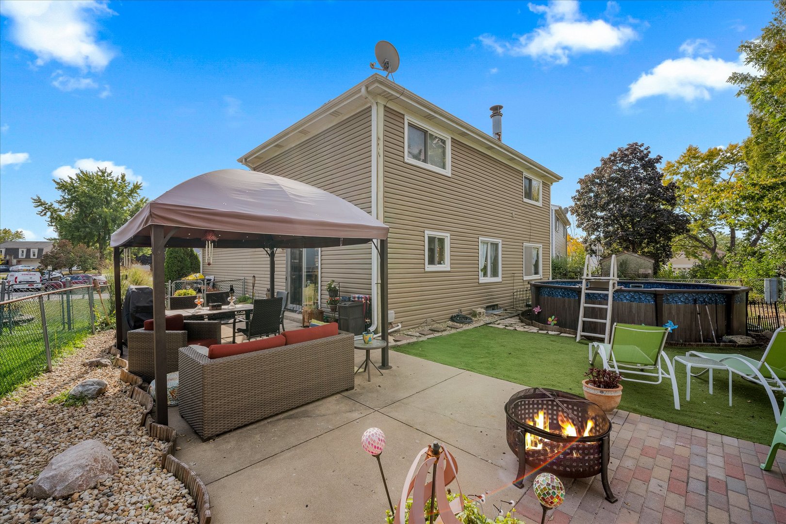 Tucked away on a quiet cul-de-sac in Roselle’s Waterbury neighborhood, this 3-bedroom, 1.5-bath home offers an ideal blend of comfort and convenience. The landscaped lot features a fenced backyard retreat complete with a pool, patio with pergola, and storage shed-perfect for entertaining or everyday enjoyment. Inside, luxury vinyl plank flooring runs throughout the main level, which includes an inviting living room, adjacent dining room, and updated eat-in kitchen with island, stainless steel appliances, decorative tile backsplash, and closet pantry. A sliding glass door leads directly to the backyard. Upstairs are three generously sized bedrooms, including a spacious primary. The full finished basement adds flexible living space. With a new roof and siding in 2017, a 2-car garage, and a location that’s walking distance to parks and minutes from Metra and the interstate, this home delivers both value and lifestyle.