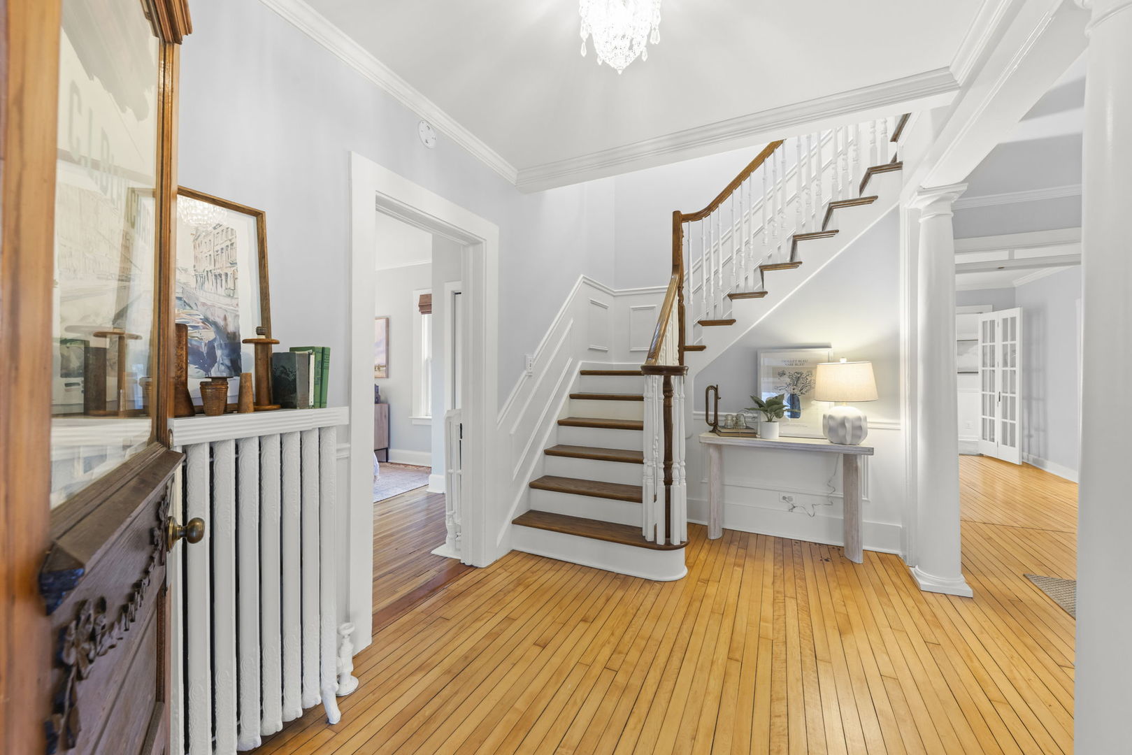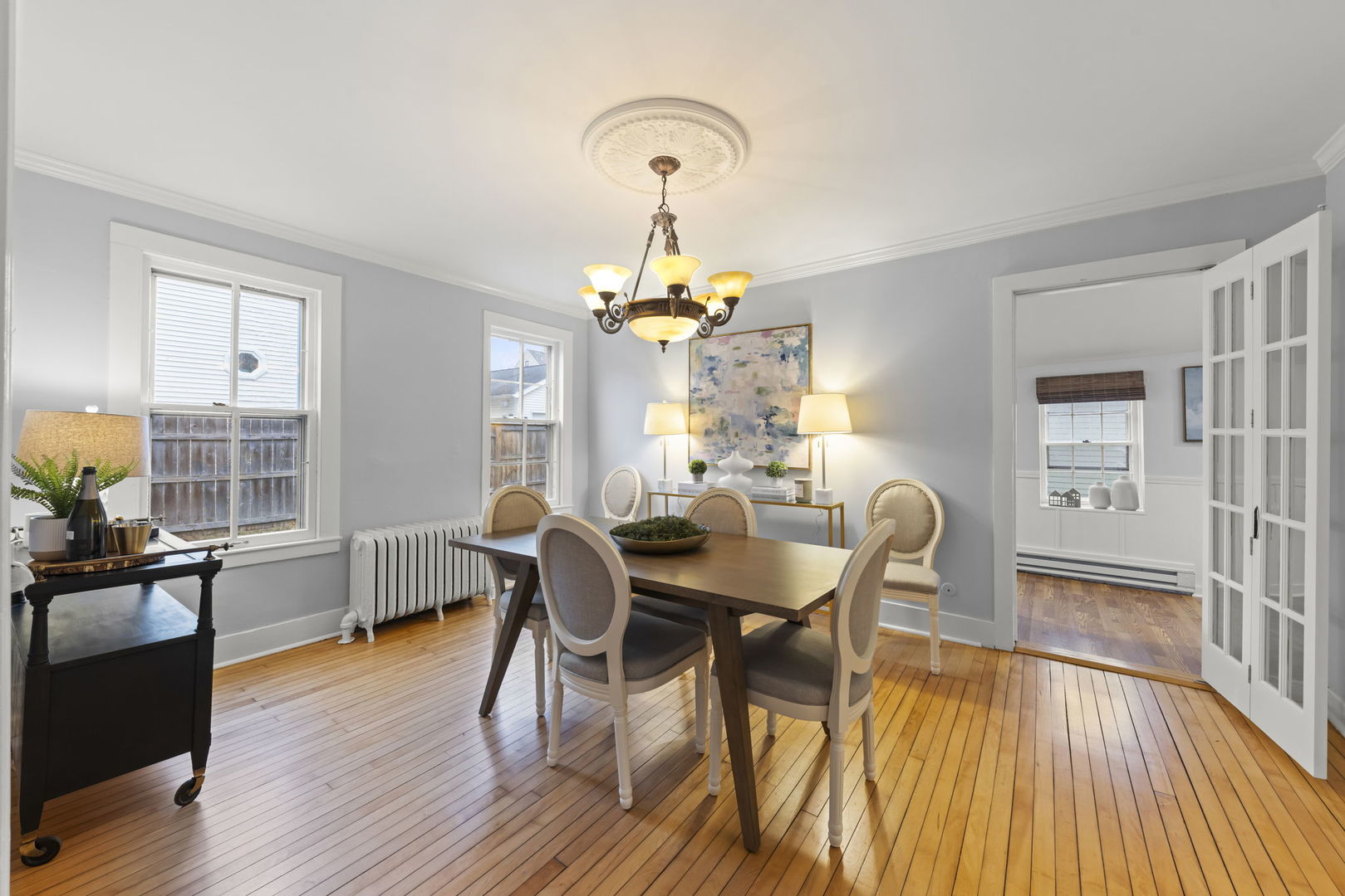 Built in 1837, this remarkable corner-lot residence is one of St. Charles’ true historic treasures-once welcoming former First Lady Mary Todd Lincoln, who visited to meet with noted spiritualist medium Caroline Howard. The home later served as a discreet Prohibition-era speakeasy and has played a meaningful role in the rich history of St. Charles and the surrounding area. This is a rare opportunity to own a tangible piece of Illinois history without sacrificing modern comfort. The first floor features an expansive living room anchored by a charming bay window and original wood floors, creating a warm, timeless ambiance. An elegant dining room with beautiful French doors flows seamlessly into the galley kitchen, where you’ll enjoy brand-new quartz countertops and sink, stainless steel appliances, abundant cabinetry, and a cozy eating area. From the kitchen, step out to the wooded deck and fenced backyard-perfect for outdoor dining, entertaining, or quiet relaxation. A well-appointed full bath and a comfortable first-floor primary bedroom complete the main level. Upstairs, you’ll find two inviting secondary bedrooms, ideal for family, guests, or flexible use. Additional updates include new gutters and a new roof on the garage this year, offering peace of mind to complement the home’s character and charm. Located within walking distance of vibrant downtown St. Charles, this home places you close to the Fox River, historic streets, acclaimed restaurants, unique shops, and lively day-and-night attractions. With its unparalleled blend of historic significance, architectural character, and thoughtful updates, this is more than a home-it’s a living chapter of St. Charles history.