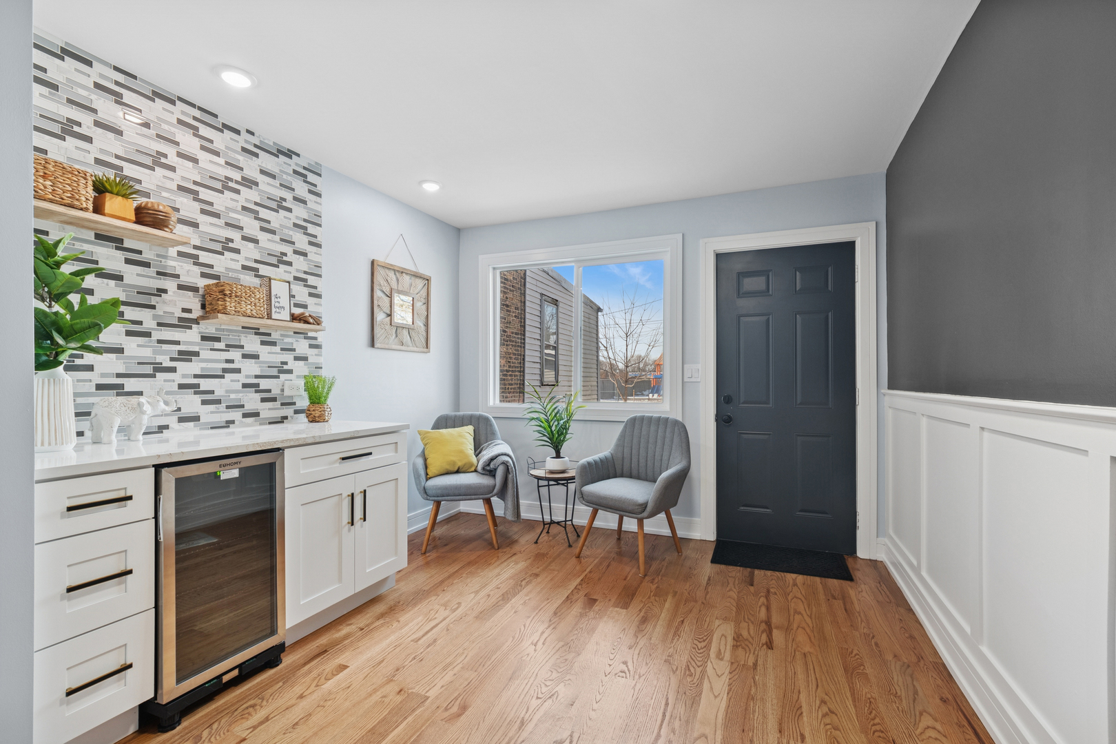 Welcome to this modern, totally rehabbed home in Washington Park neighborhood of Chicago, where everything is NEW, NEW NEW!!! This completely rehabbed property offers 4 bedrooms, bonus room/office, 2 +1/2 spa-like bathrooms, and huge 4 car detached garage! This stunning home combines modern elegance and luxury with a top quality finishes throughout: brand new flooring, custom made wainscot paneling, modern recessed lights and more! Open layout of main floor connects bright living room, spacious kitchen and dining space, with additional quiet office/bonus room in the back of the house. Cozy family room with a wet bar in the basement create an inviting atmosphere for both daily living as well as entertaining. The kitchen is equipped with all ss appliances, shaker style cabinets and quartz countertops. You don’t have to worry about anything, since all appliances, plumbing, electric, furnace, AC, HWH, wired security system, windows, roof, siding, garage door, sidewalks – you name it – was replaced in 2023/2024! This homes offers comfort, beauty, abundance of space and piece of mind! Convenient location: train and buss stops nearby, and only a few minutes drive to major expressways! Don’t miss the opportunity to make it your own!