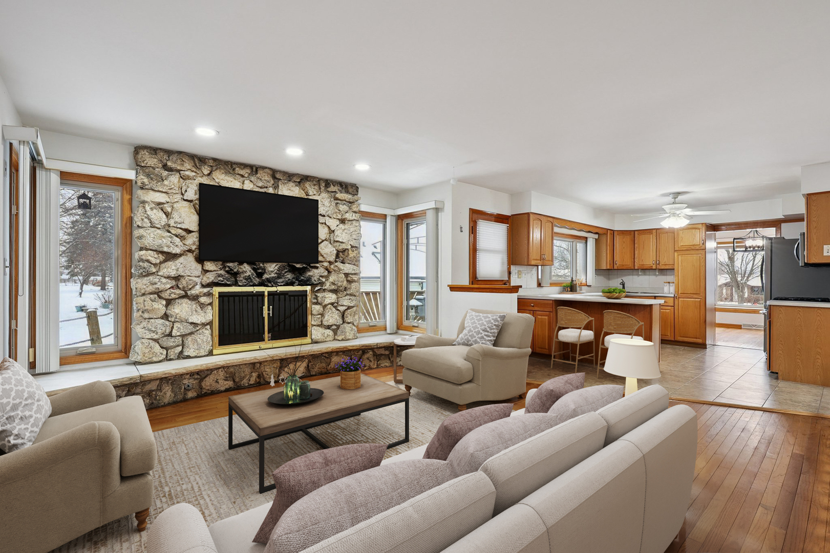 First time on the market custom hillside ranch home! Exceptional quality, gorgeous landscaping with aerated all season koi pond stocked with fish! The yard is a gardener’s paradise! 3 bedroom, 2 bath, open floor plan. The living room has a beautiful bay window and is combined into a large open space with the dining room and beautiful window line. You’ll love the amazing entertaining area this provides! The kitchen has Frigidaire SS appliances and is open to an adjacent comfortable family room with a stone fireplace. Large primary suite has access to the back deck for tranquil seating next to the koi pond. Huge private bathroom with walk in shower and separate tub, double vanity. Custom adjacent walk in closet provides exceptional storage! Nice sized secondary bedrooms share a hall bath. Full unfinished lower level with bathroom rough in and above ground windows. Separate lower level storage rooms. Expansive garage with additional storage area. Back of the home has a deck and patio areas for outdoor enjoyment. Located on a corner lot, there is a park with tennis courts across the street. Fantastic highway access, close to Woodfield Mall and all the conveniences Schaumburg has to offer! SO much to love! (NOTE: Security system and Ring doorbell are EXCLUDED and will be removed prior to closing.)