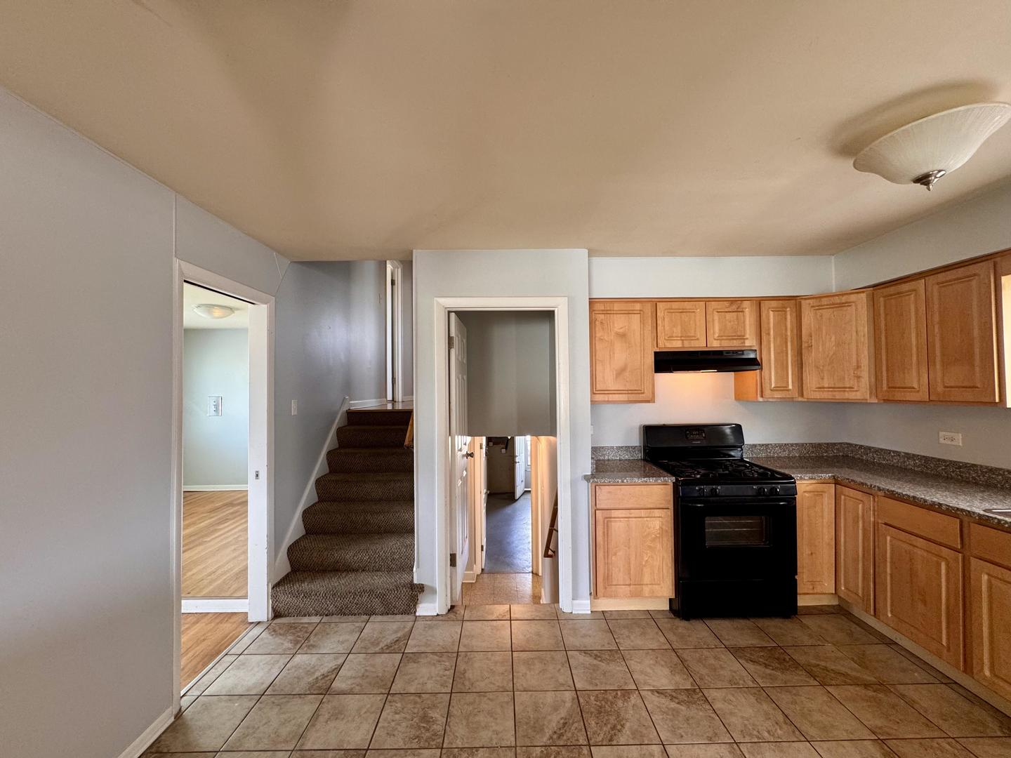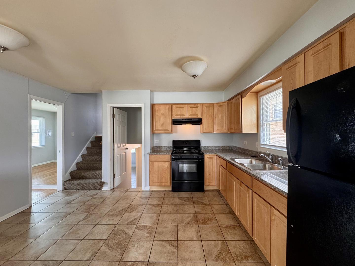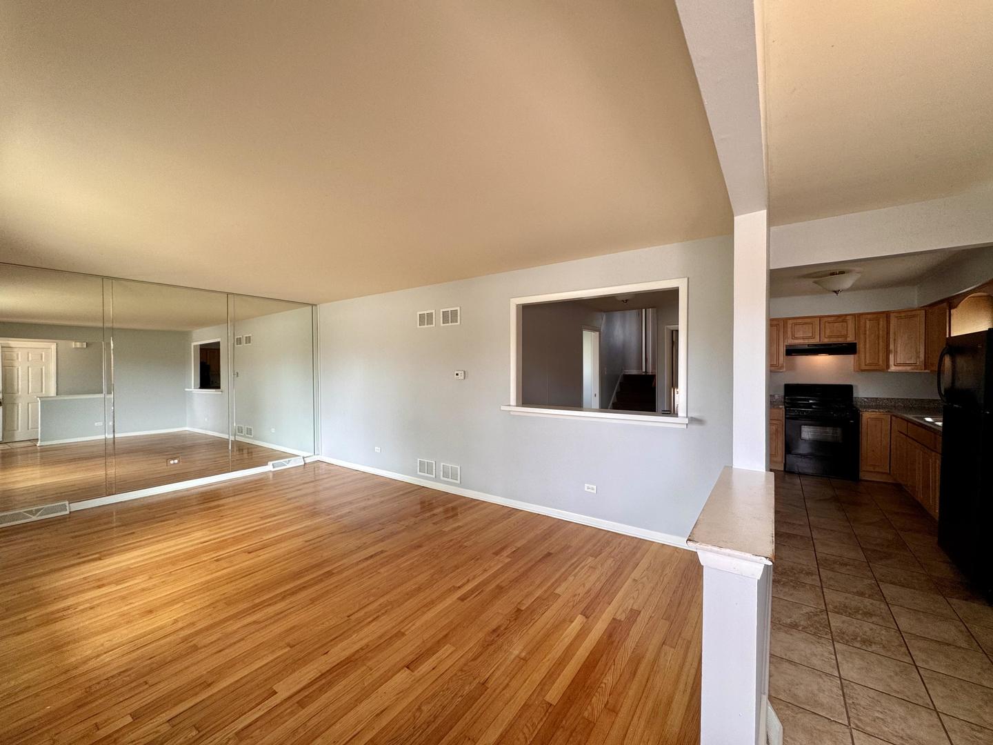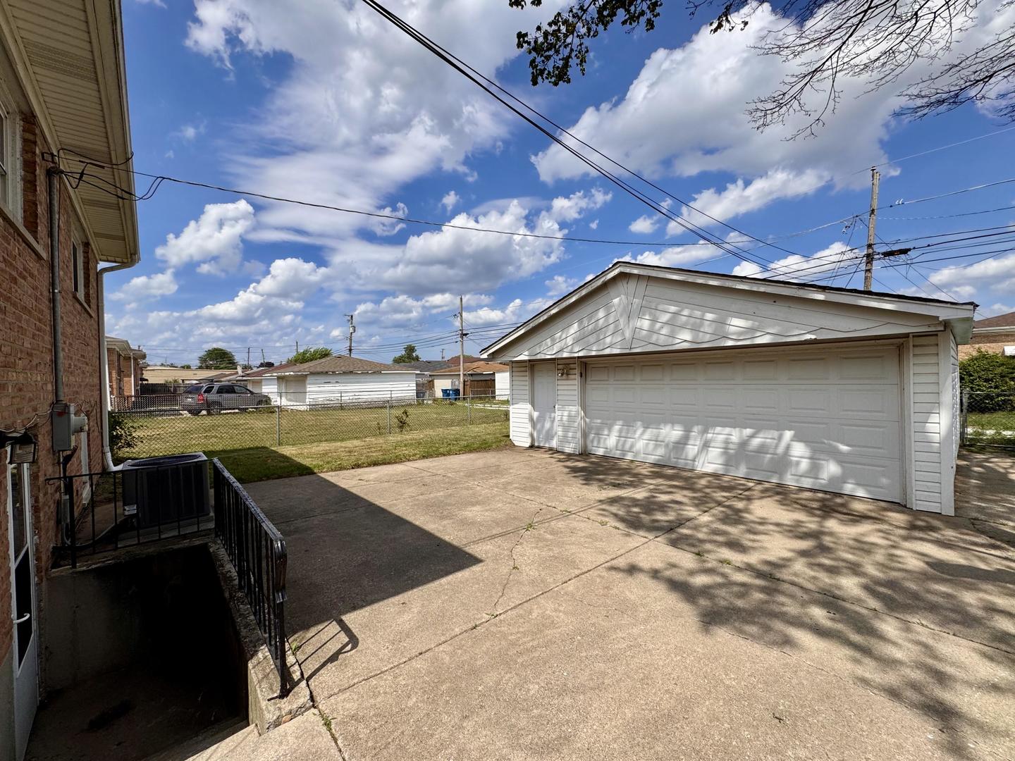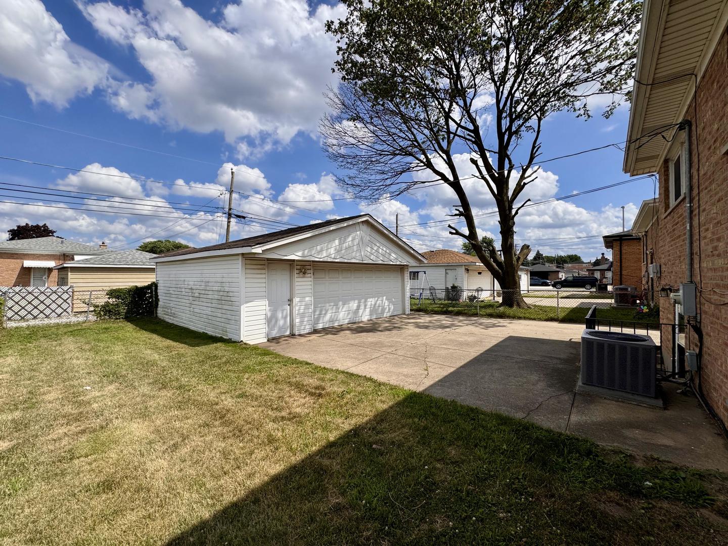 Welcome to this classic split-level 3 bedroom 2 bathroom home that offers charm, space, and flexibility. Tucked into a residential pocket of Calumet City, this brick bungalow greets you with a shaded front porch, concrete drive, and two-car detached garage. Inside, the living room shines with wood floors and mirrored walls that reflect natural light, while the kitchen delivers warmth and utility with wood cabinetry, tiled floors, and black appliances, including a gas range. A separate dining room off of the kitchen can be used as another bedroom. A finished basement adds living space with clean tile flooring and versatile layout. Out back, a spacious yard offers plenty of room to play, gather, or simply relax. This home combines curb appeal and livable space in a convenient location with easy access to shopping and expressways.