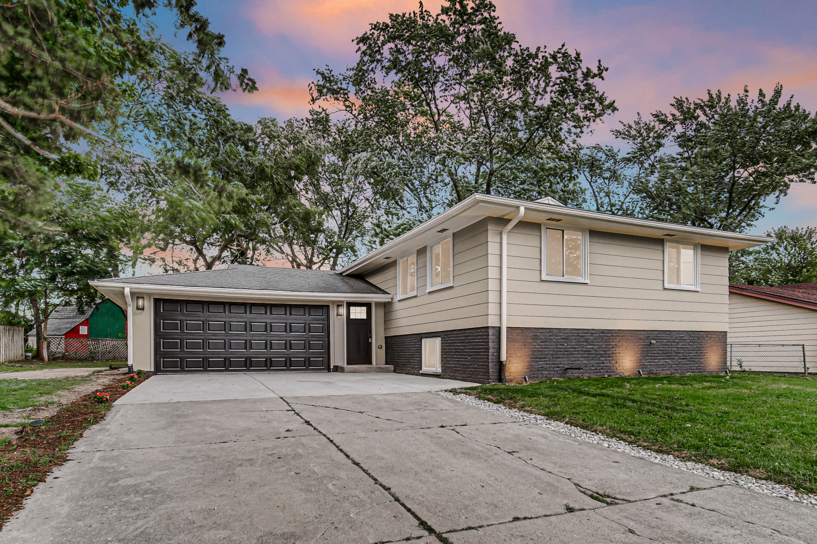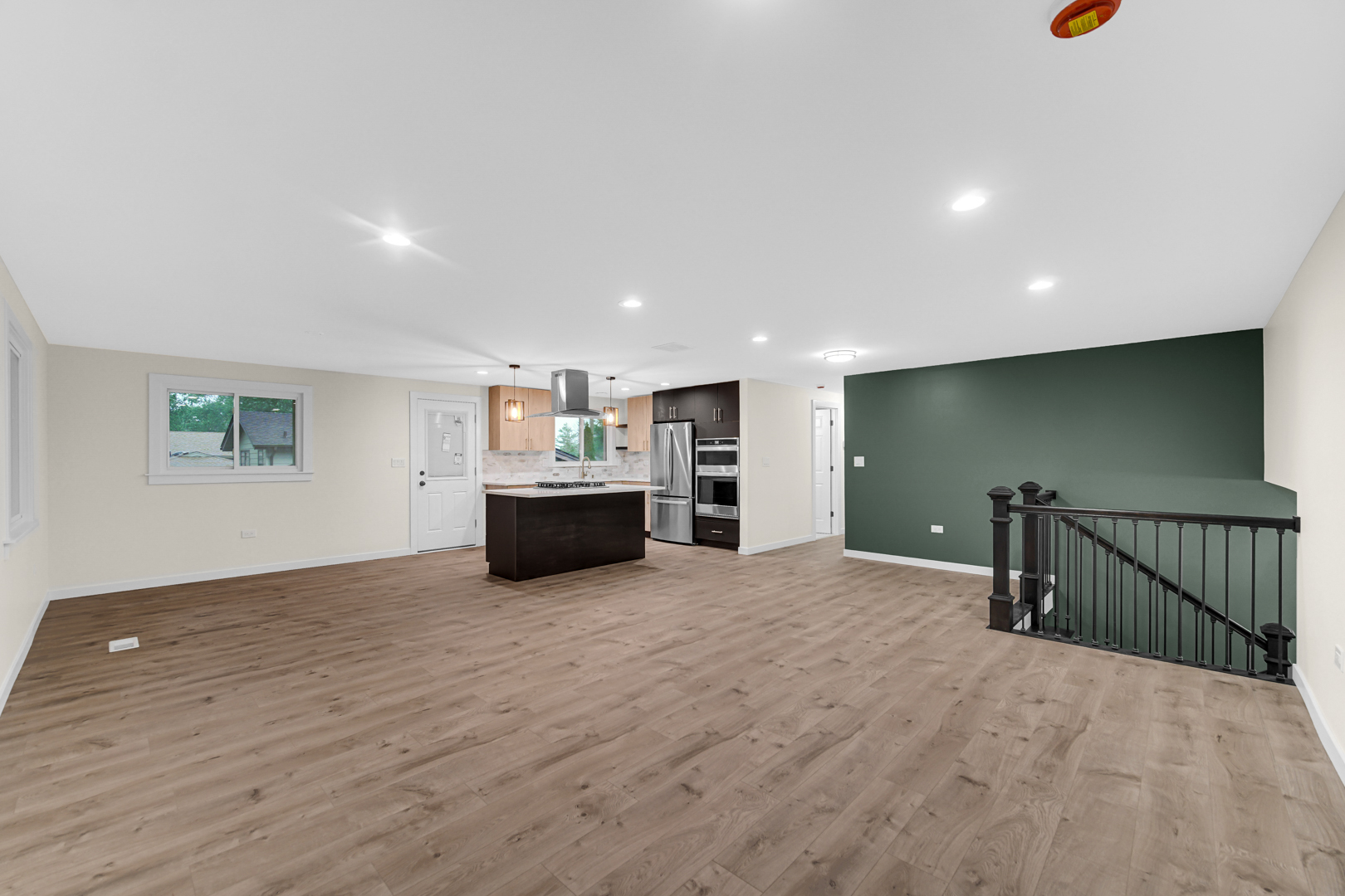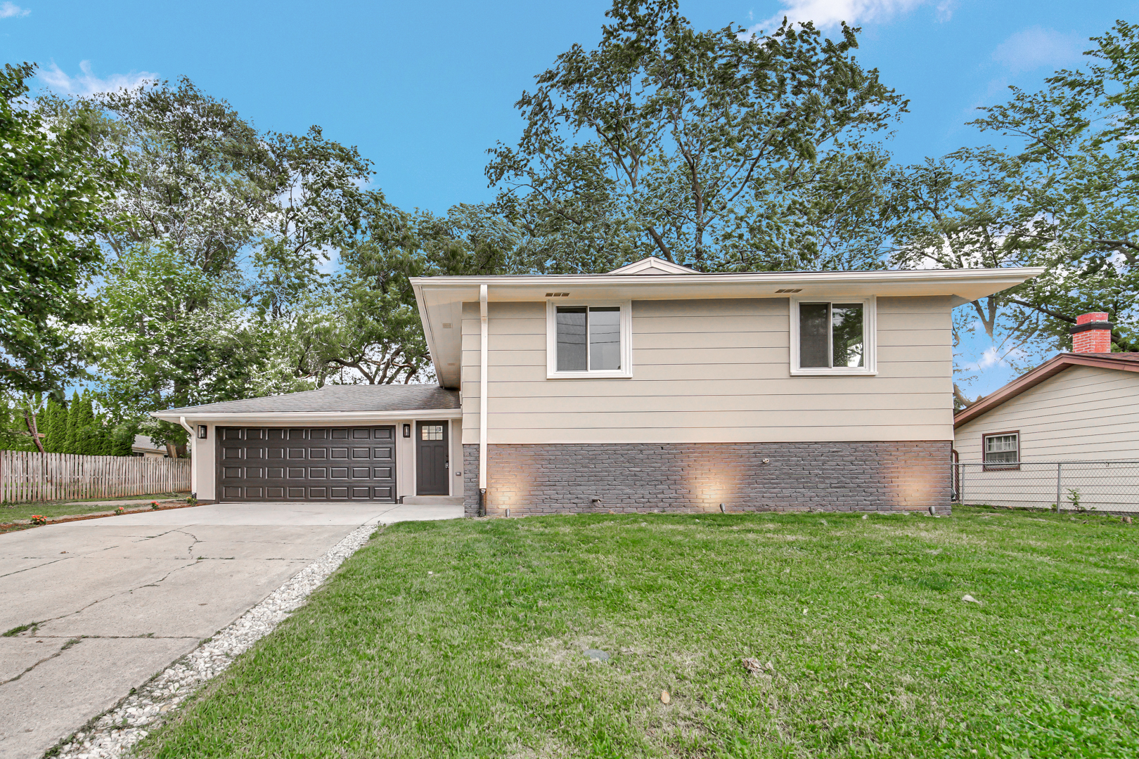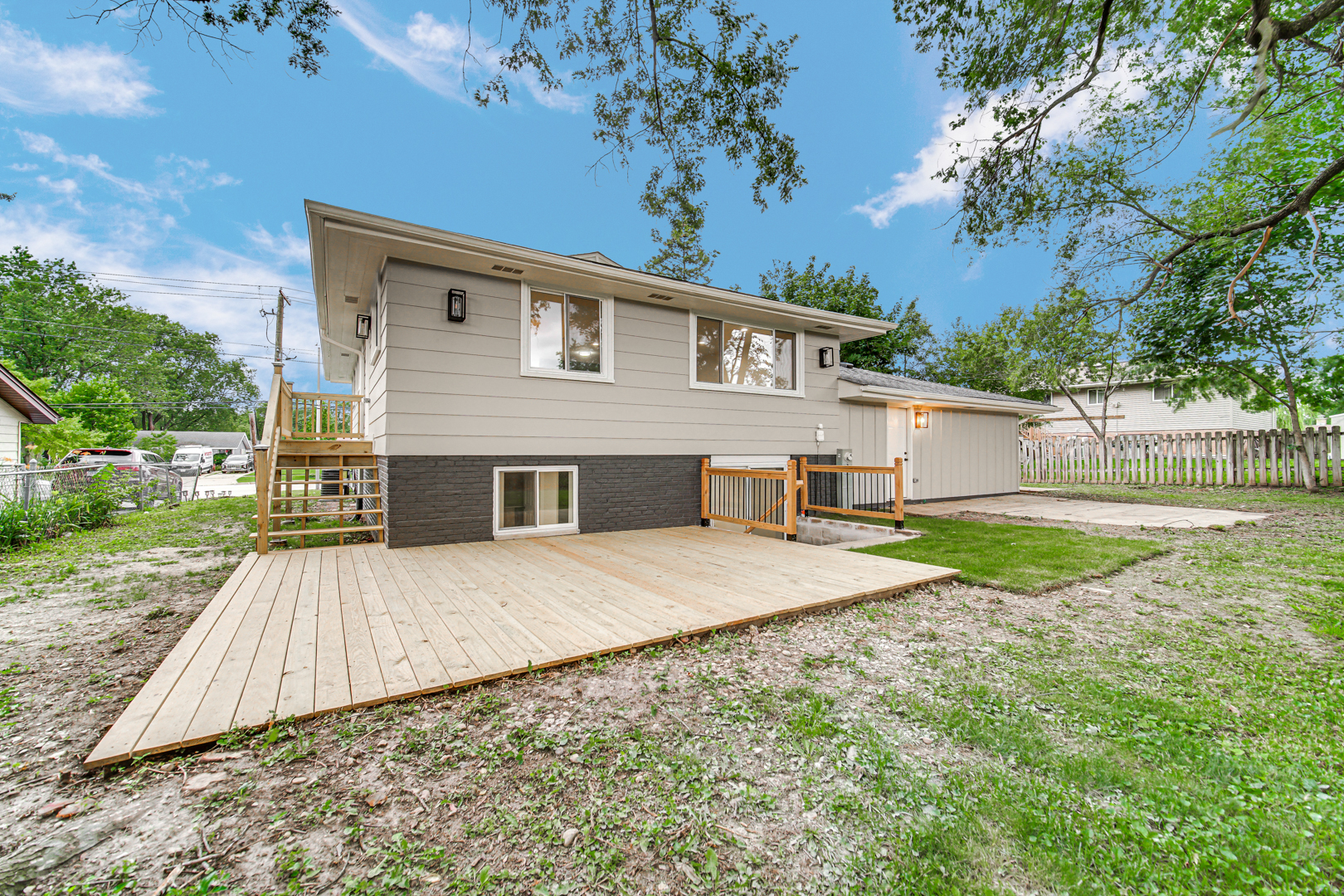 BRAND NEW INTERIOR – FULL TRUE GUT RENOVATION – ALL PERMITS PULLED AND FULL INSPECTIONS DONE – Professionally renovated and rebuilt home – 2025 – Nearly 2200 sqft of high end finishes. 5 bedrooms and 2 full baths. BRAND NEW plumbing, electric, drywalls, framing, insulation, flooring, windows, kitchen, bathroom, doors – literally NEW HOUSE on the inside. STUNNING renovation. OPEN concept layout. West facing home with incredible sunlight throughout the day. Extra long driveway + 2.5 car spacious attached garage. Stunning wood laminate floors. All new modern lighting. High end 2 tone cabinetry with soft close cabinets, dedicated vent exhaust, quartz counter tops and marble back splash. Built in oven/microwave combo. BIG brand new windows grace all the bedrooms. 5 total bedrooms – 3 on the main level and 2 on the lower level. Main level bathroom has designer finishes. Gorgeous porcelain wall tiles. Everything is up to 2025 code as per Village of Schaumburg requirements. Lower level walk out basement has a massive entertaining room fit. Lower level bathroom is also high end. DEDICATED laundry room with sink, stacked upgraded washer and dryer + cabinets and ironing space + long term storage/pantry. 2 additional bedrooms with closets and windows where 1 is perfect for a home office/den/gym area. Or use 1 bedroom upstairs as your huge walk in closet and use 2 bedrooms in the walk out lower level with full sized windows. GREAT use of space. Exterior has all new lighting making the house SHINE at night. BRAND new deck in the backyard is ready to enjoy. Fully fenced in yard. One of the best renovations at this price point. Better than new construction houses. WHAT a home!