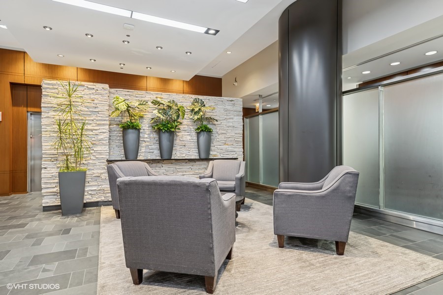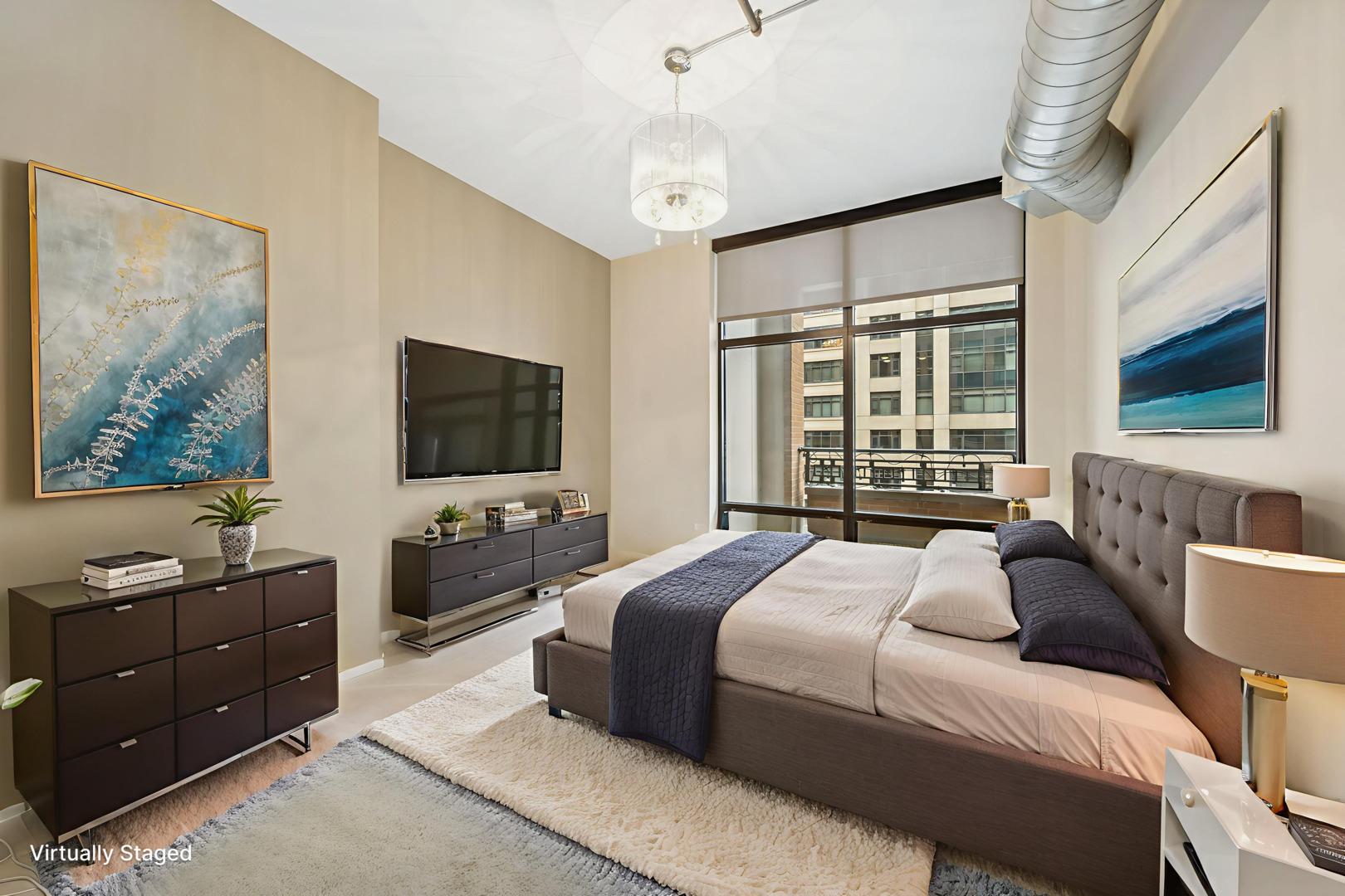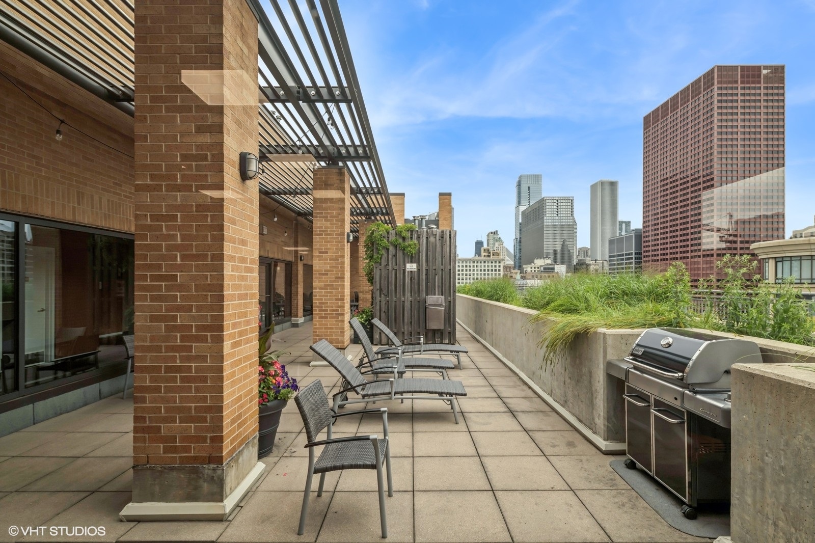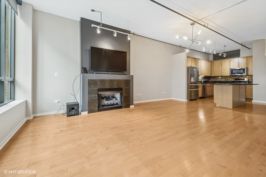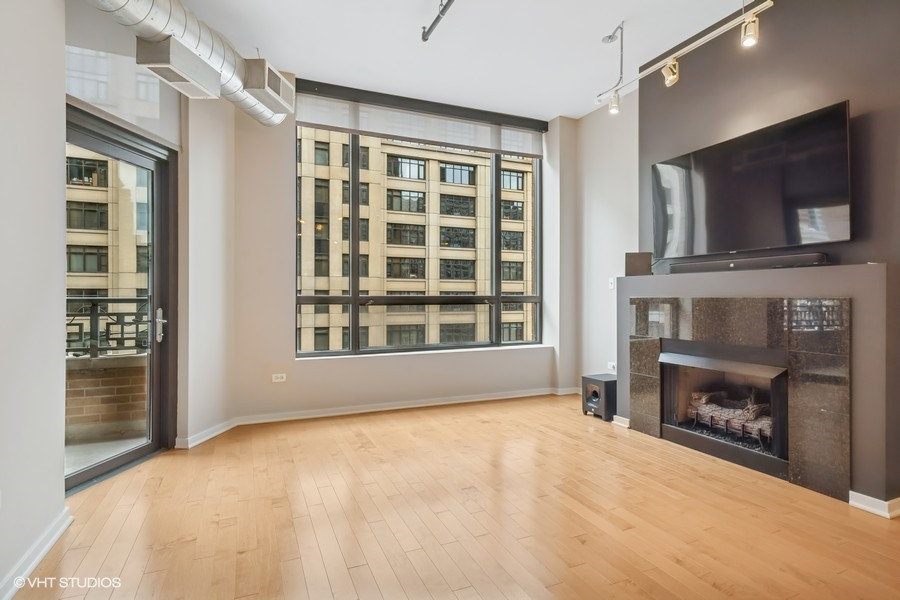 Warm and inviting loft! Two bedroom, two bath, perched on the eleventh floor of Library Tower. Fabulous location and floor plan. A quiet South Loop oasis in the heart of Chicago. Natural light floods the living area with hardwood floors, soaring ceilings and a granite tiled fireplace. Direct access to a private masonry clad terrace. The open kitchen is defined by an oversized island, stainless steel appliances, an abundance of cabinets and new overhead lighting. Custom tile backsplash and richly flecked ebony granite countertops provide tone and texture to the space. Retreat to the primary suite with neutral carpeting, walk-in and double bifold closet. Bath boasts a jetted soaking tub, ceramic tile surround, dual granite topped vanity and linen closet. Secondary bedroom with large walk-in closet and nicely appointed attached bath. The convenience of an in-unit new washer and dryer (2024). Full amenity building with on-site management, 24-hour doorman, roof deck, fitness and business center, theater, storage locker (1812). Walk to Grant Park, Millennium Park, Michigan Avenue, CVS, Trader Joe’s, Whole Foods, Jewel, and steps to public transportation and more! Deeded parking space #239 available for $25,000.