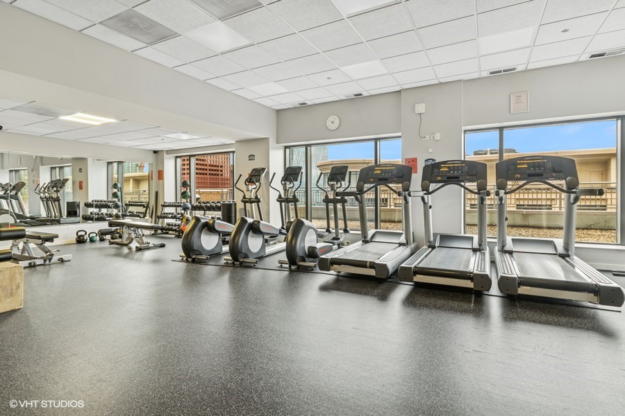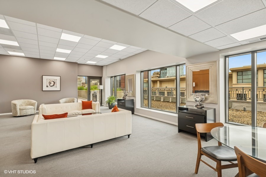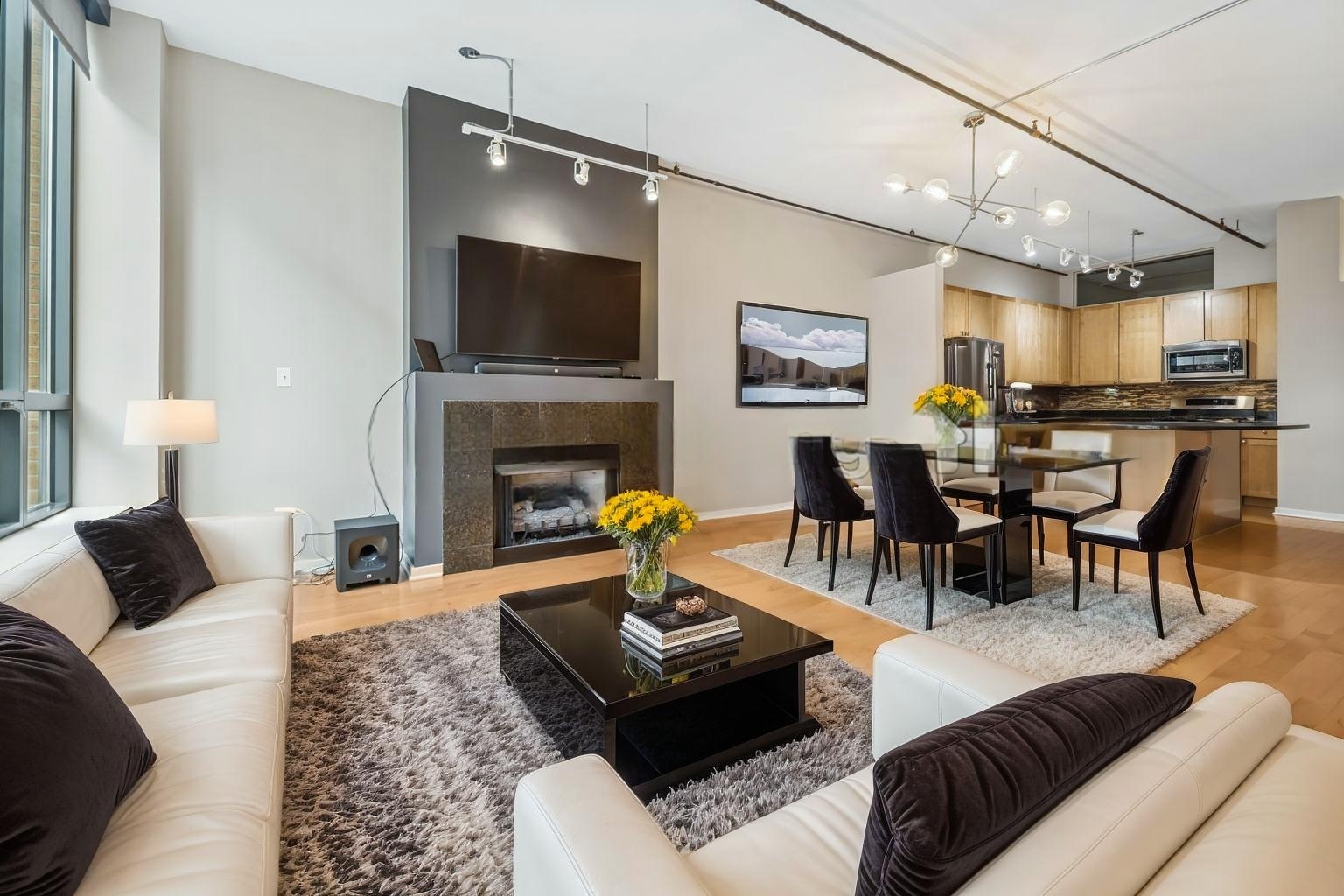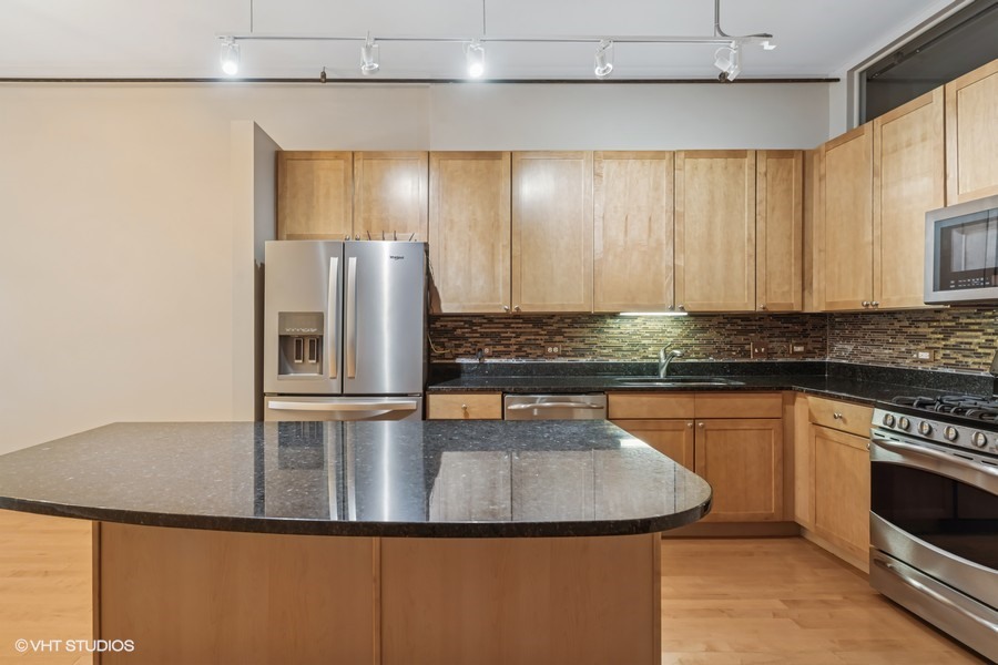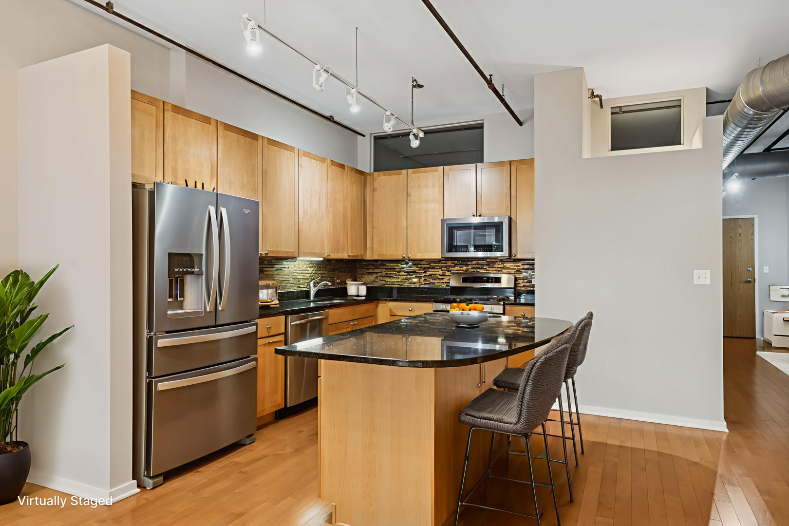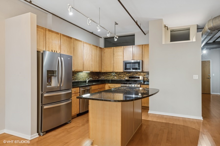 Warm and inviting loft! Two bedroom, two bath, perched on the eleventh floor of Library Tower. Fabulous location and floor plan. A quiet South Loop oasis in the heart of Chicago. Natural light floods the living area with hardwood floors, soaring ceilings and a granite tiled fireplace. Direct access to a private masonry clad terrace. The open kitchen is defined by an oversized island, stainless steel appliances, an abundance of cabinets and new overhead lighting. Custom tile backsplash and richly flecked ebony granite countertops provide tone and texture to the space. Retreat to the primary suite with neutral carpeting, walk-in and double bifold closet. Bath boasts a jetted soaking tub, ceramic tile surround, dual granite topped vanity and linen closet. Secondary bedroom with large walk-in closet and nicely appointed attached bath. The convenience of an in-unit new washer and dryer (2024). Full amenity building with on-site management, 24-hour doorman, roof deck, fitness and business center, theater, storage locker (1812). Walk to Grant Park, Millennium Park, Michigan Avenue, CVS, Trader Joe’s, Whole Foods, Jewel, and steps to public transportation and more! Deeded parking space #239 available for $25,000.