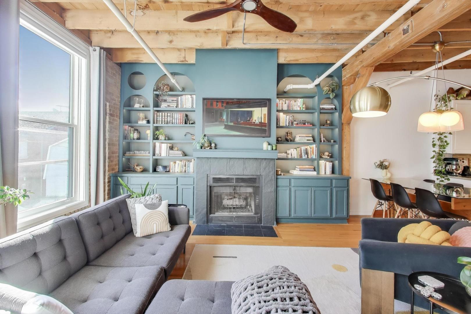 Rare Andersonville Loft in the Historic Map Factory -a truly distinctive duplex loft in one of Andersonville’s most storied industrial buildings. This spacious one-bedroom plus office combines historic character with modern comfort. The dramatic upper level features an expansive open floor plan, ideal for entertaining, with soaring 12-foot timber ceilings, exposed brick, hardwood floors, and a wood-burning fireplace that anchors the space. The kitchen’s stainless-steel finishes and generous layout make it equally suited for quiet nights in or lively gatherings. Downstairs, the private level creates a serene retreat with a spacious bedroom, dedicated office area, and warm architectural details that make the space both functional and inspiring. Enjoy a beautifully maintained common roof deck with a gas grill-perfect for relaxing or entertaining. The building also features laundry facilities and a voice intercom security system for peace of mind. Located just steps from Andersonville’s vibrant shops, cafes, and restaurants, this rare residence offers an ideal blend of urban style and neighborhood charm. Experience one of Chicago’s most walkable and welcoming communities from a home that’s as unique as its setting.