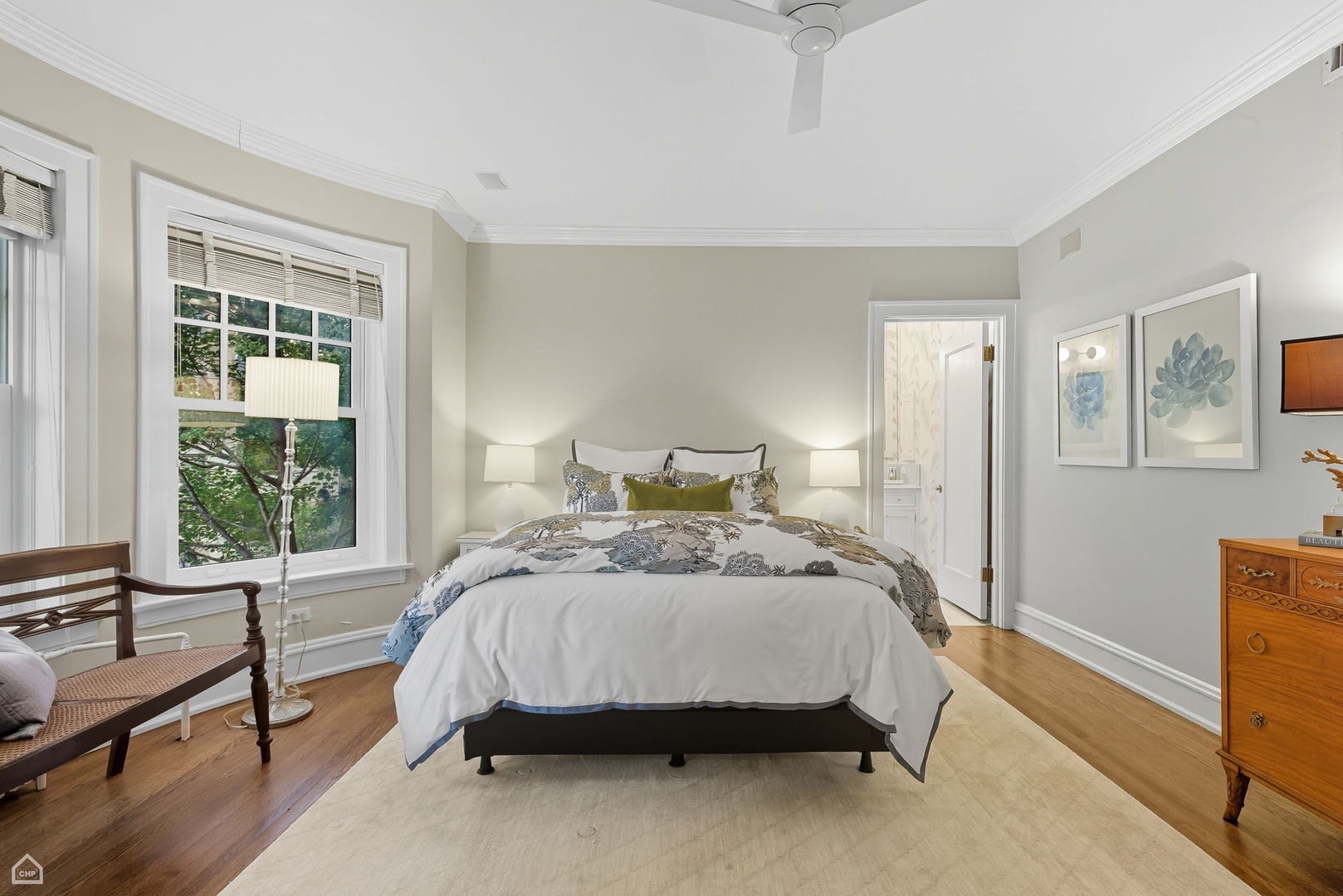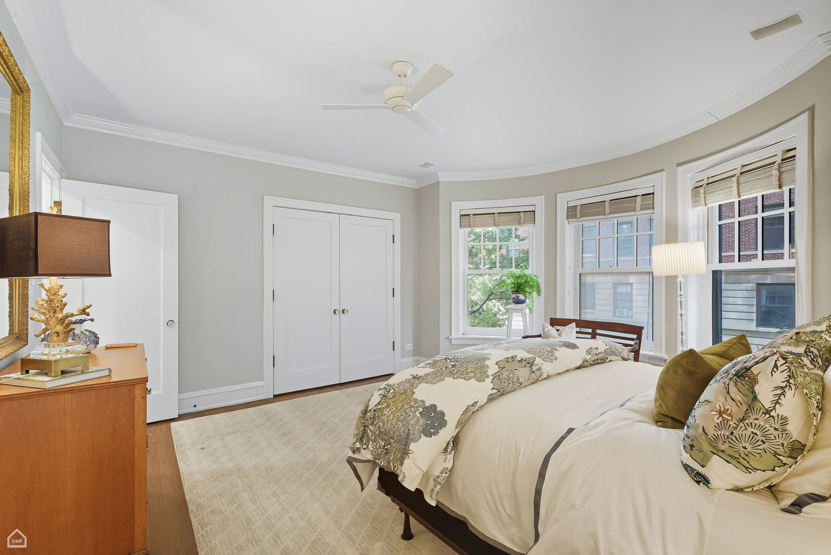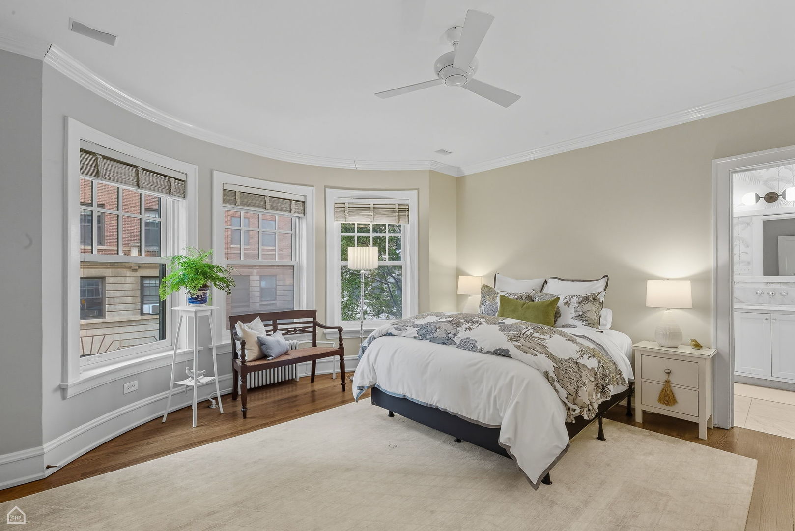 Sophisticated and sun-filled, this East Lakeview corner residence at 524 W Briar offers four bedrooms and two full baths across a single, thoughtfully designed level. The home showcases timeless finishes, including hardwood flooring, custom crown molding, and a seamless Sonos sound system. The chef’s kitchen is appointed with premium appliances and a built-in bar, complementing the expansive dining room for refined entertaining. The primary suite is a true retreat, featuring a spa-inspired dual vanity bath, while three additional bedrooms provide exceptional versatility. A private storage room and deeded garage parking at 450 W Briar add convenience to elegance. Steps from the lakefront, renowned dining, boutique shopping, and top-rated Nettelhorst Elementary, this residence captures the best of Lakeview living.