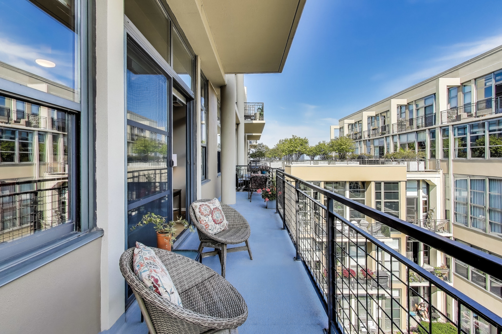 This true turnkey home boasts 12′ ceilings and extensive updates throughout, including refinished solid oak flooring and a refreshed kitchen with stainless steel appliances, new quartz counters, and an extended peninsula. The spacious primary suite features luxurious cork flooring and a walk-through, professionally organized closet leading to a stunning ensuite with a soaking tub and separate shower. Down the hall, guests will rest comfortably in the fully enclosed second bedroom with cork flooring, located near the second bathroom, which also includes the laundry center and extra storage. Step outside to your private outdoor courtyard oasis, where your expansive 30-foot balcony offers a perfect balance of city views and natural surroundings. The Domain itself is a must-see, with hotel-style amenities including 24-hour door staff, package concierge service, on-site maintenance, a fitness center, bike storage, and a spectacular rooftop party room and deck with panoramic city views. Pet lovers will appreciate the building’s welcoming atmosphere and nearby dog parks and scenic walking paths. Ideally situated along the Riverwalk, this prime location feels like a peaceful retreat while still being just minutes from world-class dining, shopping, and public transportation. Secure, heated garage parking is available for $30,000.