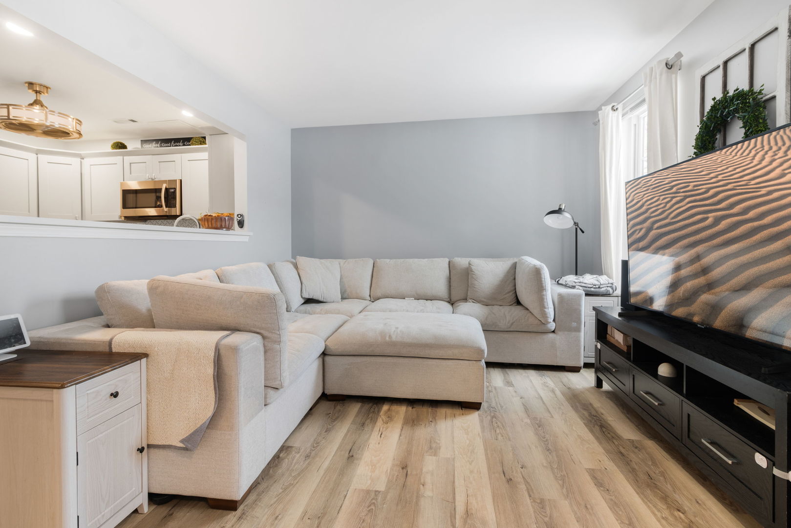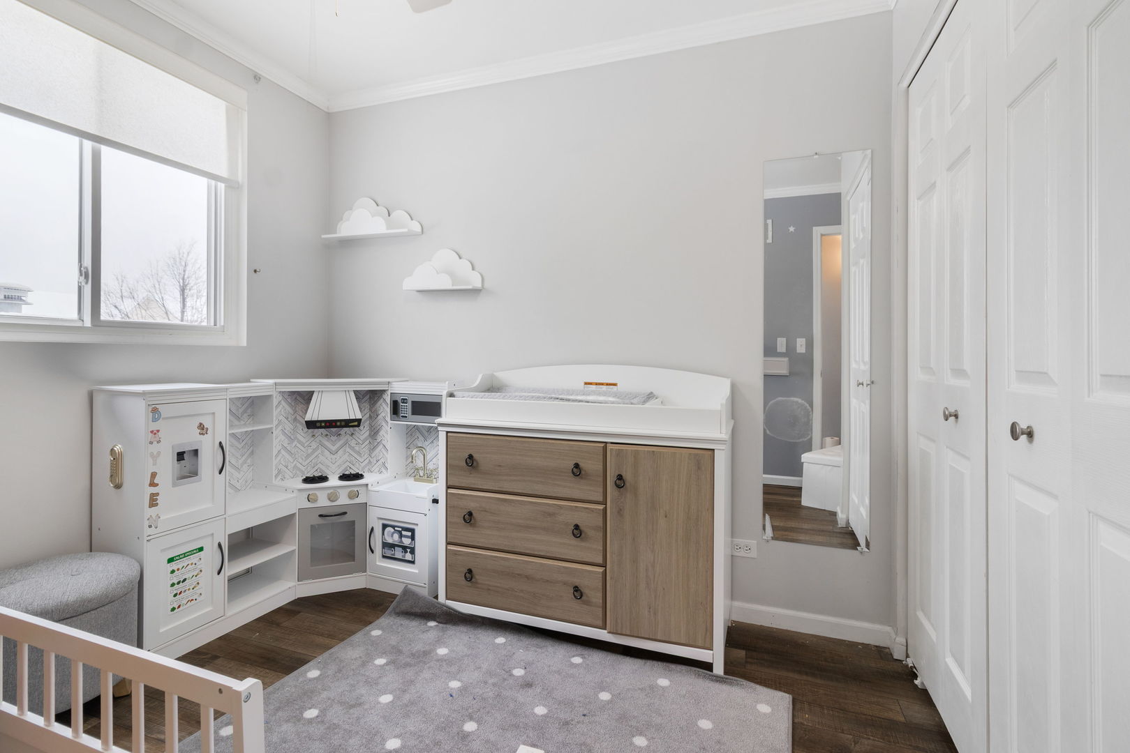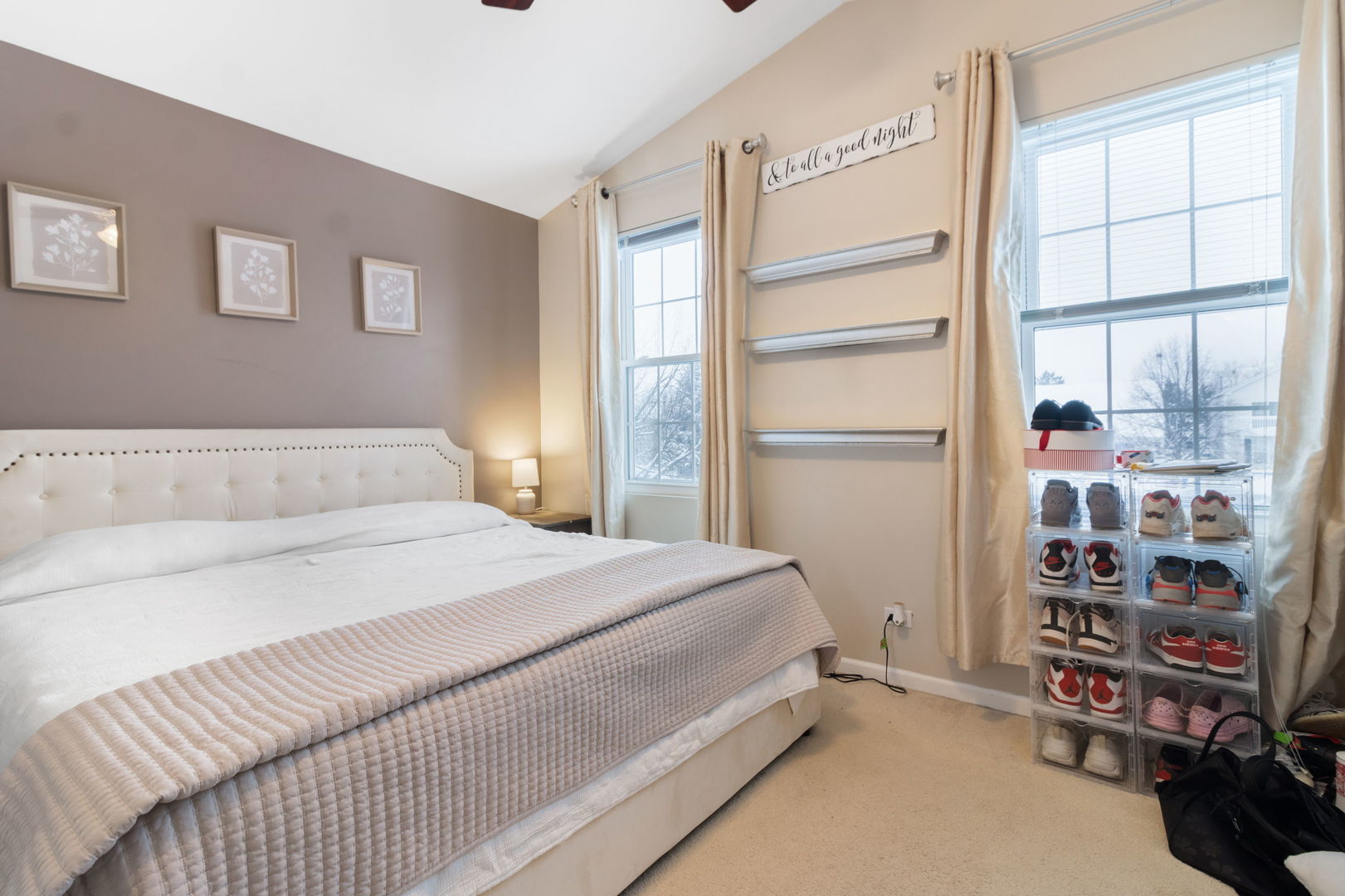 Beautifully updated and impeccably maintained home! Beautifully updated and meticulously maintained throughout. The stunning 2019 kitchen features soft-close cabinetry, Silestone counters, herringbone backsplash, and newer SS appliances. Main level includes updated vinyl plank flooring and a remodeled powder room, plus an improved laundry area. Upstairs offers a remodeled full bath, crown molding in all bedrooms, and a spacious primary suite with vaulted ceiling and a custom built-in closet system. Designer lighting throughout. All windows replaced (except garage). New garage entry door and new garage door (2020). Attached 2-car garage is wired for Tesla/EV charging. Enjoy the inviting front porch and private back patio. Located on a tree-lined street facing green space and steps from parks, walking paths, and Hometown’s convenient town center. HOA covers roofing, water, siding, snow removal, and lawn care. Additional upgrades and inclusions: 2024 washer & dryer, 2024 microwave, 2024 disposal, water heater (2025), vents cleaned (2024), A/C serviced (2025), furnace serviced (2024). Includes entry table, mounted TV and electric fireplace stand in primary bedroom, and living room/bedroom curtains. Security cameras may remain. A truly move-in-ready home-don’t miss this one!