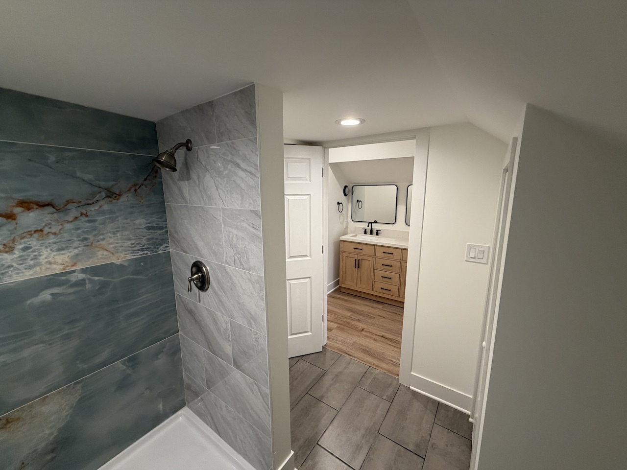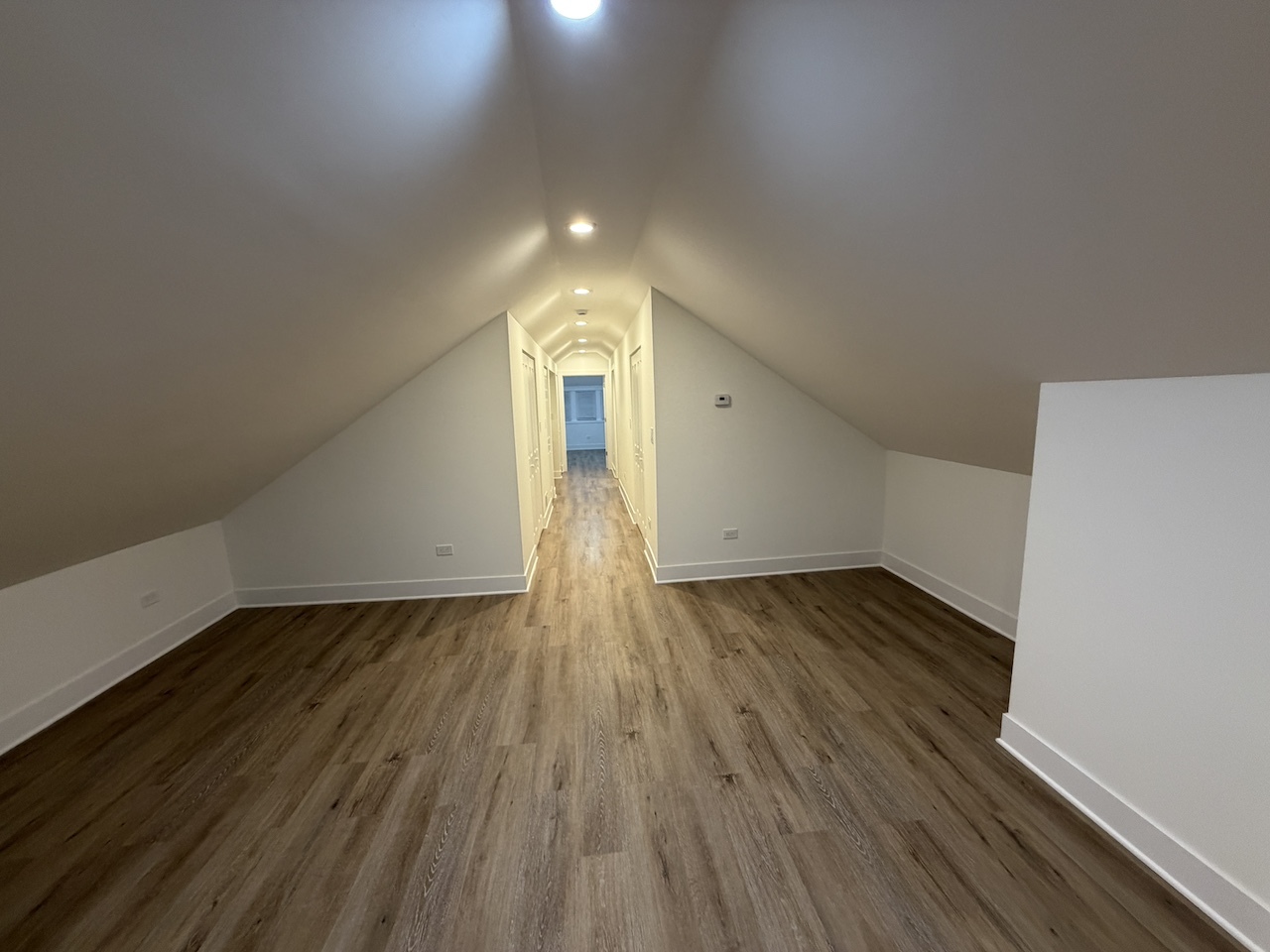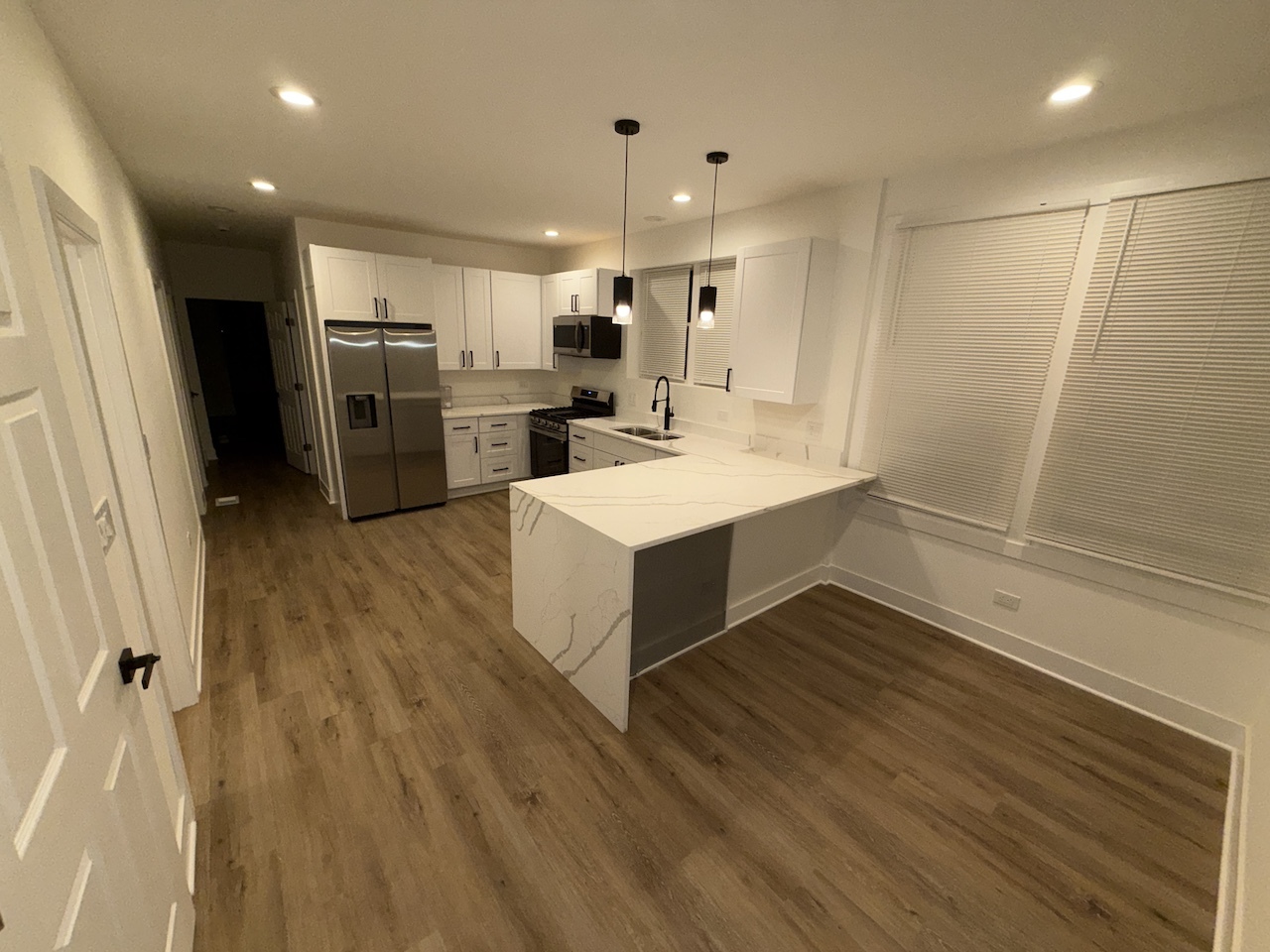One of Berwyn’s finest jumbo brick bungalows – fully remodeled from top to bottom! This solid home blends timeless charm with modern luxury and features a rare, highly sought-after side driveway. Step inside to an open, spacious floor plan with luxury vinyl wood floors throughout, a bright living and dining area, and a versatile office space. The stunning kitchen showcases quartz countertops, a large peninsula with seating, a walk-in pantry, and stainless steel appliances. The main floor offers three bedrooms and a full bath designed with both style and function in mind. The entire second floor serves as a private primary suite – complete with its own living room, massive closets, and a spa-inspired bathroom with a double vanity. The fully finished basement adds exceptional versatility with four additional bedrooms, a full bath, and a dedicated laundry area – perfect for a growing family or extended living. Outside, enjoy a fenced yard and a two-car garage. Additional upgrades include 200-amp electrical service, newer plumbing, newer windows, dual furnaces, and dual A/C condensers. Truly one of a kind – this jumbo bungalow is a must-see!