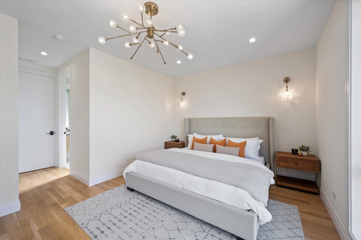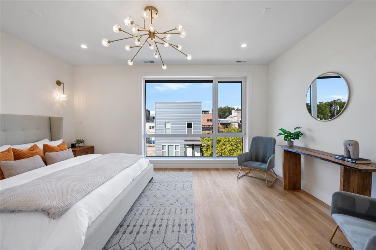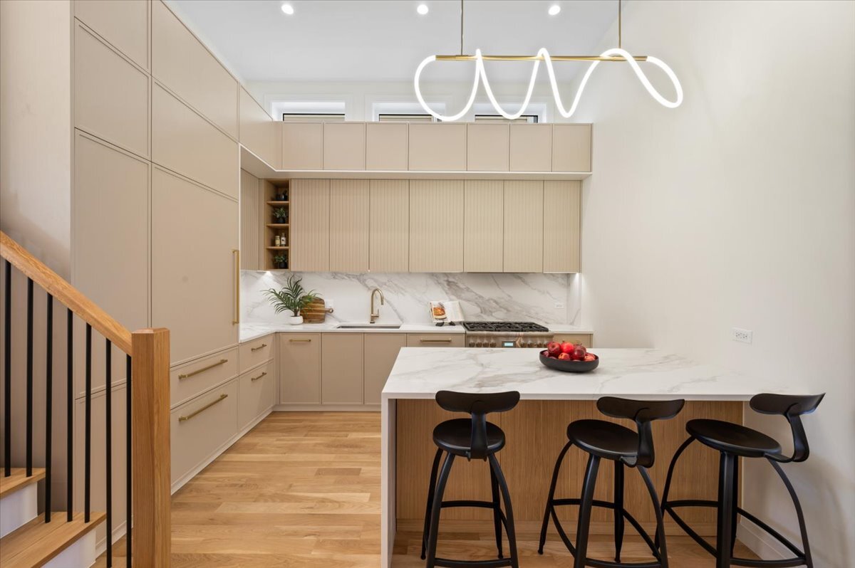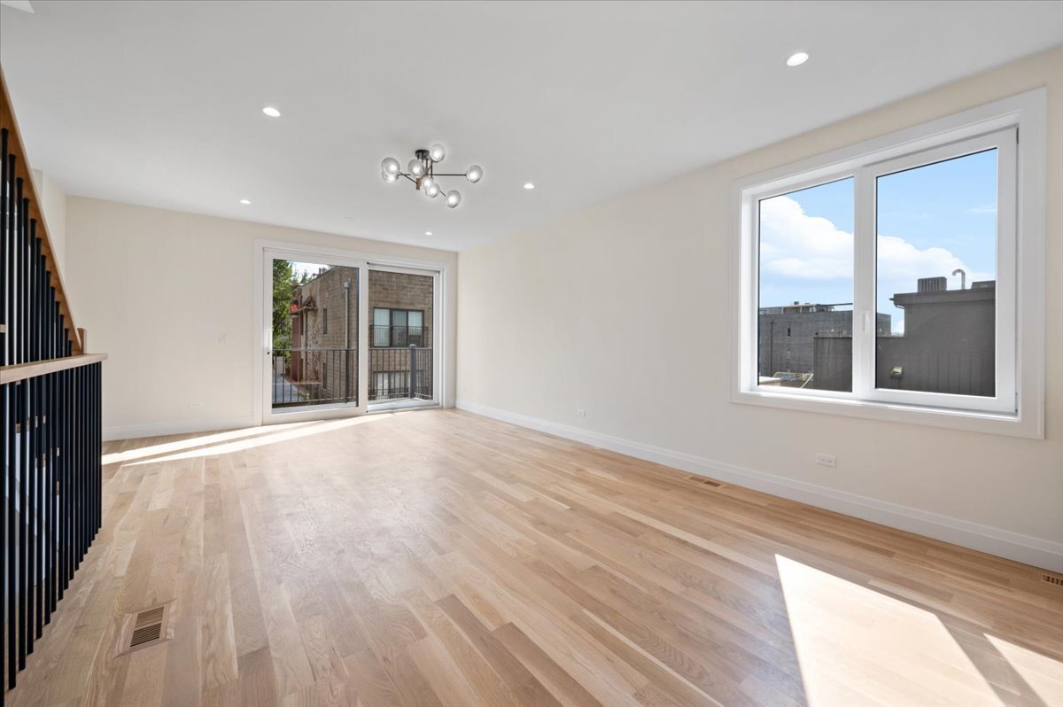 This stunning new construction custom home is truly one-of-a-kind-not just on its block, but across the entire neighborhood. Featuring a striking exterior design that looks as if it belongs on the pages of an architectural design magazine, this home immediately stands apart. Its most rare feature is a full third floor with a private rooftop deck and breathtaking Chicago skyline views, a distinction no other home nearby can claim. Offering 4 bedrooms, 4.1 bathrooms, multiple outdoor spaces, and an attached 2-car garage pre-wired for EV charging, this home combines luxury sleek design, sophisticated finishes, and smart functionality for modern city living. Step inside to soaring 13-foot ceilings, sun-drenched interiors, and floor-to-ceiling windows that flood the open layout with natural light. Hardwood flooring flows throughout the home, while formal living and dining spaces create an elegant yet welcoming atmosphere. At the heart of the main level is the chef’s kitchen, complete with imported European cabinetry, quartz countertops, and top-of-the-line appliances. The living space extends seamlessly to the garage rooftop deck, perfect for entertaining or al fresco dining. The primary suite is your private retreat, featuring a spa-inspired bath with a steam shower, rain head, body sprays, and a dual vanity. Two additional bedrooms share a beautifully designed full bath with sleek tilework and tub/shower. The top floor is a showstopper-boasting a spacious guest suite with an en-suite bath, a rec room with wet bar, laundry, and access to the rooftop oasis where skyline views set the perfect backdrop.The lower level offers even more flexibility with a large family or media room, a full bathroom, and a second laundry space. Located in the heart of West Town, you’ll enjoy proximity to neighborhood favorites like Publican Bakery, Beatnik, Breakfast House, Forbidden Root, and countless boutiques, breweries, and coffee shops-with quick access to public transit and downtown Chicago. This home is the ultimate blend of architectural beauty, functional design, and rare luxury in one of Chicago’s most dynamic communities.New developments are popping up everywhere – but none compare to the unbelievable value of this luxury home. Thoughtfully designed with beautiful finishes, spacious layouts, and attention to every detail, this residence delivers the perfect balance of elegance and comfort in one of Chicago’s most desirable locations.