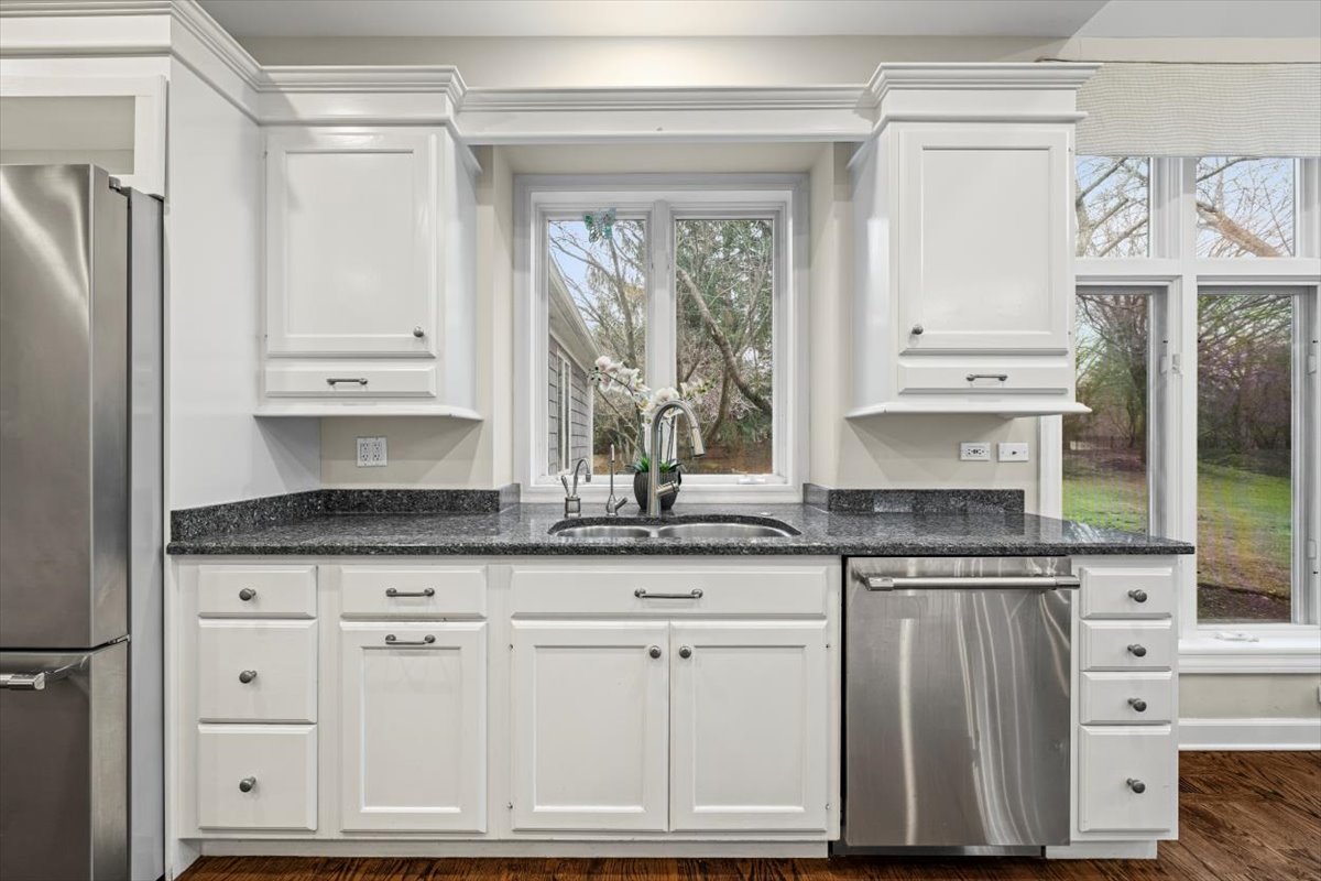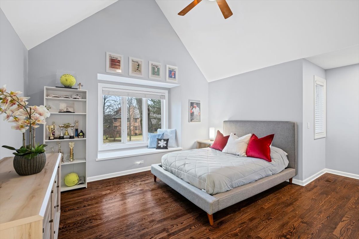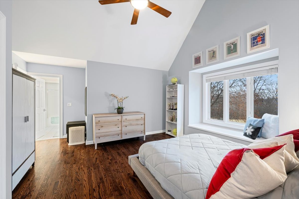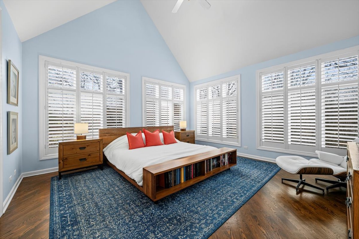 Striking Nantucket-style home set on a beautifully landscaped, private 1.5-acre lot in highly desirable Lake Forest, offering timeless curb appeal and a serene setting within the top ranked Lake Forest High School and Everett Elementary School district. A covered front porch and charming window boxes create a warm, welcoming first impression and classic North Shore appeal. Inside, vaulted ceilings, elegant 8-foot doors, and hardwood floors throughout enhance a grand, open floor plan ideal for entertaining. Expansive floor-to-ceiling windows flood the home with natural light, creating bright, inviting living spaces with seamless flow. The kitchen is the heart of the home, featuring custom Wood-Mode cabinetry, a large center island with breakfast bar, and a walk-in pantry. It opens to an inviting family room anchored by a dramatic stone fireplace-perfect for everyday living and gatherings. Just beyond, the sunroom offers radiant heated floors and three walls of expansive sliding glass doors, blending indoor and outdoor living and providing an ideal space for family time and entertaining. The main-level primary suite serves as a peaceful retreat with a spa-inspired bath including heated floors, a jacuzzi tub, separate shower, and walk-in closet. A private first-floor office offers excellent flexibility for remote work, study space, or a playroom. The second level features three generously sized bedrooms, a loft area, and two full bathrooms, offering ample space for family and guests. The finished lower level expands the living area with a temperature-controlled wine room, recreation space, exercise area, and abundant storage-ideal for growing families and active lifestyles. Additional highlights include a heated three-car garage, new roof (2023), and freshly painted exterior (2025). Ideally located near Metra service, highway access, shopping, award-winning Lake Forest schools, Conway Farms Golf Club, and Northwestern Medicine Lake Forest Hospital. A rare opportunity to own a move-in-ready luxury home in Lake Forest-offering space, privacy, and timeless design in one of the North Shore’s most sought-after communities.