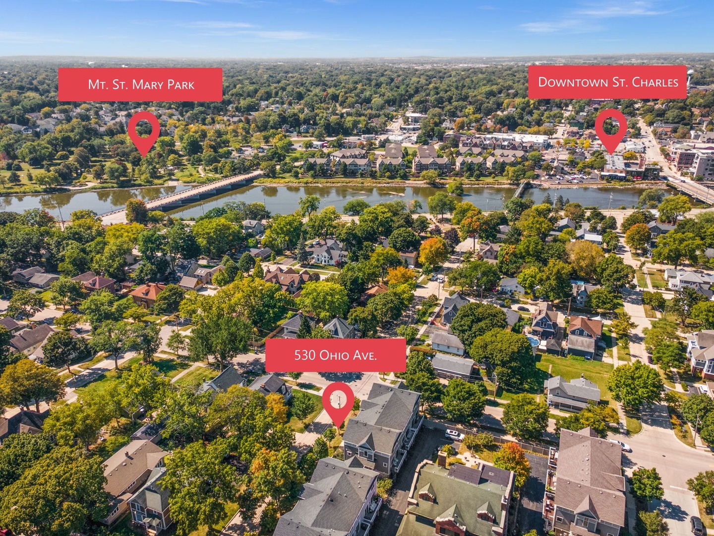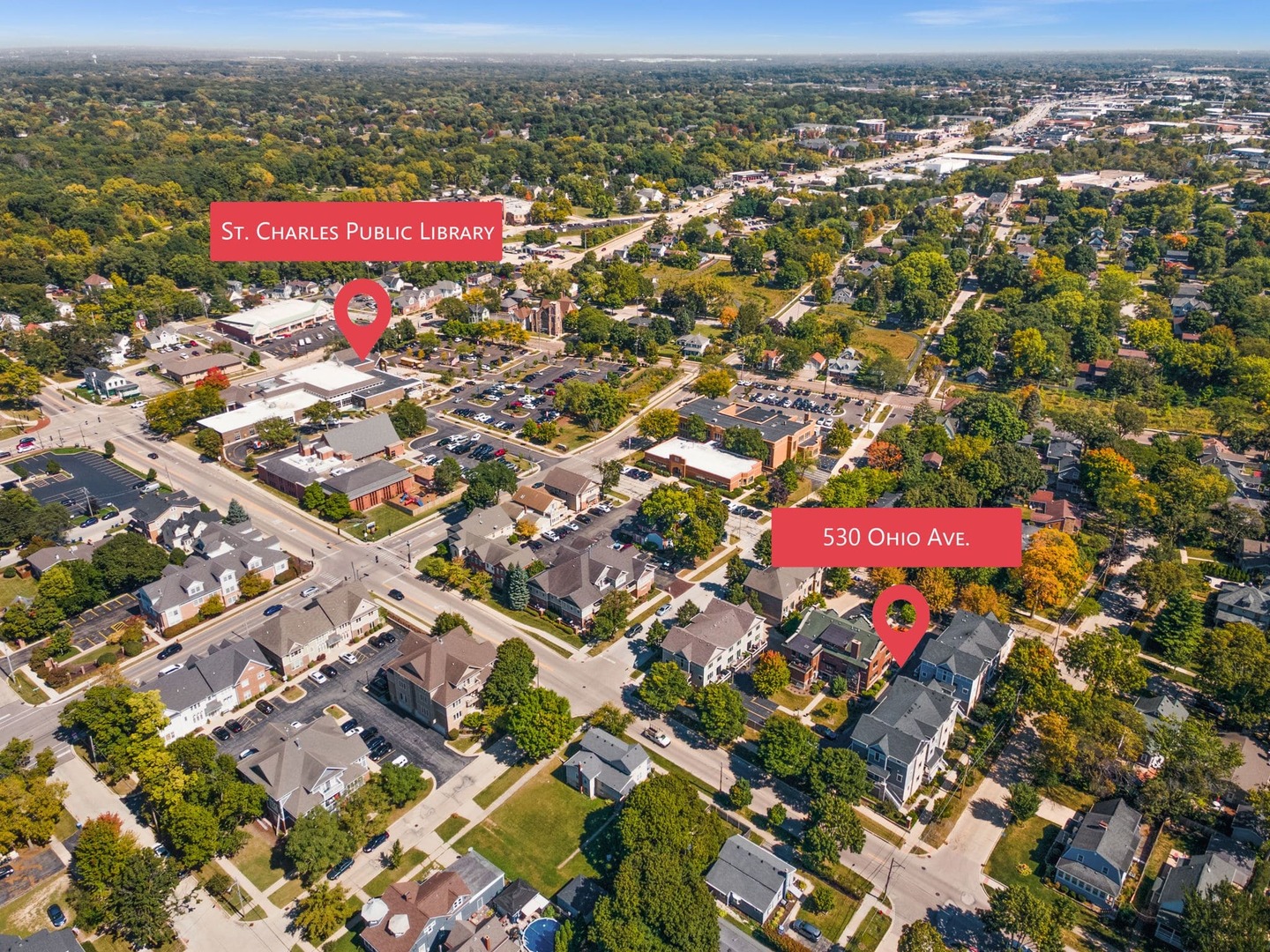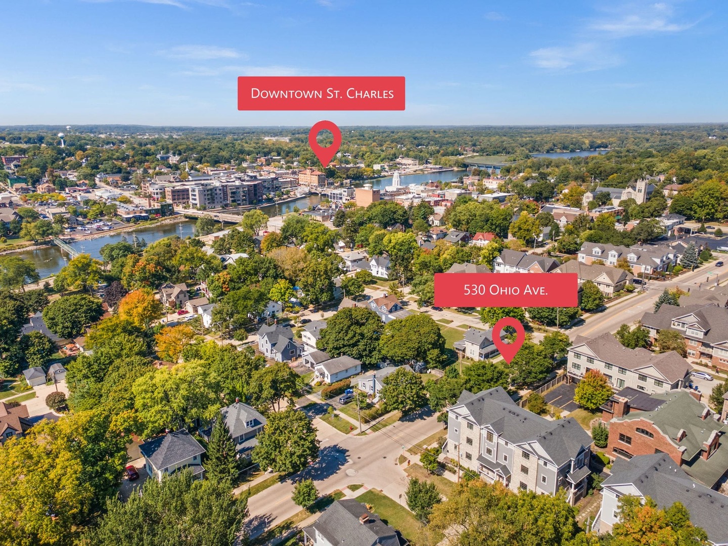 Welcome to luxury living in the heart of downtown St. Charles! This stunning 3-bedroom, 3.5-bath end-unit townhome in sought-after Heritage Green offers upscale, maintenance-free living just steps from the Fox River, bike paths, library, and all the shops and dining downtown has to offer. Commuters will love the quick access to the Geneva Metra station. Inside, you’ll find custom high-end finishes throughout, including hardwood and tile floors (no carpet!), automatic lighting in closets, and a tankless water heater. The gourmet eat-in kitchen boasts quartz countertops, glass tile backsplash, stainless smart appliances-including a whisper-quiet Bosch dishwasher-and a large island with breakfast bar. The adjacent dining room opens to a private deck, perfect for morning coffee or evening wine. The living room features an 80″ stacked stone accent wall with sleek electric fireplace. Need to work from home? A main-level office and powder room provide the ideal setup. Upstairs, the primary suite is a true retreat with volume ceilings, dual walk-in closets with custom organizers, and a spa-like bath with rainfall shower. The second bedroom also enjoys a private en suite, while the second-floor laundry adds convenience. Downstairs, the finished lower level with heated floors includes the third bedroom and full bath-ideal for guests or a flex space. Reverse osmosis system. Bonus: heated 2-car garage with epoxy floors, charming front porch, and fresh exterior paint. This one checks all the boxes for luxury, location, and lifestyle!