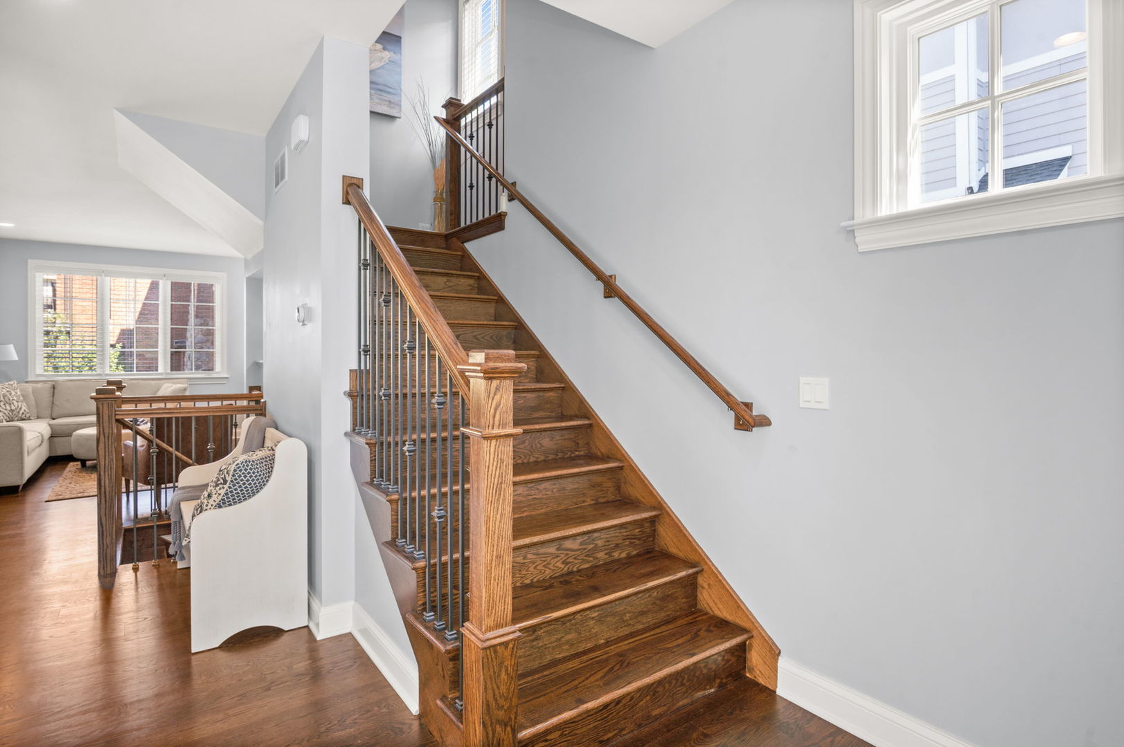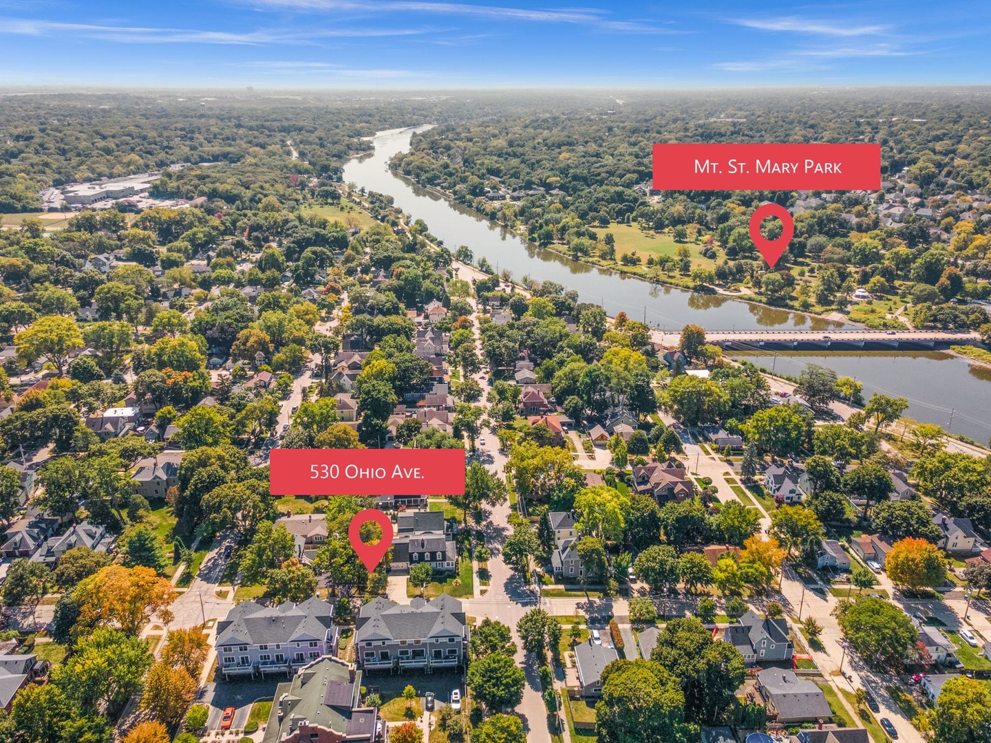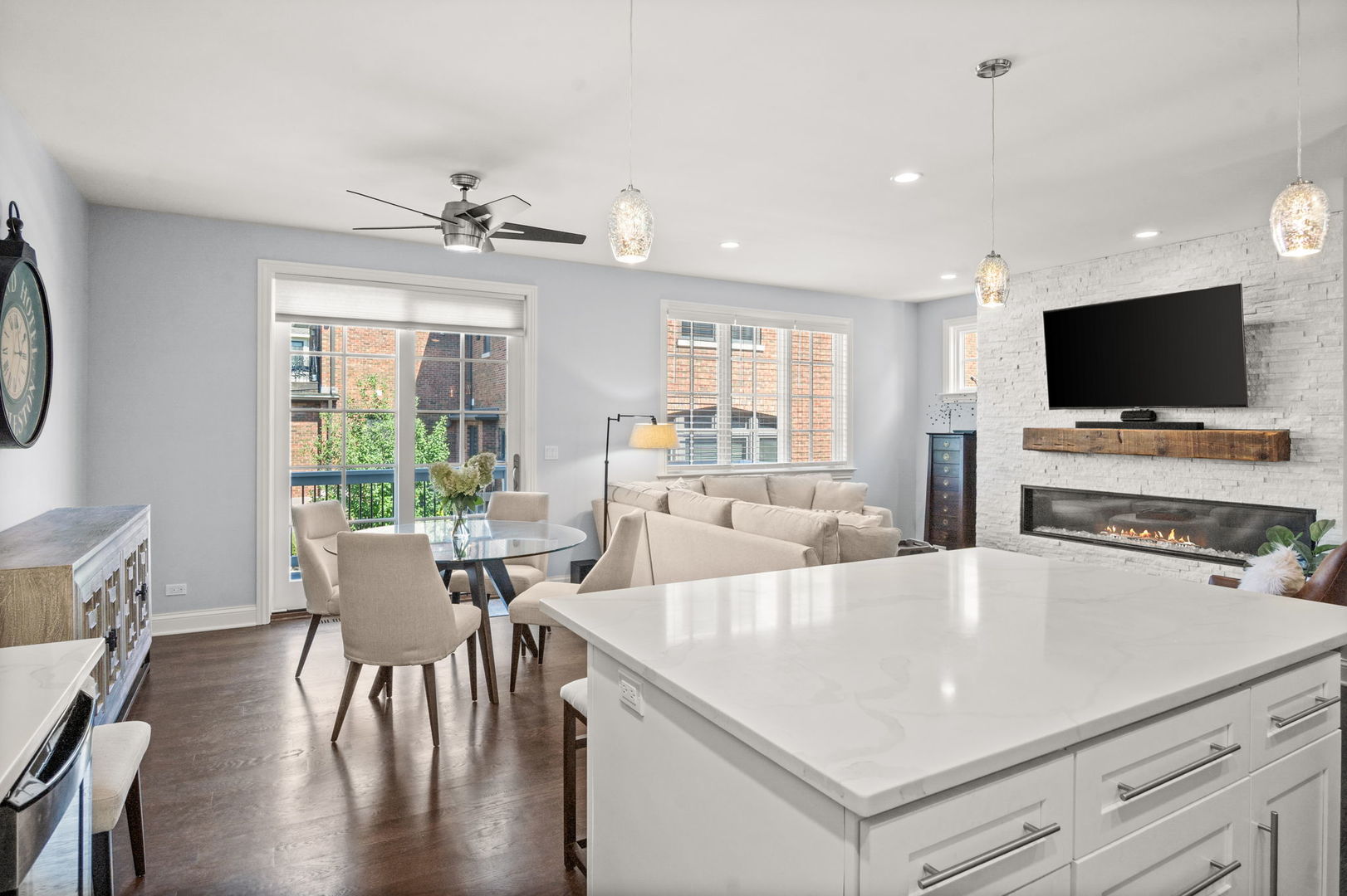 Welcome to luxury living in the heart of downtown St. Charles! This stunning 3-bedroom, 3.5-bath end-unit townhome in sought-after Heritage Green offers upscale, maintenance-free living just steps from the Fox River, bike paths, library, and all the shops and dining downtown has to offer. Commuters will love the quick access to the Geneva Metra station. Inside, you’ll find custom high-end finishes throughout, including hardwood and tile floors (no carpet!), automatic lighting in closets, and a tankless water heater. The gourmet eat-in kitchen boasts quartz countertops, glass tile backsplash, stainless smart appliances-including a whisper-quiet Bosch dishwasher-and a large island with breakfast bar. The adjacent dining room opens to a private deck, perfect for morning coffee or evening wine. The living room features an 80″ stacked stone accent wall with sleek electric fireplace. Need to work from home? A main-level office and powder room provide the ideal setup. Upstairs, the primary suite is a true retreat with volume ceilings, dual walk-in closets with custom organizers, and a spa-like bath with rainfall shower. The second bedroom also enjoys a private en suite, while the second-floor laundry adds convenience. Downstairs, the finished lower level with heated floors includes the third bedroom and full bath-ideal for guests or a flex space. Reverse osmosis system. Bonus: heated 2-car garage with epoxy floors, charming front porch, and fresh exterior paint. This one checks all the boxes for luxury, location, and lifestyle!