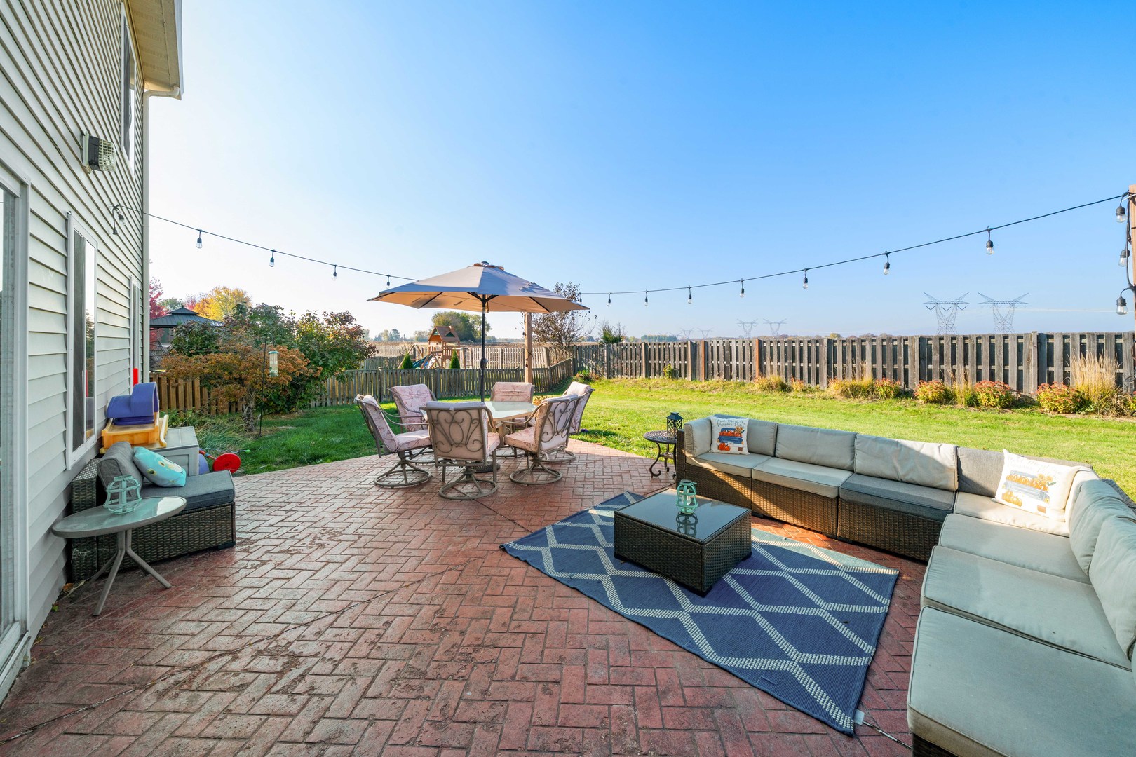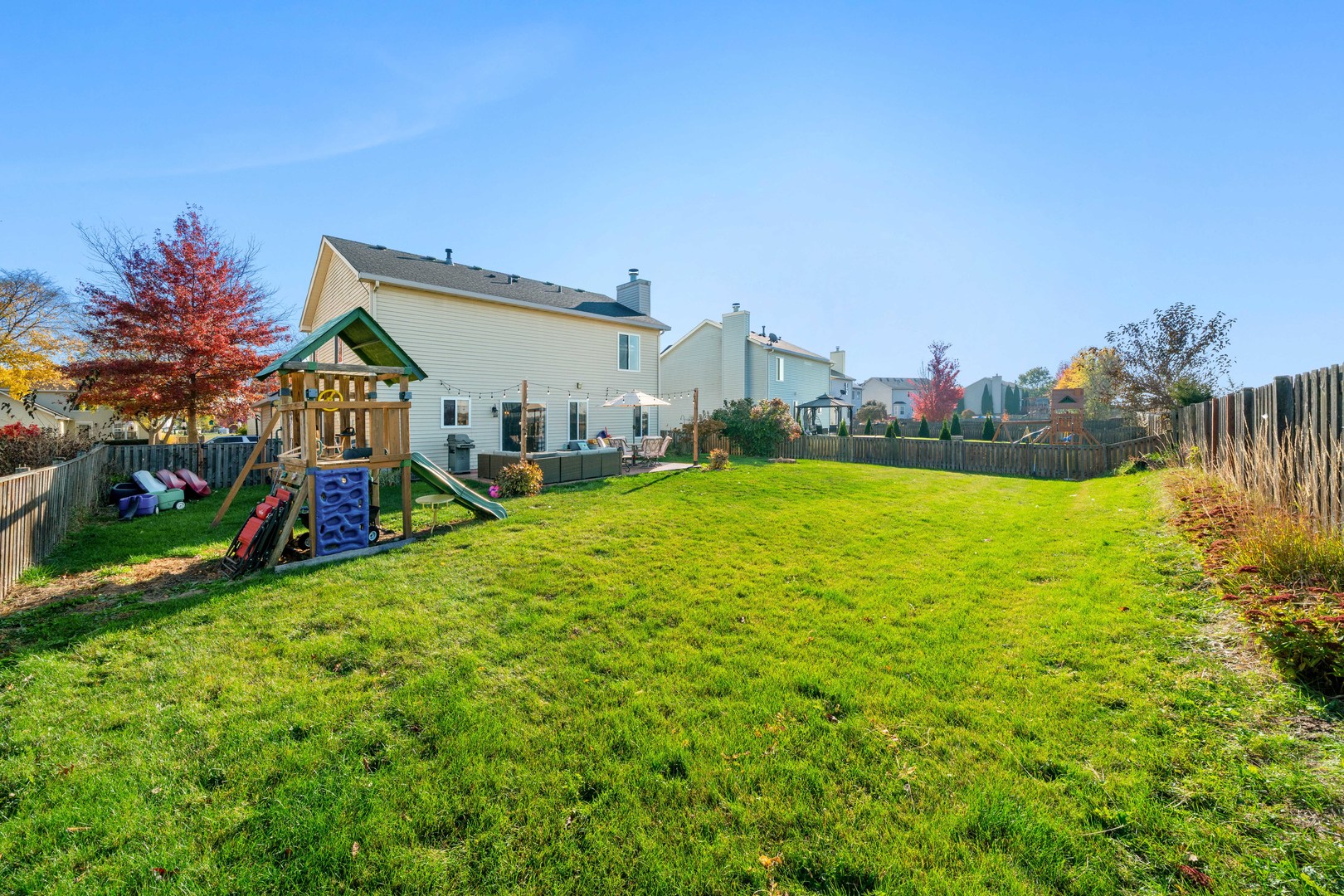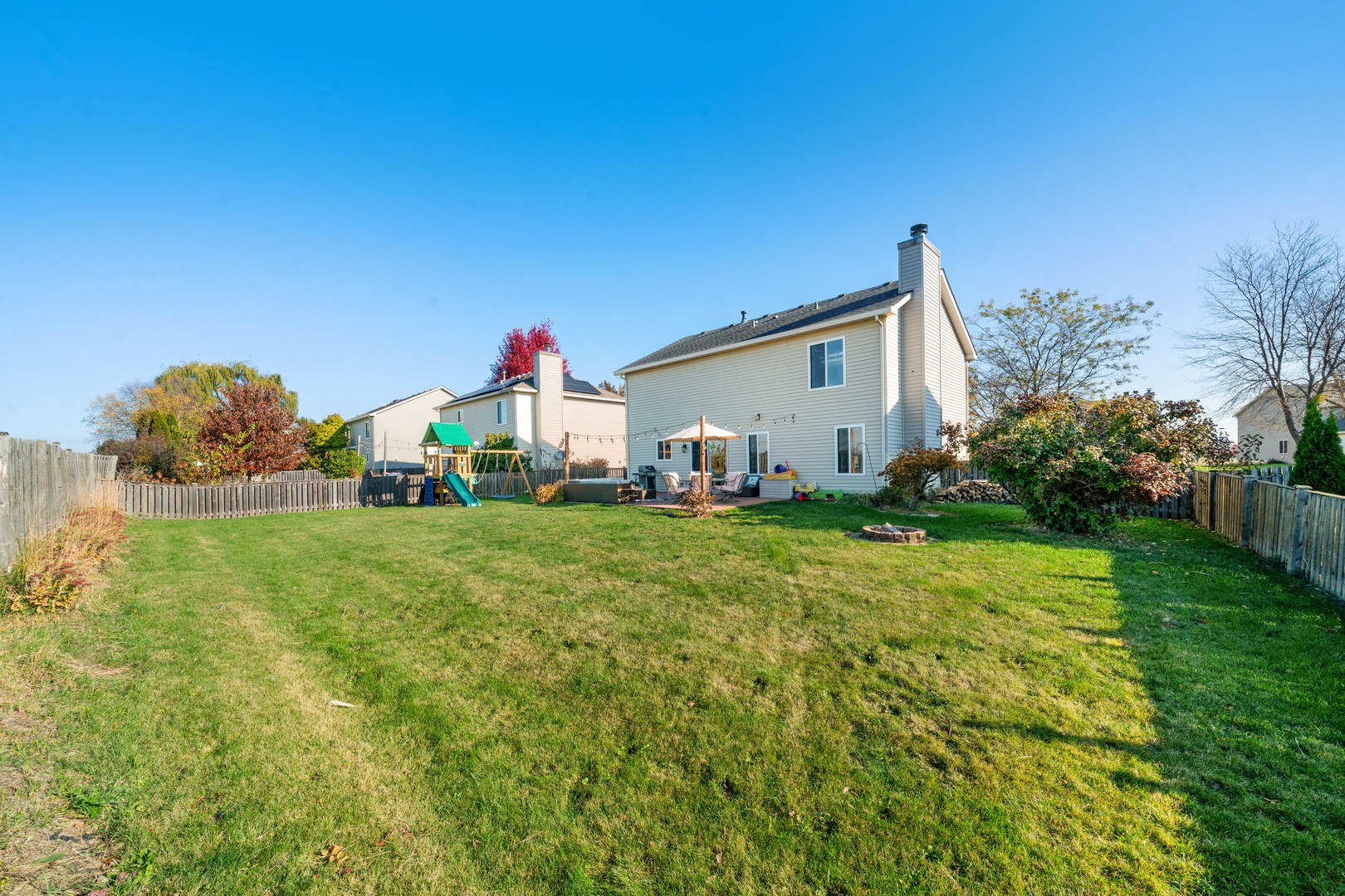 Welcome Home for the Holidays! Step into this spacious 2,072 sq. ft. two-story home featuring 4 generously sized bedrooms and 2.5 baths, perfectly designed for comfort and everyday living. The heart of the home is the inviting family room with a cozy fireplace-ideal for gathering with loved ones on chilly evenings. The open layout flows effortlessly into the kitchen and dining area, making entertaining a breeze. Upstairs, you’ll find four comfortable bedrooms, including a relaxing primary suite with plenty of space to unwind. Outside, enjoy a fully fenced yard that backs to an open field-offering privacy and peaceful views. A stamped concrete patio provides the perfect spot for weekend barbecues or a cup of coffee on crisp fall mornings. The two-car garage adds convenience and extra storage. The roof was replaced in 2023, the kitchen was freshened up with new light fixtures, a backsplash and flooring in the family room, livingroom and foyer in 2022. This home is waiting for you to make new memories just in time for the holidays. Don’t miss your chance to make this warm and welcoming house your new home!