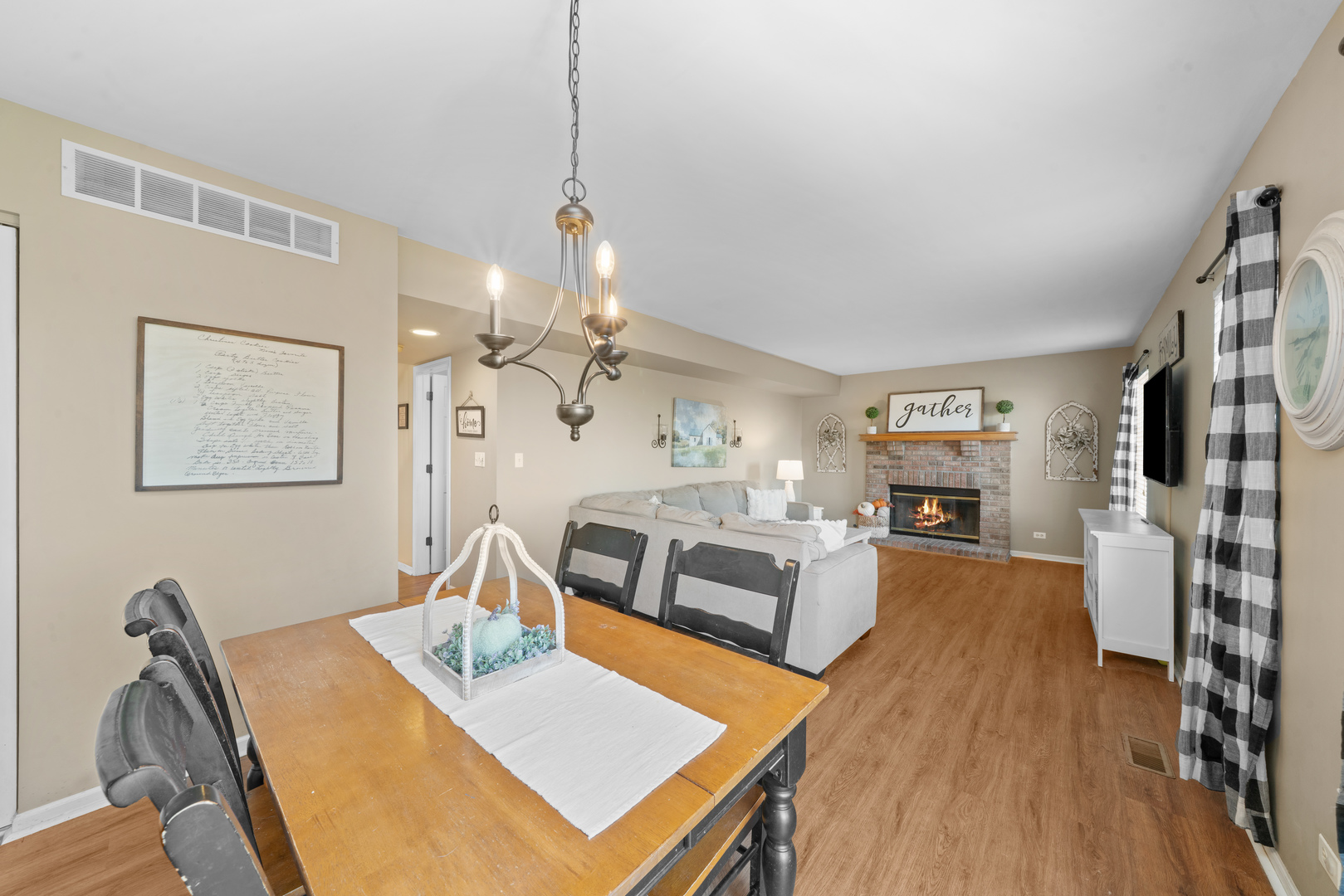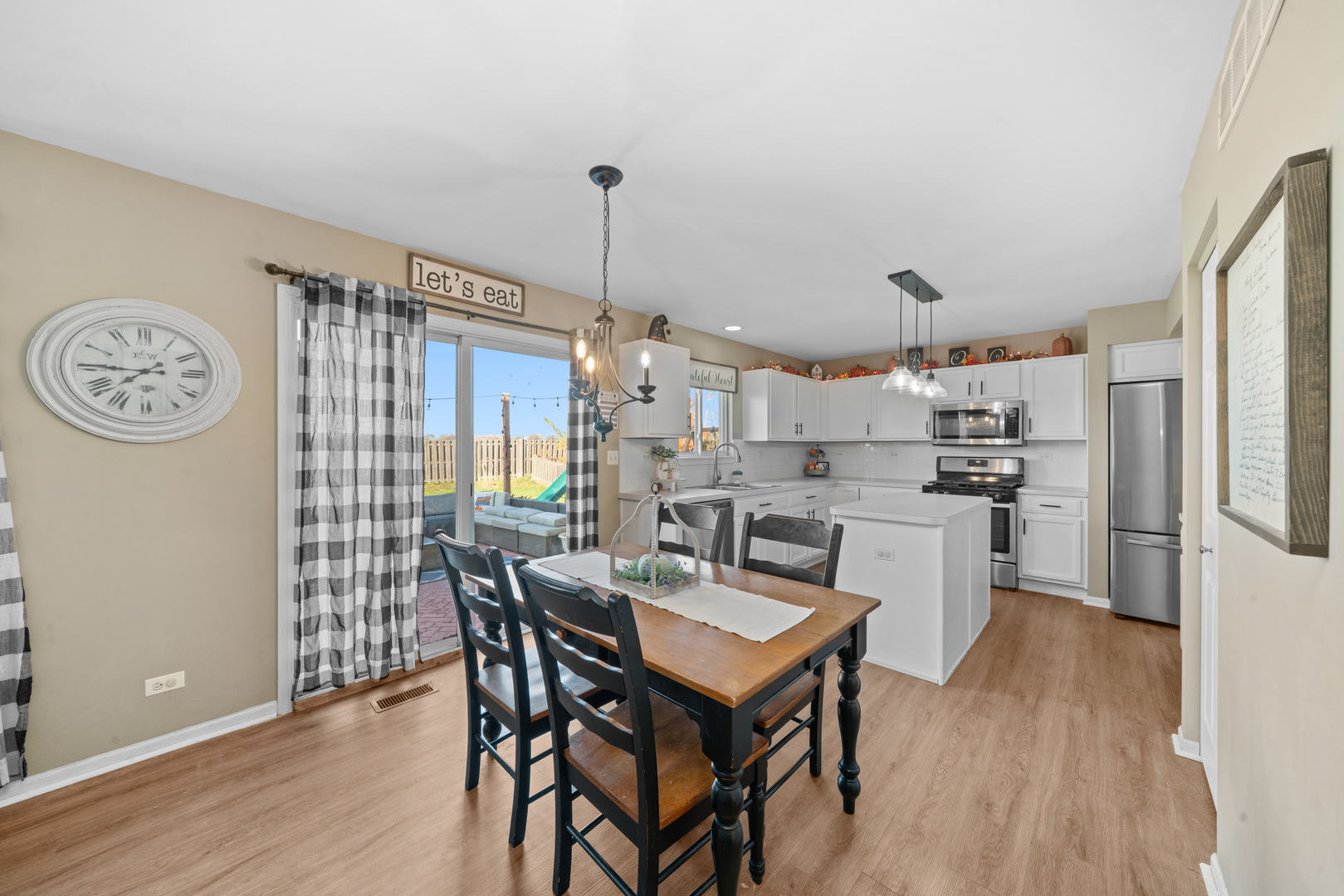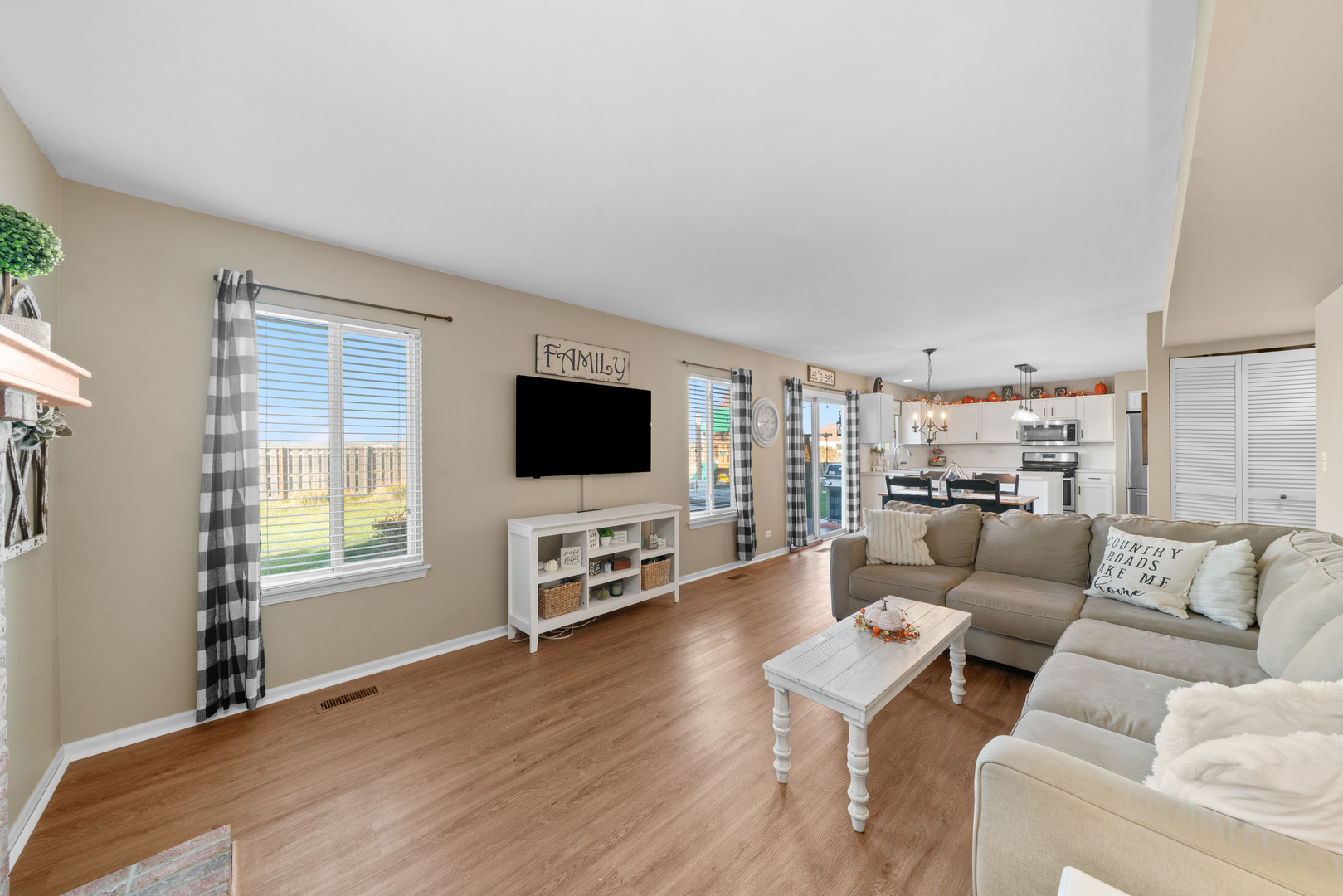 Welcome Home for the Holidays! Step into this spacious 2,072 sq. ft. two-story home featuring 4 generously sized bedrooms and 2.5 baths, perfectly designed for comfort and everyday living. The heart of the home is the inviting family room with a cozy fireplace-ideal for gathering with loved ones on chilly evenings. The open layout flows effortlessly into the kitchen and dining area, making entertaining a breeze. Upstairs, you’ll find four comfortable bedrooms, including a relaxing primary suite with plenty of space to unwind. Outside, enjoy a fully fenced yard that backs to an open field-offering privacy and peaceful views. A stamped concrete patio provides the perfect spot for weekend barbecues or a cup of coffee on crisp fall mornings. The two-car garage adds convenience and extra storage. The roof was replaced in 2023, the kitchen was freshened up with new light fixtures, a backsplash and flooring in the family room, livingroom and foyer in 2022. This home is waiting for you to make new memories just in time for the holidays. Don’t miss your chance to make this warm and welcoming house your new home!