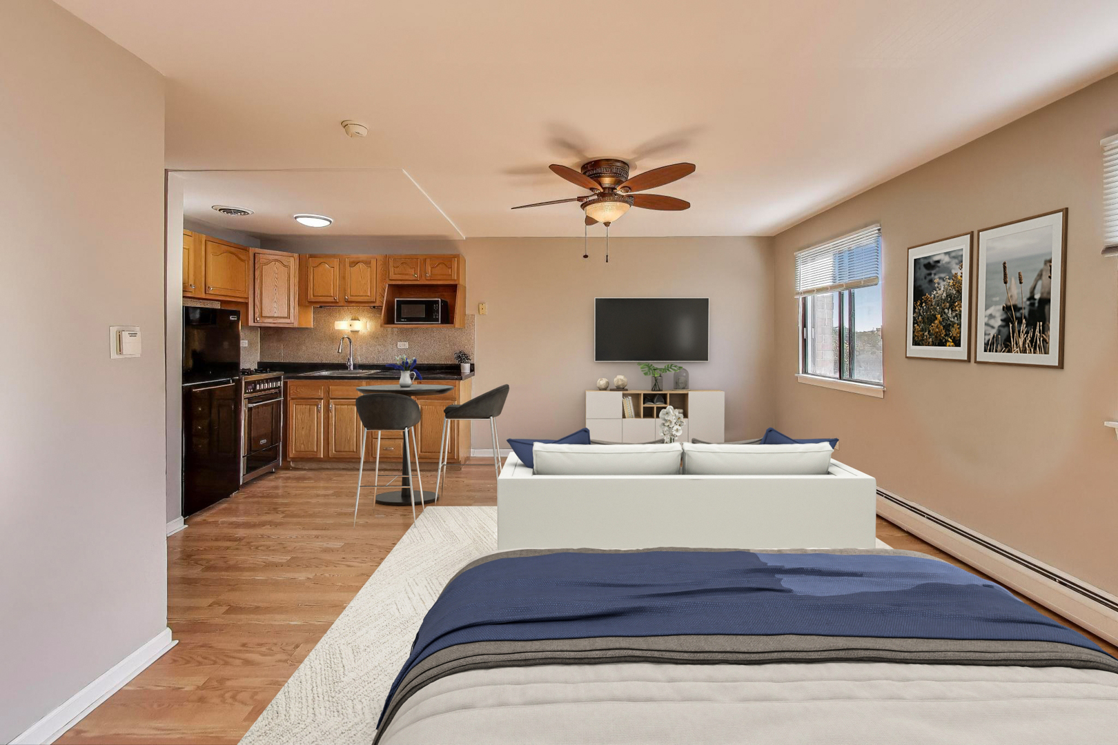 Step into this bright and inviting studio condo that is move-in ready! The updated bath and thoughtfully designed kitchen offer both style and function, with plenty of storage throughout. Enjoy resort-style living with access to a sparkling pool, tennis courts, and a fully equipped fitness center. Conveniently located near expressways, O’Hare, the Blue Line, shopping, and dining. Perfect for first-time buyers or investors seeking a fantastic rental opportunity. Exterior deeded parking and a storage spot is included in the price.