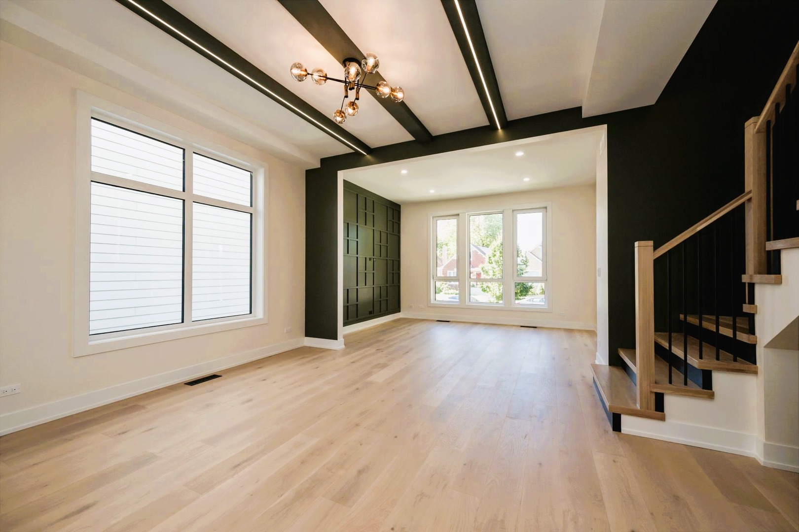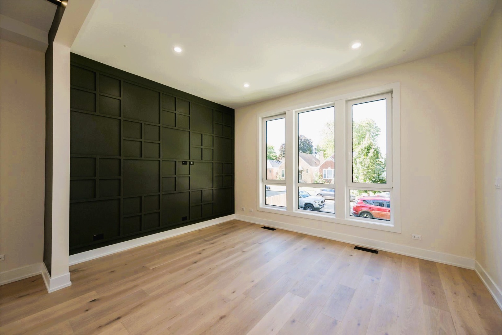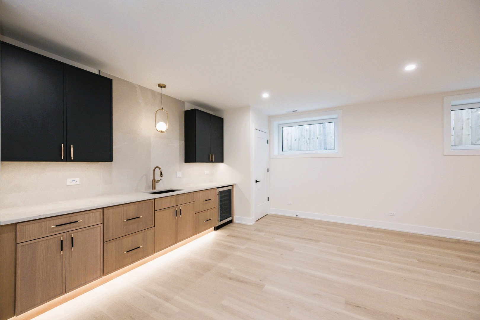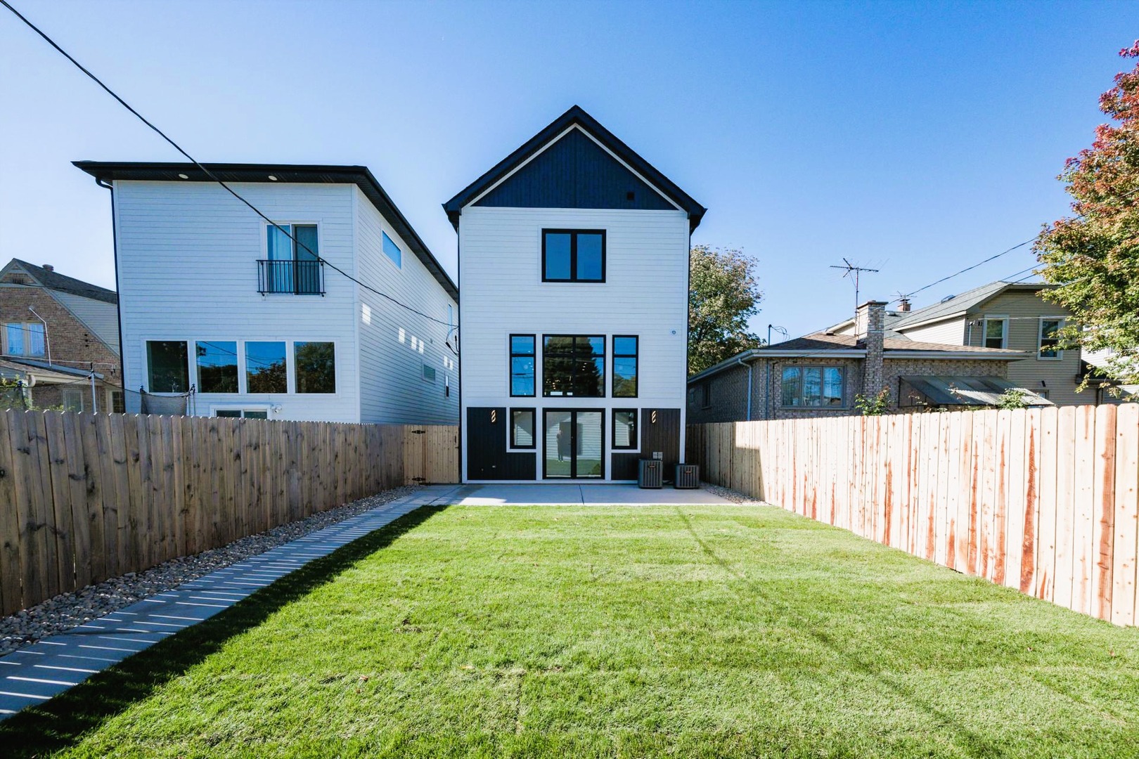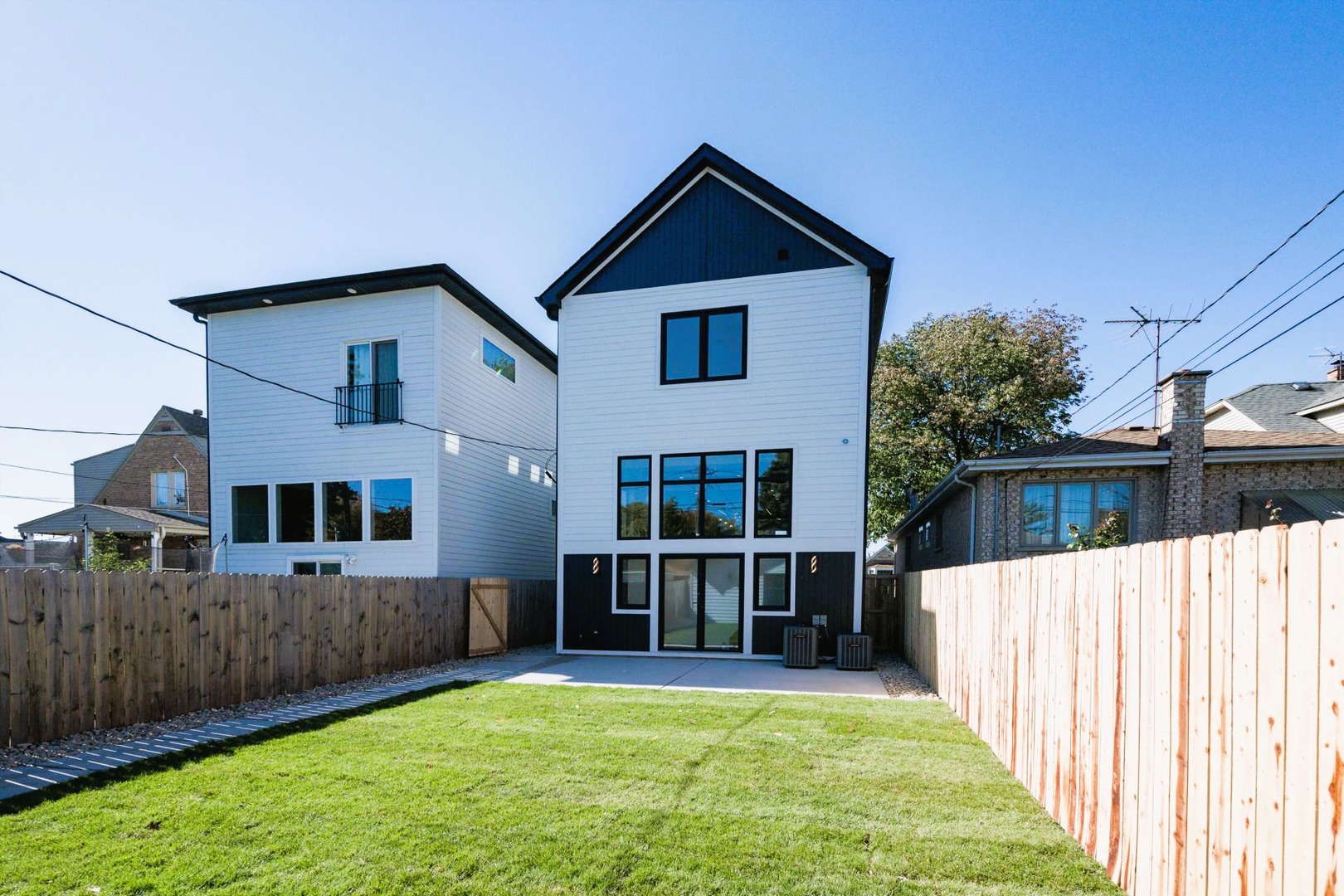 Introducing an extraordinary new construction home offering over 3,700 sq. ft. of luxurious living space in Chicago’s highly desirable Jefferson Park neighborhood-affectionately known as “The Gateway to Chicago.” Perfectly blending modern sophistication with everyday functionality, this exceptional three-level residence features 5 bedrooms, 3.5 baths, and a 2.5-car finished garage equipped for an electric car plug, all situated on a professionally landscaped 30’x153′ lot. The main and second levels showcase engineered hardwood flooring, soaring 10-ft ceilings, and a grand oak staircase with custom railings and metal balusters. The chef’s kitchen is a true showpiece with two-toned soft-close cabinetry, 60″ upper cabinets with glass displays, deep drawers, exotic quartz countertops, and a 10-ft island with seating for eight, complemented by high-end stainless steel appliances, double pantries, under-cabinet LED lighting, and pendant fixtures. The open floor plan flows into a bright living area with custom accent wall and triple-glazed Low-E Energy Star certified windows, an elegant dining space with a beamed LED-lit ceiling, and a family room centered around a floor-to-ceiling fireplace and coffered ceiling. Upstairs, the luxurious primary suite features a 14-ft vaulted ceiling, two walk-in closets, and a spa-inspired bath with a walk-in shower (low 3″ lip and bench), soaking tub, and 8-ft double vanity. Two additional bedrooms, a full bath, and a skylit hallway complete this level. The lower level, finished with Benton Blonde Luxury Vinyl Plank flooring and 8.7-ft ceilings, offers a spacious rec room, two bedrooms, full bath, and an impressive wet bar with 42″ tall cabinets, quartz counters, and ceiling-height backsplash. Additional features include spray foam insulation, triple-glazed tilt-in windows, two high-efficiency HVAC systems with humidifiers, 400-amp electrical service, RING doorbell, and solid-core doors. Exterior amenities include floating metal and concrete steps, an 11’x22′ concrete patio with gas line for grill, new sod, privacy fence, and architectural LED strip lighting accenting both interior and exterior spaces. Ideally located near Austin-Foster Park, Metra, CTA, top-rated schools, shopping, and dining, this home exemplifies contemporary luxury and timeless elegance in one of Chicago’s most sought-after communities.