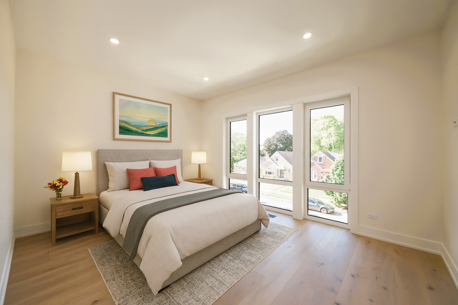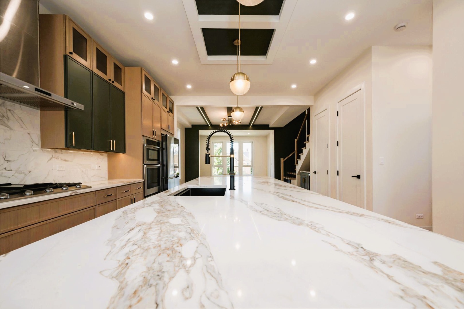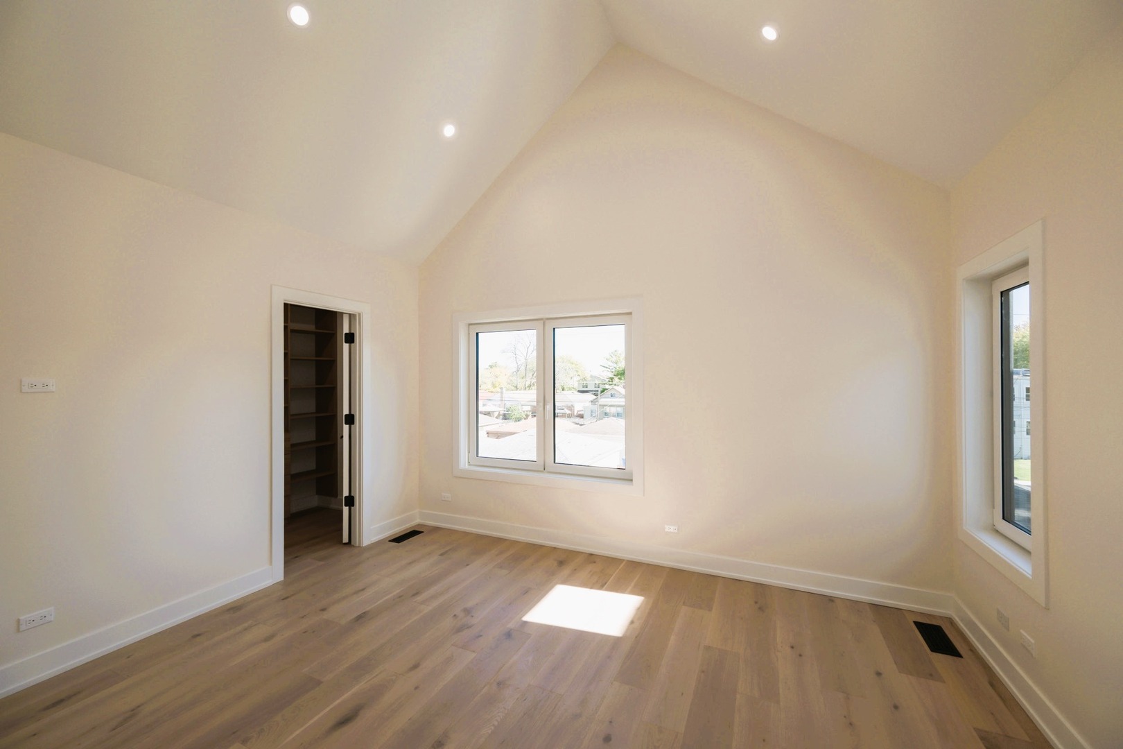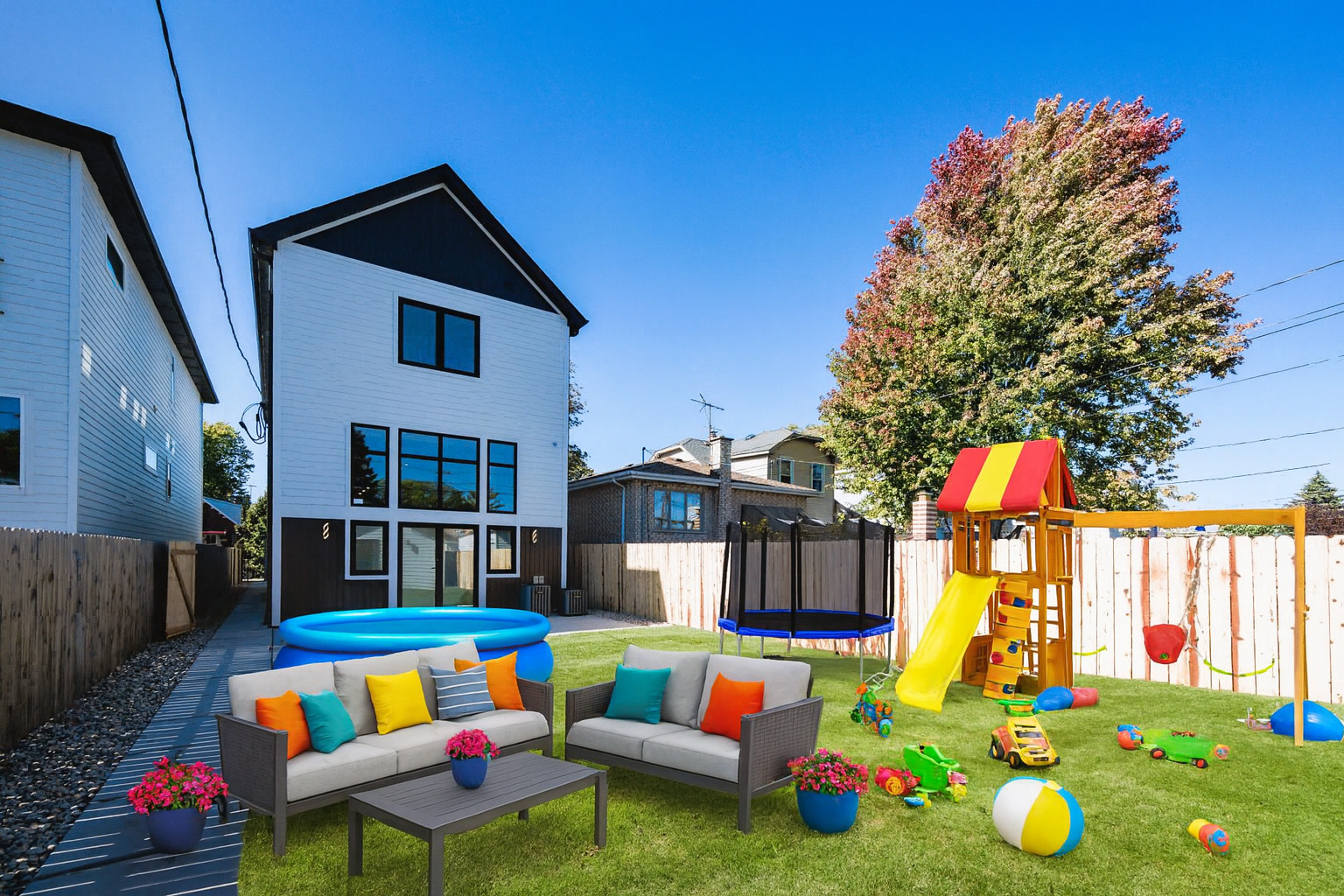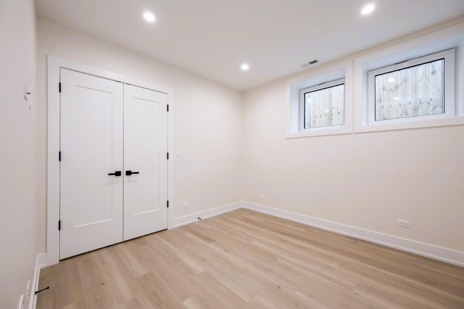 Introducing an extraordinary new construction home offering over 3,700 sq. ft. of luxurious living space in Chicago’s highly desirable Jefferson Park neighborhood-affectionately known as “The Gateway to Chicago.” Perfectly blending modern sophistication with everyday functionality, this exceptional three-level residence features 5 bedrooms, 3.5 baths, and a 2.5-car finished garage equipped for an electric car plug, all situated on a professionally landscaped 30’x153′ lot. The main and second levels showcase engineered hardwood flooring, soaring 10-ft ceilings, and a grand oak staircase with custom railings and metal balusters. The chef’s kitchen is a true showpiece with two-toned soft-close cabinetry, 60″ upper cabinets with glass displays, deep drawers, exotic quartz countertops, and a 10-ft island with seating for eight, complemented by high-end stainless steel appliances, double pantries, under-cabinet LED lighting, and pendant fixtures. The open floor plan flows into a bright living area with custom accent wall and triple-glazed Low-E Energy Star certified windows, an elegant dining space with a beamed LED-lit ceiling, and a family room centered around a floor-to-ceiling fireplace and coffered ceiling. Upstairs, the luxurious primary suite features a 14-ft vaulted ceiling, two walk-in closets, and a spa-inspired bath with a walk-in shower (low 3″ lip and bench), soaking tub, and 8-ft double vanity. Two additional bedrooms, a full bath, and a skylit hallway complete this level. The lower level, finished with Benton Blonde Luxury Vinyl Plank flooring and 8.7-ft ceilings, offers a spacious rec room, two bedrooms, full bath, and an impressive wet bar with 42″ tall cabinets, quartz counters, and ceiling-height backsplash. Additional features include spray foam insulation, triple-glazed tilt-in windows, two high-efficiency HVAC systems with humidifiers, 400-amp electrical service, RING doorbell, and solid-core doors. Exterior amenities include floating metal and concrete steps, an 11’x22′ concrete patio with gas line for grill, new sod, privacy fence, and architectural LED strip lighting accenting both interior and exterior spaces. Ideally located near Austin-Foster Park, Metra, CTA, top-rated schools, shopping, and dining, this home exemplifies contemporary luxury and timeless elegance in one of Chicago’s most sought-after communities.