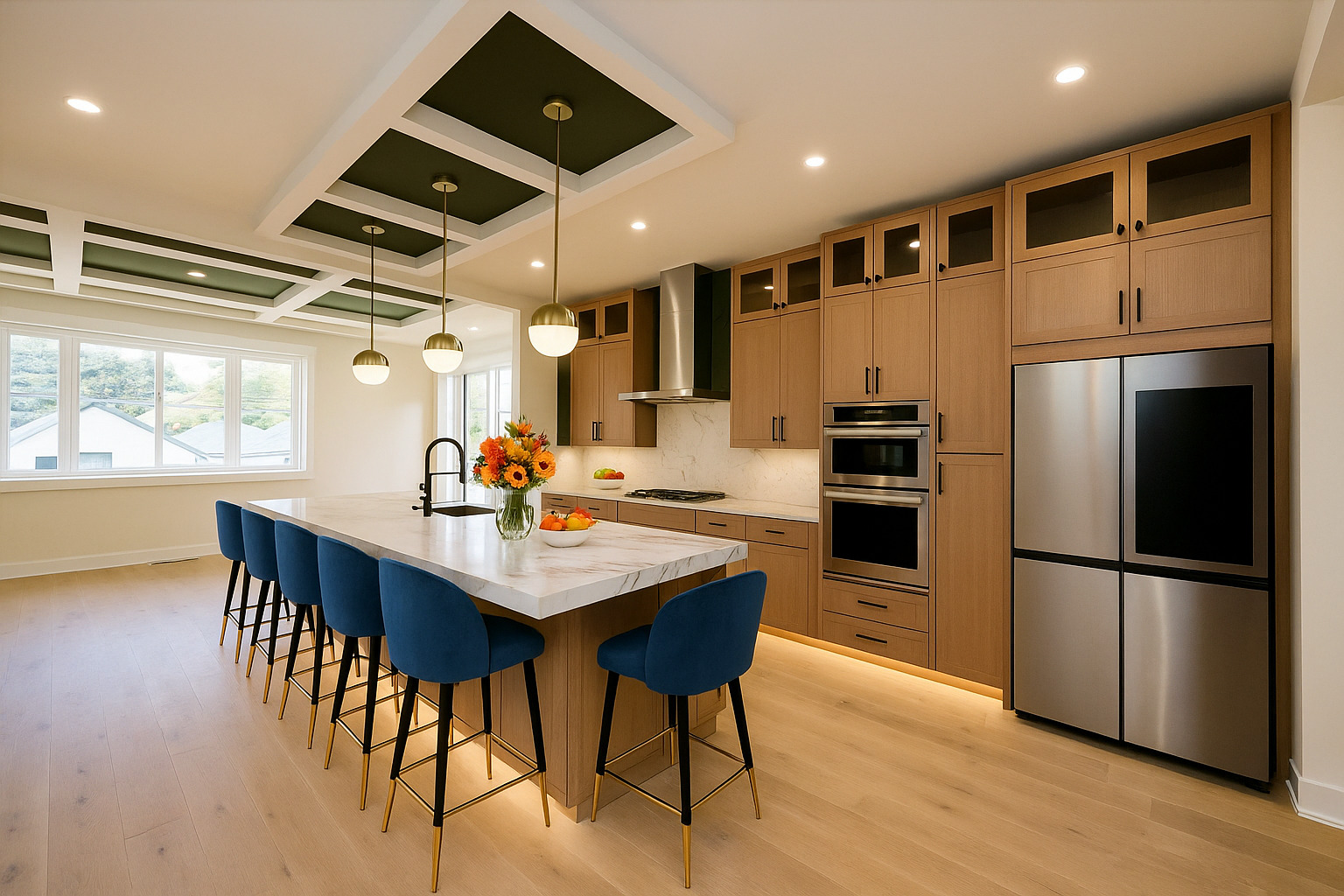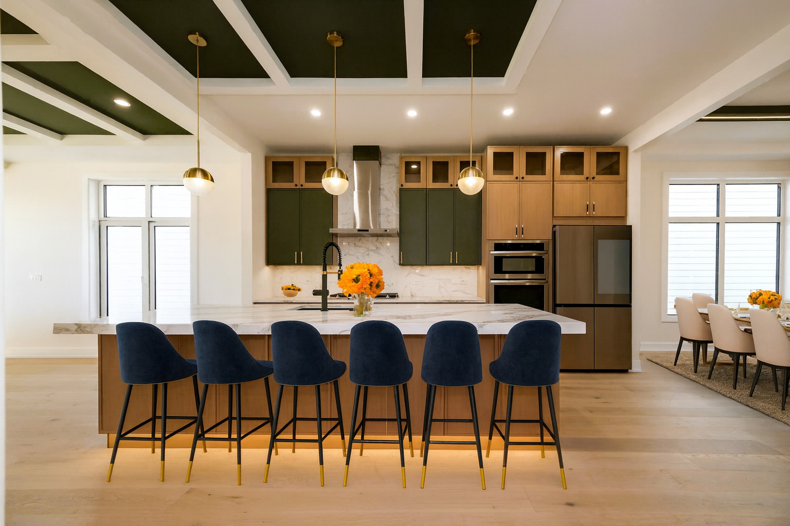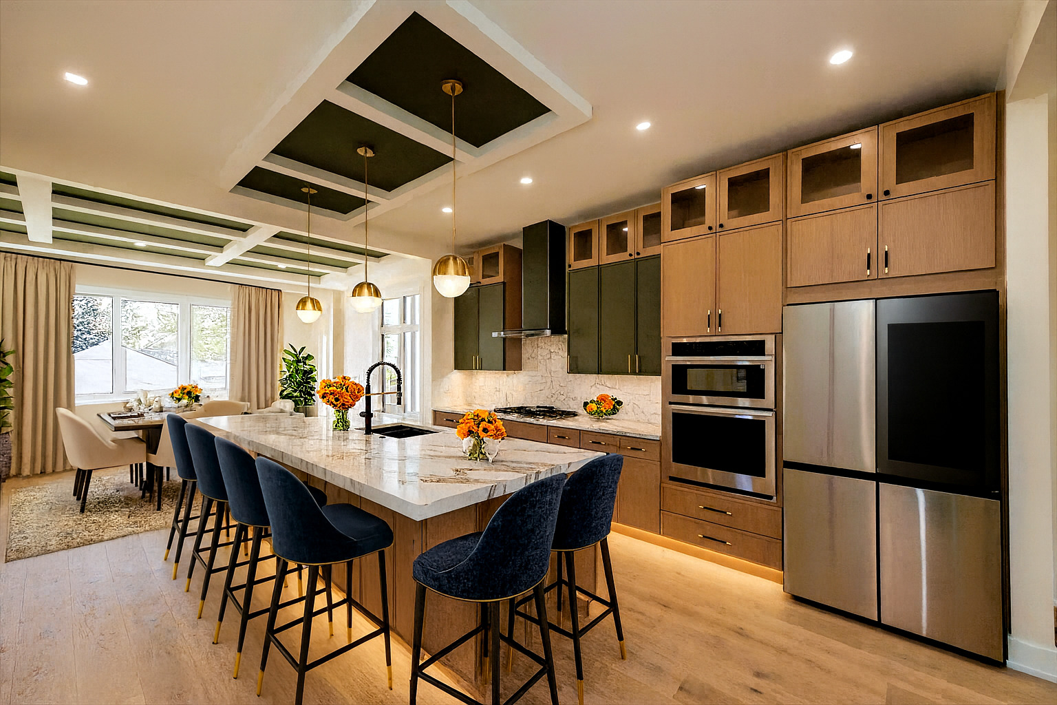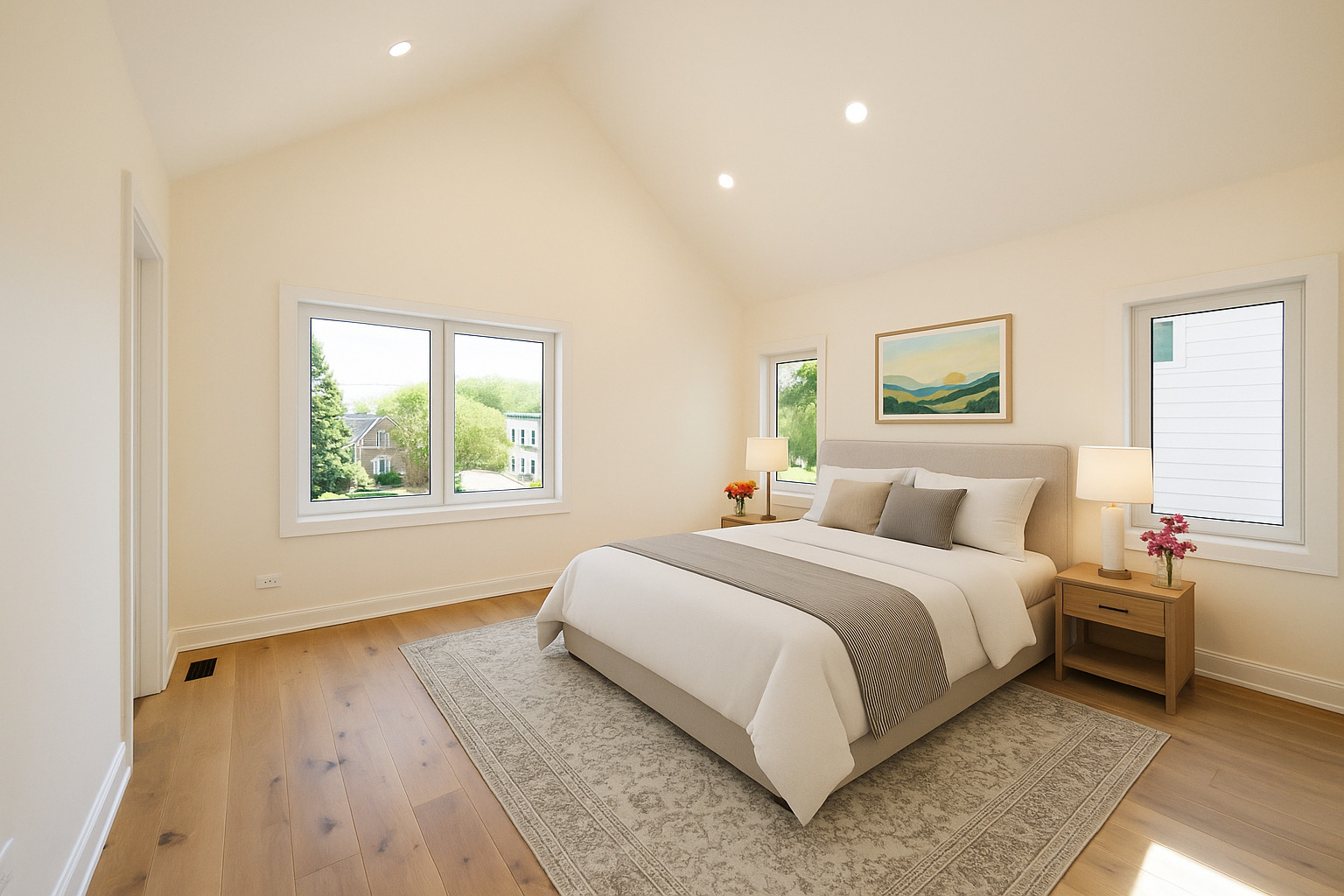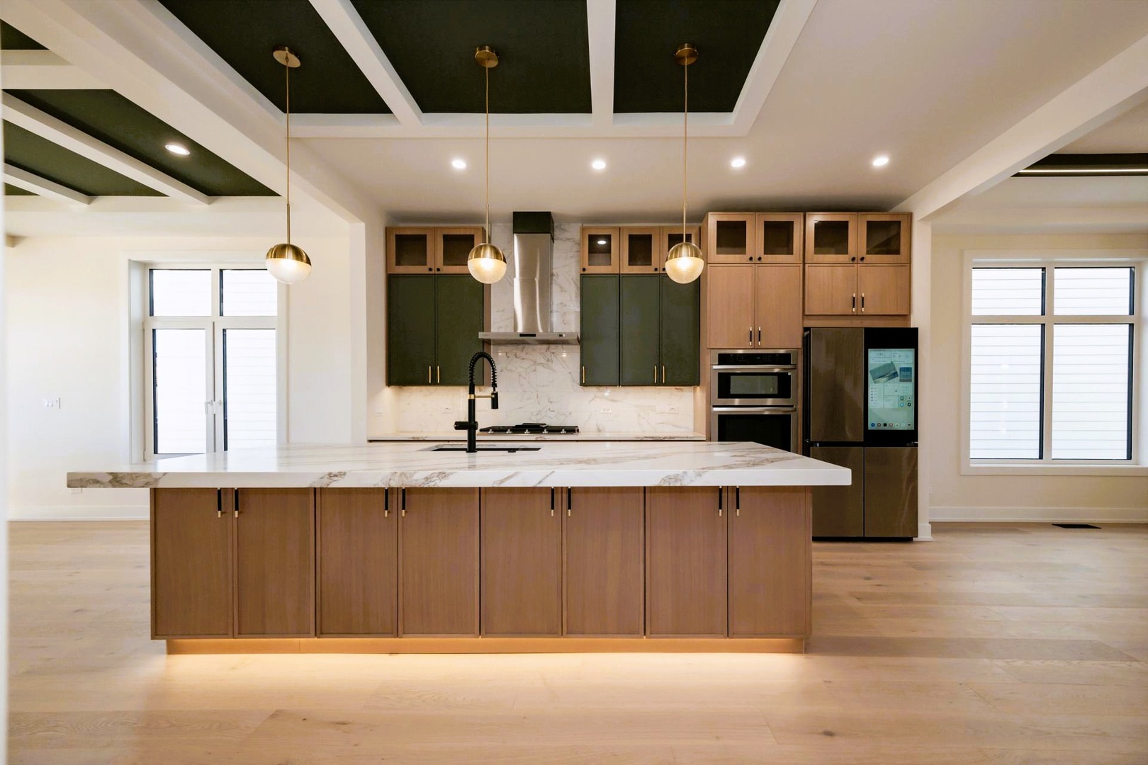 Introducing an extraordinary new construction home offering over 3,700 sq. ft. of luxurious living space in Chicago’s highly desirable Jefferson Park neighborhood-affectionately known as “The Gateway to Chicago.” Perfectly blending modern sophistication with everyday functionality, this exceptional three-level residence features 5 bedrooms, 3.5 baths, and a 2.5-car finished garage equipped for an electric car plug, all situated on a professionally landscaped 30’x153′ lot. The main and second levels showcase engineered hardwood flooring, soaring 10-ft ceilings, and a grand oak staircase with custom railings and metal balusters. The chef’s kitchen is a true showpiece with two-toned soft-close cabinetry, 60″ upper cabinets with glass displays, deep drawers, exotic quartz countertops, and a 10-ft island with seating for eight, complemented by high-end stainless steel appliances, double pantries, under-cabinet LED lighting, and pendant fixtures. The open floor plan flows into a bright living area with custom accent wall and triple-glazed Low-E Energy Star certified windows, an elegant dining space with a beamed LED-lit ceiling, and a family room centered around a floor-to-ceiling fireplace and coffered ceiling. Upstairs, the luxurious primary suite features a 14-ft vaulted ceiling, two walk-in closets, and a spa-inspired bath with a walk-in shower (low 3″ lip and bench), soaking tub, and 8-ft double vanity. Two additional bedrooms, a full bath, and a skylit hallway complete this level. The lower level, finished with Benton Blonde Luxury Vinyl Plank flooring and 8.7-ft ceilings, offers a spacious rec room, two bedrooms, full bath, and an impressive wet bar with 42″ tall cabinets, quartz counters, and ceiling-height backsplash. Additional features include spray foam insulation, triple-glazed tilt-in windows, two high-efficiency HVAC systems with humidifiers, 400-amp electrical service, RING doorbell, and solid-core doors. Exterior amenities include floating metal and concrete steps, an 11’x22′ concrete patio with gas line for grill, new sod, privacy fence, and architectural LED strip lighting accenting both interior and exterior spaces. Ideally located near Austin-Foster Park, Metra, CTA, top-rated schools, shopping, and dining, this home exemplifies contemporary luxury and timeless elegance in one of Chicago’s most sought-after communities.