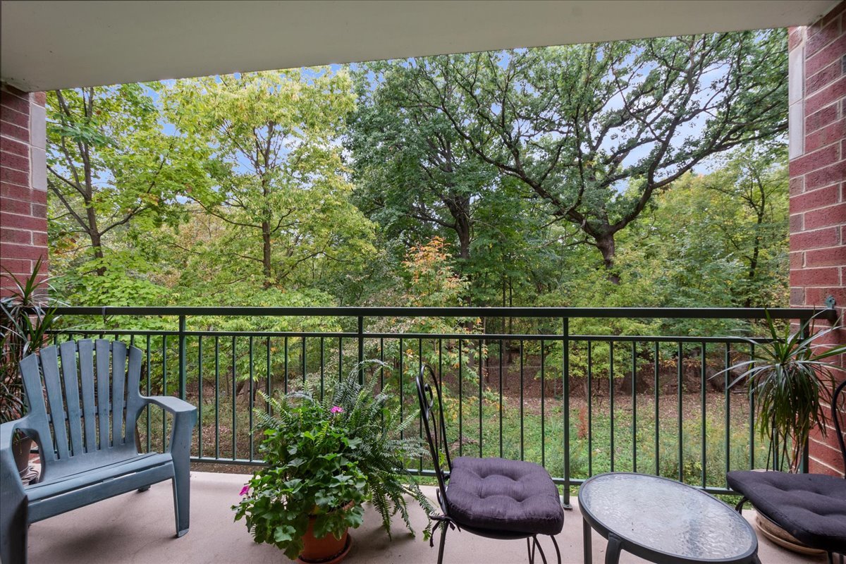 The Glenmoor–The largest 2 bedroom, 2 full bath unit at 1,754 square feet. The winding entrance road leads to the magnificent setting surrounded by the forest preserve and parks. From this corner unit you can enjoy the beautiful and tranquil forest persevere from your covered, private balcony. The balcony has plenty of space for table, chairs and plants. There is also ample space for a kitchen table and chairs in the eat-in area of the kitchen. The unit has a sizable primary bathroom and primary bedroom closet. In-unit laundry room with side-by-side washer, dryer and sink. Elevator building. Assigned, heated parking space in the building along with a storage room next to the parking space. Additional exterior parking is also available. Minutes from shopping and 90/94 expressways. New roof in 2021. Air conditioning compressor/condenser new in 2021. The HOA fee includes heat, gas, water, basic cable/internet, common insurance, scavenger, snow removal and landscaping. Radiant heat. Flexicore construction. Pet friendly. Professionally managed.