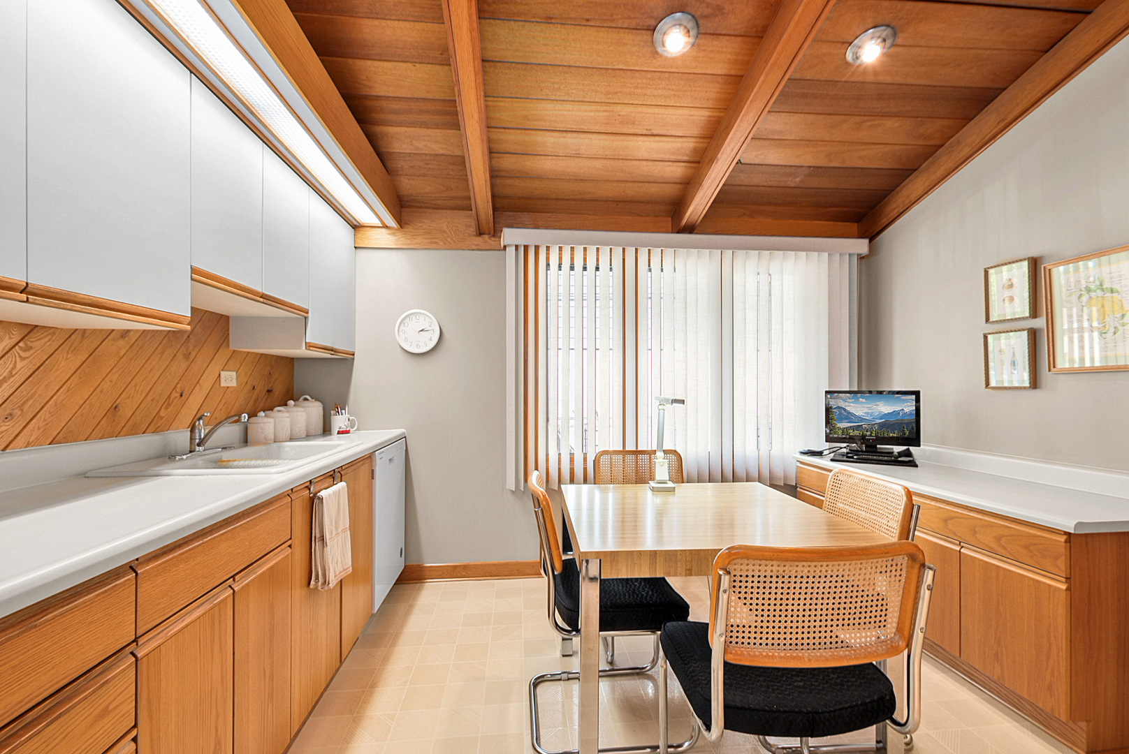 This Incredible, One of a Kind Oak Lawn Home is on the market for the first time in nearly 60 years! Step into Timeless Mid-Century Style in this warm and inviting living and dining area. Rich wood-beamed ceilings, a dramatic floor-to-ceiling brick accent wall with marble fireplace, and expansive picture windows create an open, airy feel while flooding the space with natural light. The thoughtful design blends comfort and sophistication, featuring clean architectural lines and original wood finishes. Perfect for both relaxing and entertaining, this beautifully preserved space showcases the best of mid-century craftsmanship and charm. The main level also includes an updated powder room with marble tile floors and vanity, separate den and home office. Three spacious bedrooms and laundry room are located on the 2nd level. Primary suite has a full bathroom and dual closets. Partial basement is unfinished, awaiting your ideas! Two car attached garage. Many newer mechanicals including ALL Windows (2017), Roof (2019), Water Heater (2019), HVAC (2023). Located within School District 123 boundaries (Sward) and in close proximity to Saint Linus School. This is an Incredible Value and a Once in a Lifetime Opportunity!