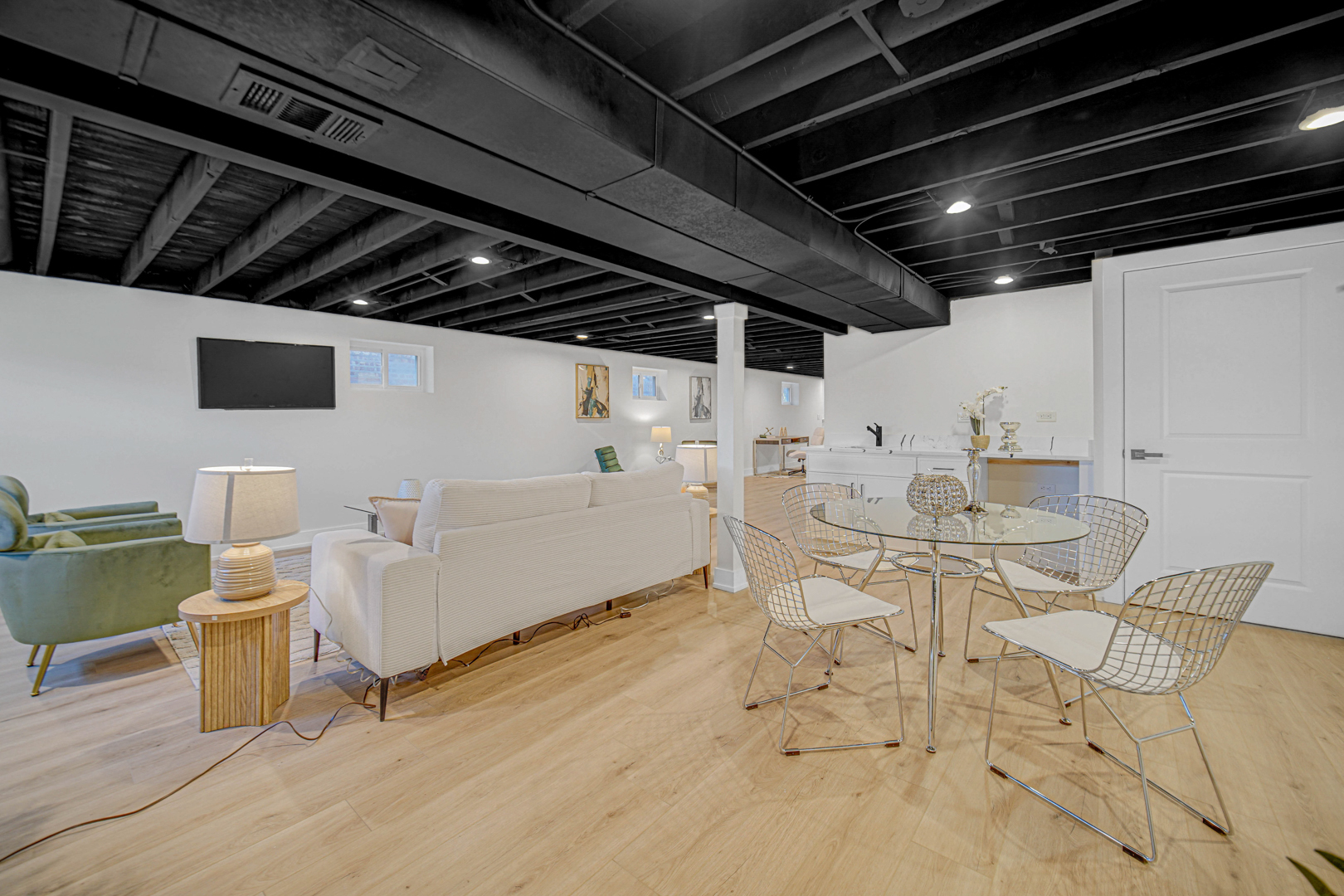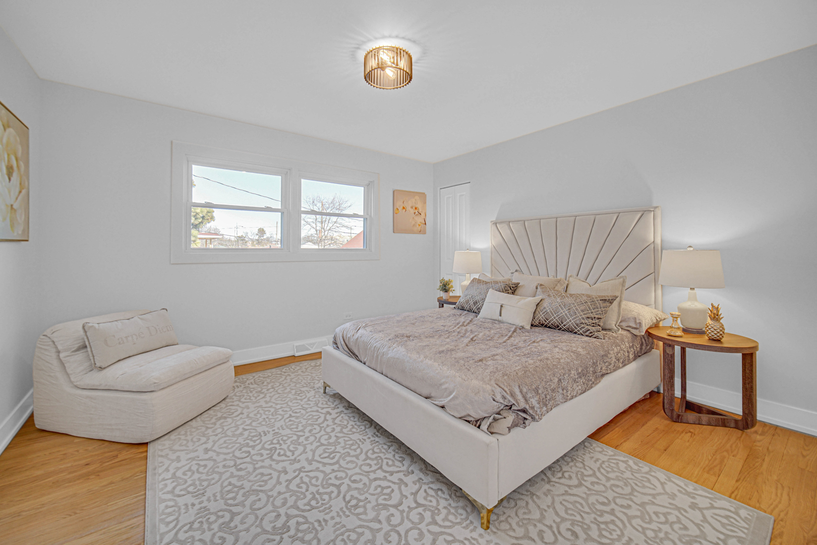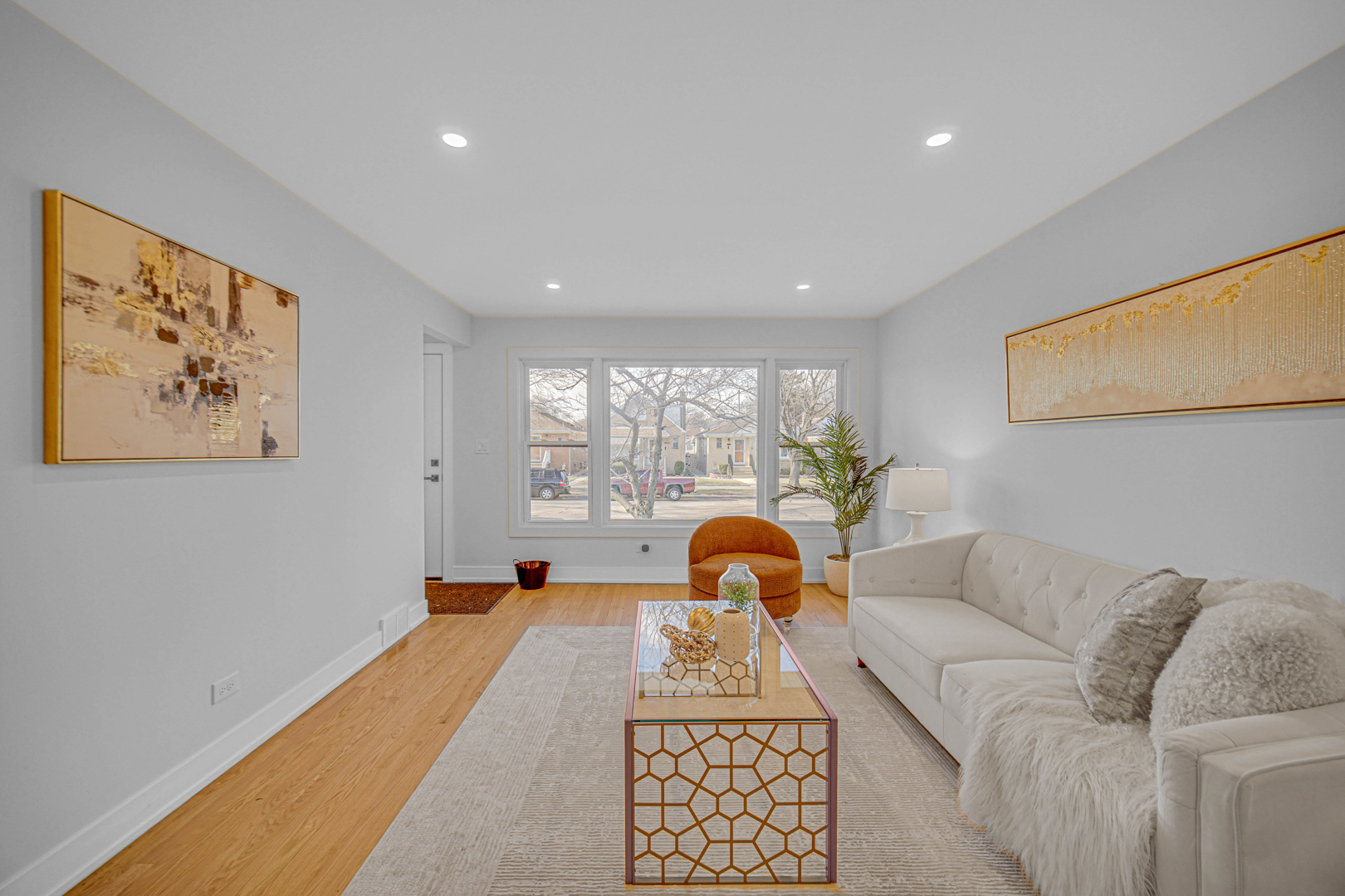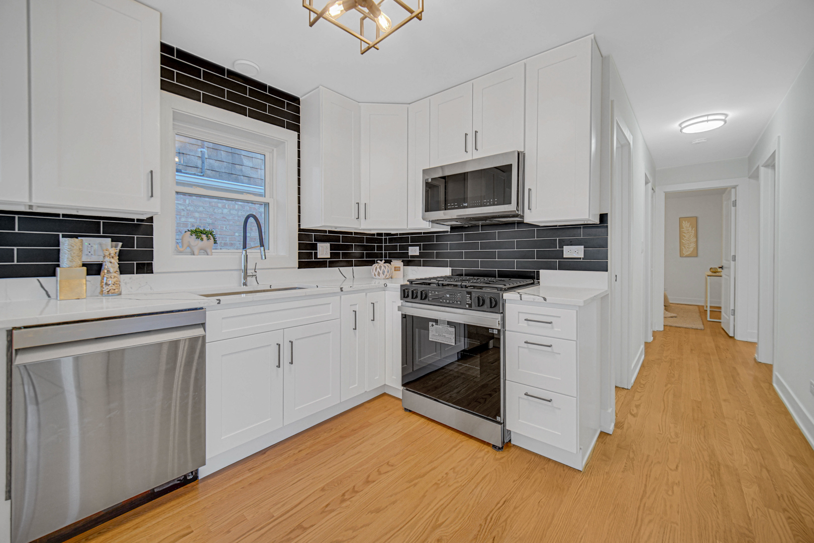 Exceptional Opportunity – Sun-Drenched Ranch! This beautifully rehabbed ranch-style home features a bright, open-concept layout-perfect for both everyday living and entertaining. Thoughtfully updated throughout, this home includes: New plumbing, hot water tank, and 100-amp electrical service Energy-efficient windows, new interior & exterior doors Gleaming hardwood floors throughout Gourmet kitchen with 42″ white soft-close cabinets, quartz countertops, and premium Samsung appliances Stylishly updated bathrooms with modern tilework and fixtures The full finished basement offers a spacious rec room, additional bedroom, full bath, wet bar and a large laundry room with ample storage. Enjoy outdoor living in the nice-sized backyard and take advantage of the oversized 2.5-car garage.