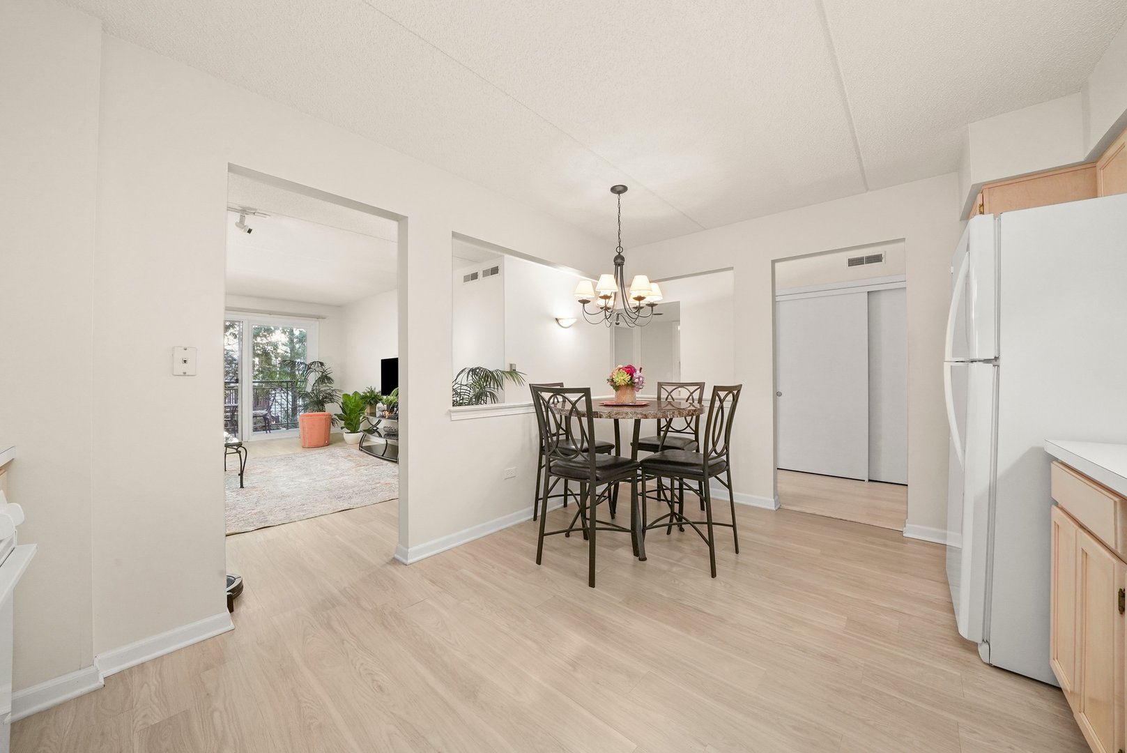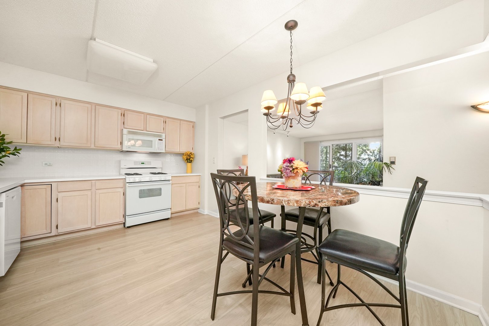 Welcome to this inviting 2-bedroom, 1-bath condo at Rivers Edge, offering a perfect blend of comfort and convenience in a serene, natural setting located next to LaBagh Woods. Enjoy spacious bedrooms, an open living area, and a large private balcony ideal for relaxing or entertaining. The home features an in-unit washer and dryer, heated indoor parking and a private storage room conveniently located next to the parking space. Assessments cover heat, water, gas, parking, common insurance, TV/cable, internet, exterior maintenance, lawn care, scavenger, and snow removal, making life here both comfortable and convenient. With easy access to the expressway and just steps from shopping, grocery stores and scenic trails, this condo combines quiet retreat-style living with everyday practicality. Experience the best of city living surrounded by nature at Rivers Edge.