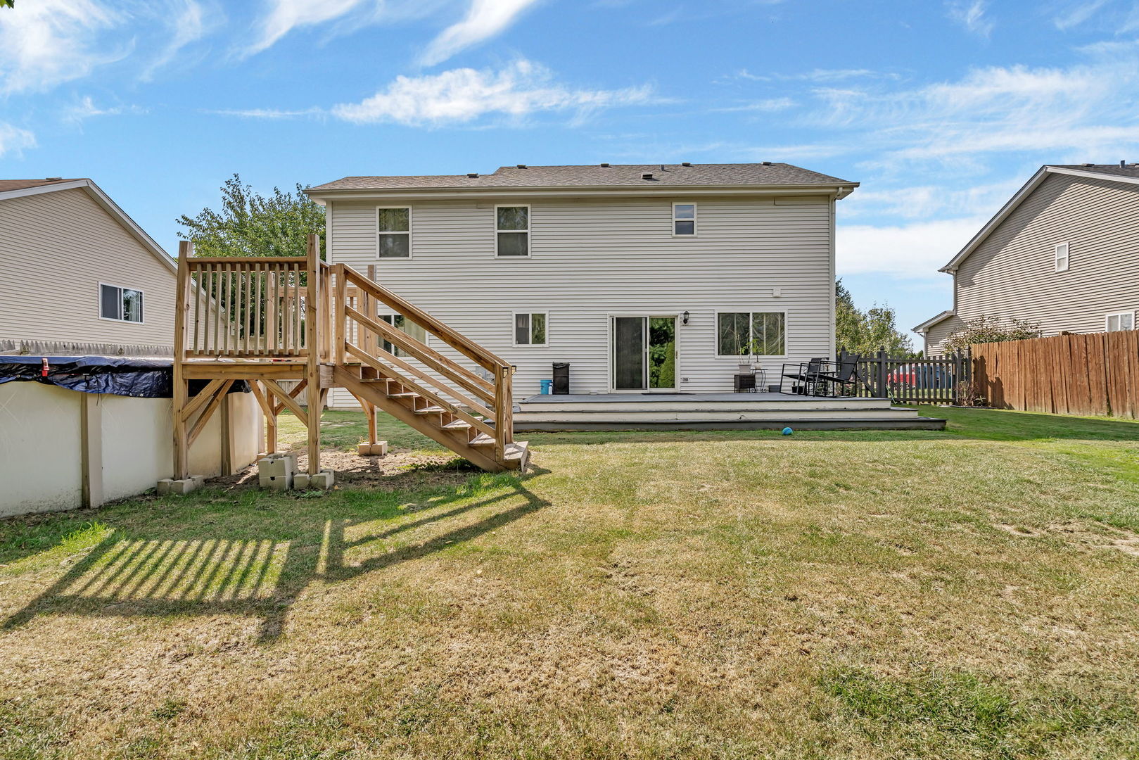Beautiful and Spacious 5 Bedroom Family Home with Pool and Finished Basement! This inviting home offers three bedrooms upstairs and one-and-a-half baths, featuring a great layout with separate living, dining, and family rooms – perfect for both entertaining and everyday living. The nicely sized kitchen includes all stainless steel appliances. The master bedroom offers dual closets for plenty of storage. Enjoy summer days in the fully fenced backyard complete with a pool and deck for relaxing or hosting guests. Additional highlights include a roof that’s only four years old, an updated AC from 2018, and some fresh paint throughout. The finished basement adds even more living space with two additional bedrooms, a large rec room, storage area, and rough-in for a future bathroom.