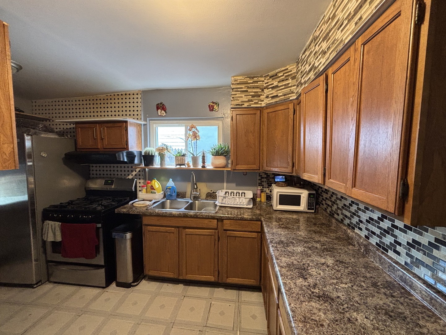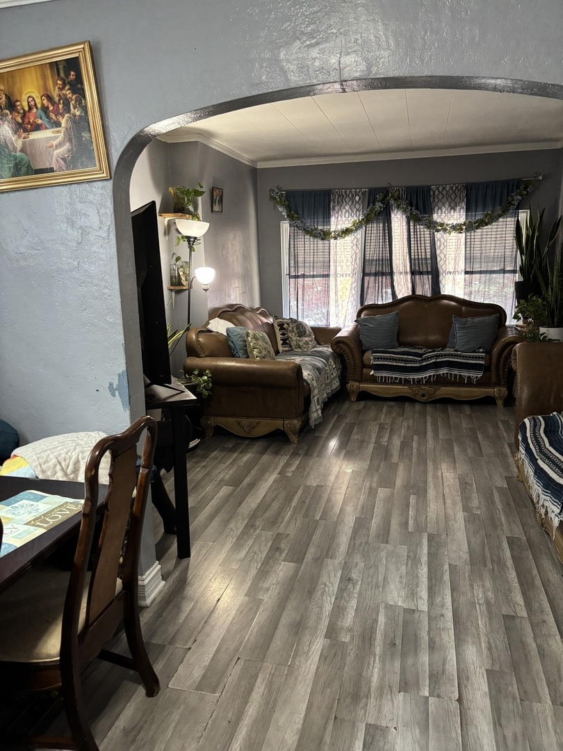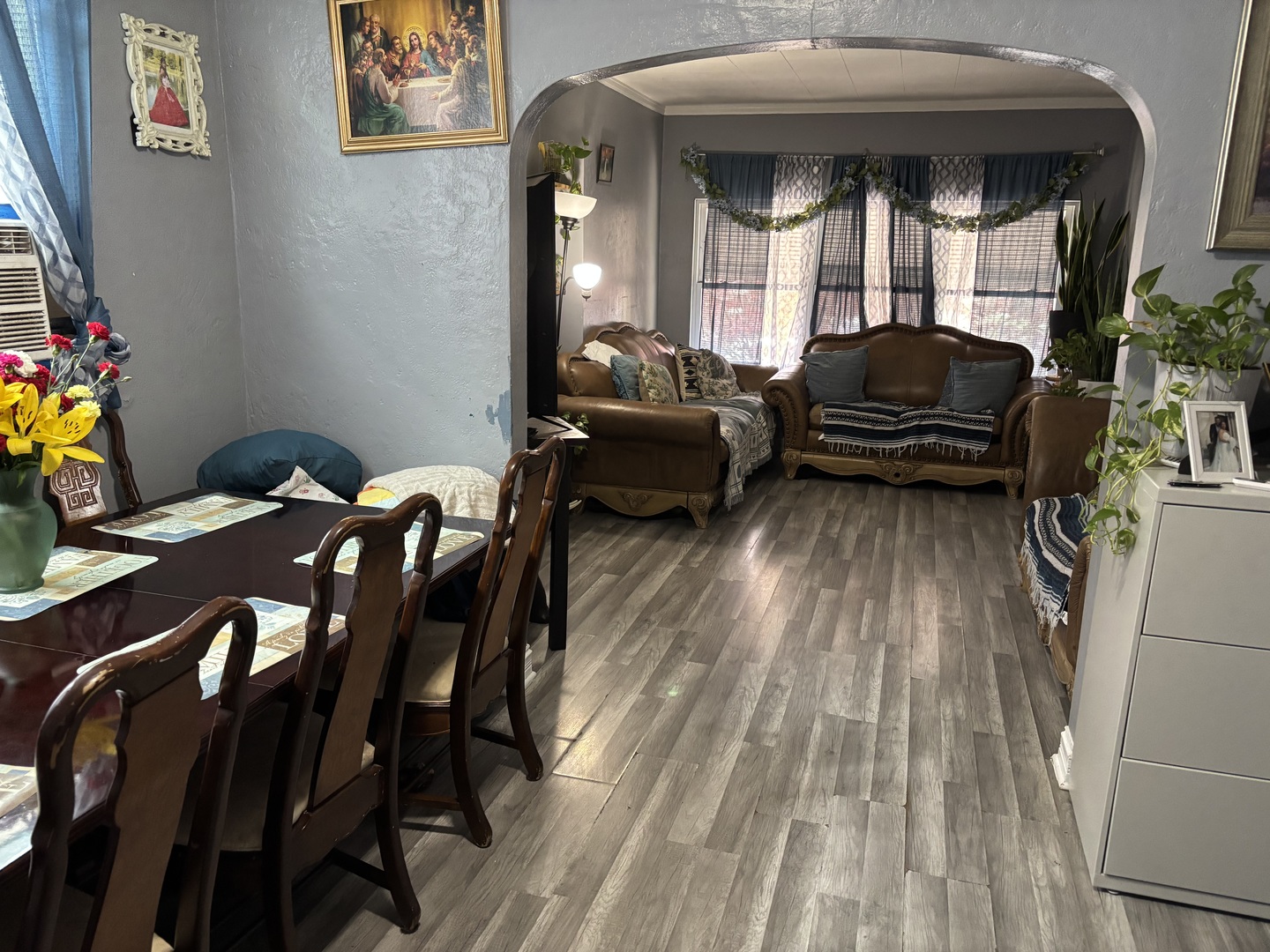 Large single-family home, two Bedrooms on each level, 3 bathrooms. A 6 bedrooms Bungalow on a tranquil, beautiful tree-lined street. The First floor features a good-sized living room, a separate formal dining room, two large bedrooms, a full bath, and a kitchen. The second floor has 2 bedrooms, a full bathroom, and a kitchen. Full-finished basement with bedrooms, summer kitchen, full bath, laundry, and access to yard. Gas Forced air. Designer brick patio in the back for family entertaining and BBQs. Large carport for 4 cars. Front iron gate and large steel back door. Good convenient location.near public transportation, stores, restaurants, and schools.