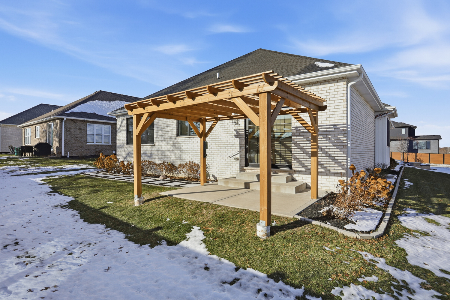 Discover exceptional single-level living in this beautifully appointed 3-bedroom (possibly 4 bedroom) 2.1 bathroom ranch home offering almost 2,100 square feet of thoughtfully designed living space in the heart of Orland Park. This home blends luxury finishes with everyday comfort, creating an inviting atmosphere from the moment you step inside. The gourmet kitchen is the centerpiece of the home, featuring designer cabinetry, granite countertops, a spacious center island/breakfast bar, and stainless steel appliances. The extensive trim package and high-end craftsmanship continue throughout the home, adding warmth and elegance to every room. The open-concept layout seamlessly connects the kitchen, dinette, and expansive living room with custom draperies making it an ideal space for gatherings and entertaining. A versatile flex room with an impressive custom coffered ceiling offers endless possibilities for a 3rd bedroom, home office, formal dining, reading nook, or hobby room – allowing you to personalize the space to your lifestyle. Retreat to the luxury primary suite, complete with a spa-inspired bathroom featuring a large walk-in shower, separate soaking tub, large vanity, and an oversized walk-in closet.2 additional bedrooms on the main floor provide comfort and privacy for guests or family members. The finished basement extends your living space, offering room for recreation, a home gym, media room, or storage plus a 4th bedroom – whatever suits your needs. Step outside to enjoy the beautifully designed front porch and outdoor area in the backyard with a charming pergola over the patio – perfect for relaxing, grilling, or entertaining during the warmer months. Situated in a highly desirable Orland Park location, this home offers convenient access to shopping, restaurants, and major transportation routes – all while delivering the peace and comfort of a quiet residential neighborhood. This spacious and elegantly designed ranch is truly move-in ready and offers the best in single-family living.