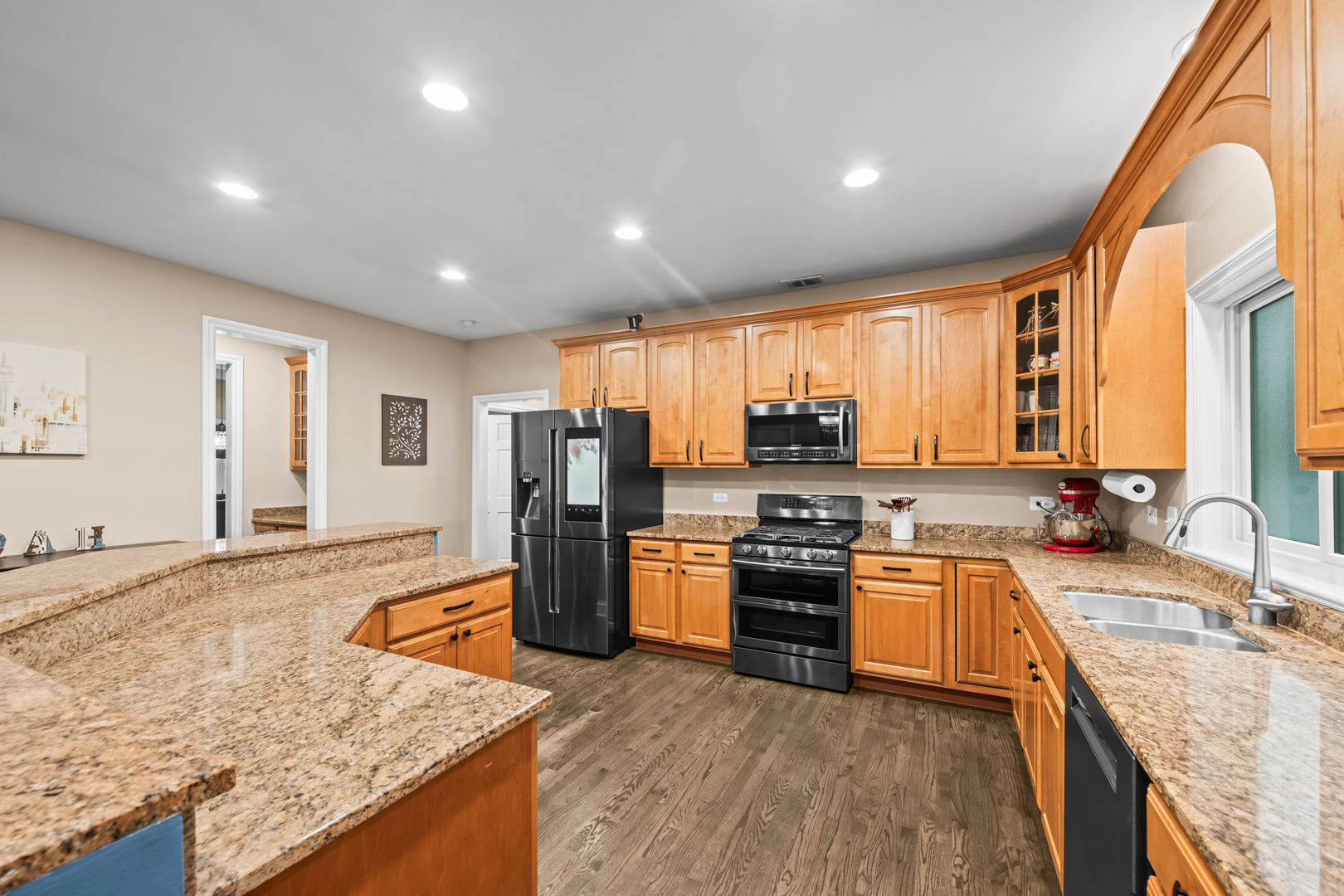 Welcome to 421 West Hawthorne Street, an elegant retreat nestled in the charming community of Arlington Heights. This exquisite two-story residence blends timeless curb appeal with thoughtful modern updates, offering 3,110 square feet of beautifully maintained living space on a coveted corner lot. Step through the grand two-story foyer featuring an oak staircase and six-panel doors, and you’ll immediately notice the rich hardwood floors and detailed millwork that create an inviting, sophisticated atmosphere. The open floor plan on the first floor allows for effortless entertaining and large gatherings. The heart of the home centers around a spacious kitchen with Maple cabinetry, crown molding, granite countertops, an island breakfast bar, stainless steel appliances, and a large eating area with sliders leading to the backyard. A butler’s pantry connects the kitchen to the formal dining room. The expansive family room is both warm and impressive, with a cathedral ceiling, a floor-to-ceiling brick fireplace (a favorite during winter months), and a wet bar for easy entertaining. Upstairs, you’ll find four spacious bedrooms, including a primary suite that serves as a private sanctuary-complete with a whirlpool tub, separate shower, dual sinks, and a walk-in closet. Additional highlights include a full concrete basement with 1,200 square feet of space-ideal for recreation, storage, or customization. A three-car garage adds convenience and plenty of storage. Recent updates reflect the owners’ pride of ownership and attention to detail, including windows, exterior doors, and French doors replaced in 2021 (Renewal by Andersen); attic fans replaced in June 2018 and one in October 2024; a second fridge in the mudroom (2024); sump pumps replaced in August 2024; basement ejector pump replaced in 2019; radon fan installed in January 2018; sprinkler system added in 2023; garage doors and openers replaced in 2023; fence installed in 2023; EV charger added in 2023; Kohler smart toilets installed in all three bathrooms (May 2024); exterior painted in 2023; attic insulation upgraded in August 2023; and major systems including A/C (2017), furnace (2017), roof (2018), water heater (2019), refrigerator (2021), oven/stovetop (2017), and dishwasher (2024). The home’s mature landscaping adds to its beauty and tranquility. Limelight Panicle Hydrangeas bloom each year and never fail to take your breath away, while a Japanese Cherry Blossom tree graces the south end of the driveway. The covered front porch is perfect for relaxing with a cup of tea, especially when the fragrant Miss Kim Lilac on the east side of the home fills the air. The fenced backyard, surrounded by a six-foot privacy fence, creates an ideal space for summer fun and outdoor enjoyment. Located near parks and within walking distance to downtown Arlington Heights and the train, this distinguished home combines luxury, comfort, and convenience in one remarkable offering.